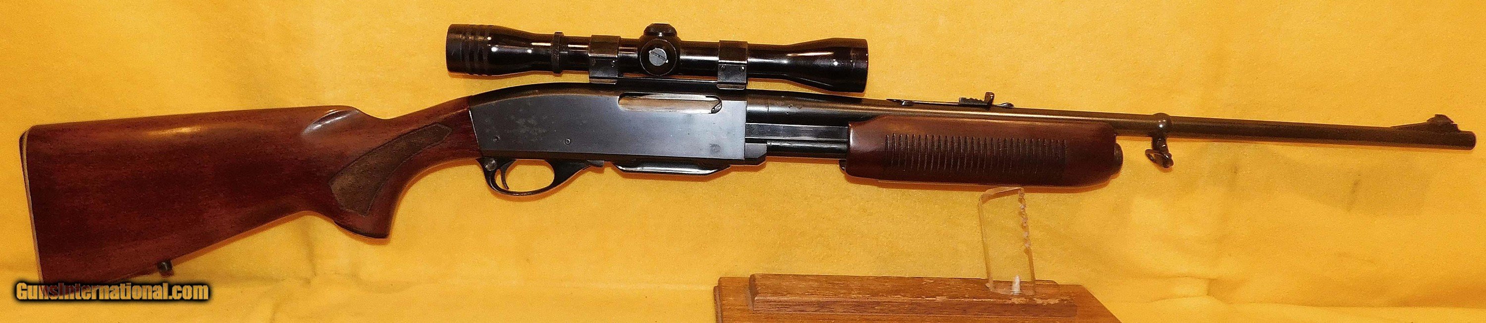 Description: REMINGTON 760 IN 300 SAVAGE CAL., WITH 22" BARREL. COLOR BLUE. CONDITION 95%. SERIAL NUMBER 207740. REMINGTON MODEL 760 (PUMP) IN .300 SAVAGE CALIBER, MIRROR BORE, CHECKERED WALNUT STOCK AND FORE ARM VERY GOOD TO EXCELLENT, COMES WITH A PERIOD CORRECT RE FIELD TV VIEW 4X SCOPE, STEEL BUTT PLATE, ONE FACTORY MAGAZINE, 95% OVERALL CONDITION, OUR STOCK # D3294 SOLD |