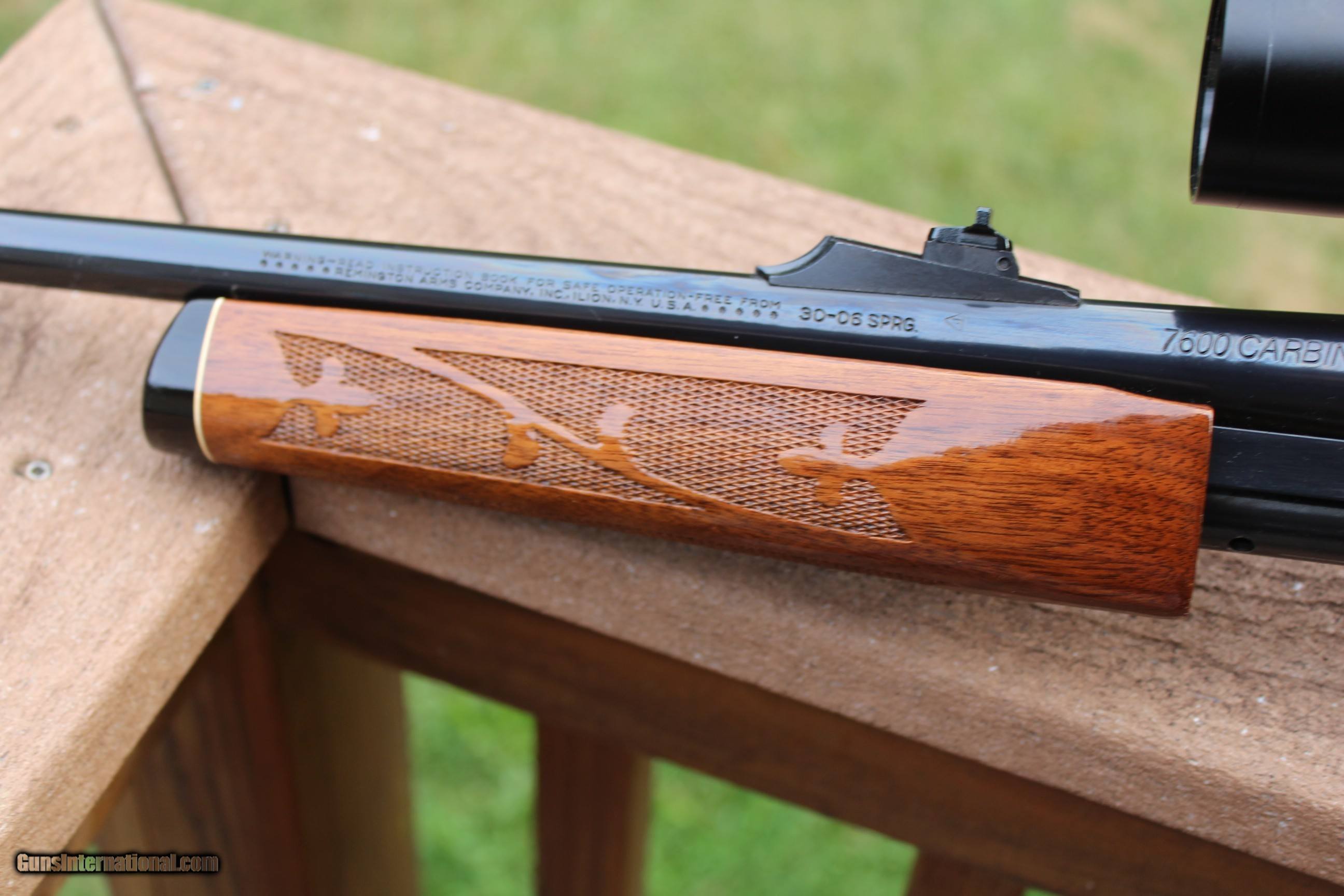 Description: Remington 7600 Carbine...18.5" barrel...98% plus all round condition on both wood and metal...30-06 caliber...Bore shines...Couldn't of been shot much, if at all...3X9X40mm Oakshore Electronic Micro Red Dot scope with dueplex cross hairs and lighted red dot...See thru Mounts...Any questions please e-mail or call SOLD Rifle Caliber: .30-06 Springfield |