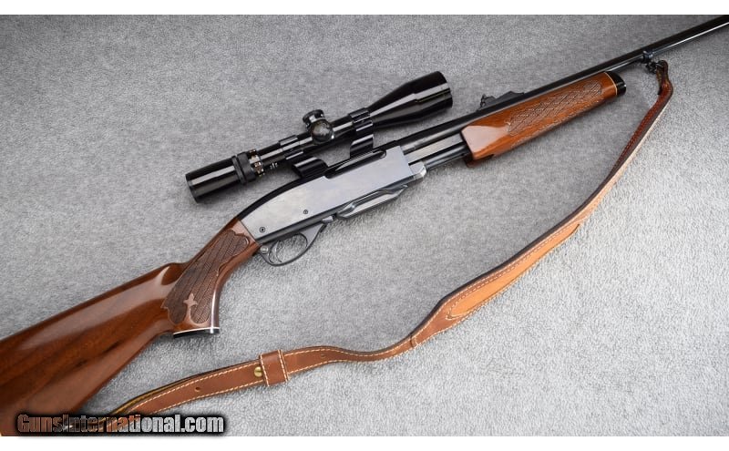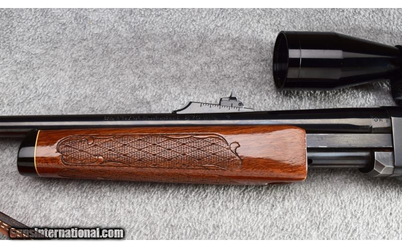 Description: This Remington Model 760 Gamemaster was manufactured in June 1988 and remains in very good overall condition with an excellent bore. Wood is solid with a few light scratches and use marks. Left side of receiver has some light scratches and right side has some light oxidation. Barrel and slide rail also have light oxidation starting. Gun is complete with period Bushnell Sportview Scope in See Thru rings, extra Remington magazine (2 Total) and Turret caps. No box. .270 Winchester SOLD Metal Condition: Very Good Wood Condition: Very Good Bore Condition: Excellent Barrels: 22" Tapered Triggers: Factory Stock Dimensions: 13 3/8 Fore End: Press Checkered Walnut Pistol Grip with Black Pistol Grip Cap - Press Checkered Walnut Forend Butt Pad: Remington Checkered Black Plastic Butt Plate Weight: 8 1/4 LBS Sights: Post & Bead Front - Adjustable Ramp Rear - Bushnell Sportview Scope in See Thru Rings with Duplex Reticle with Extra Horizon Line Item Location: Wheeling |