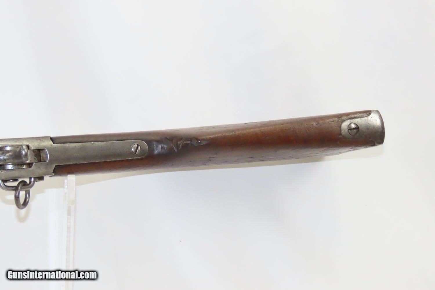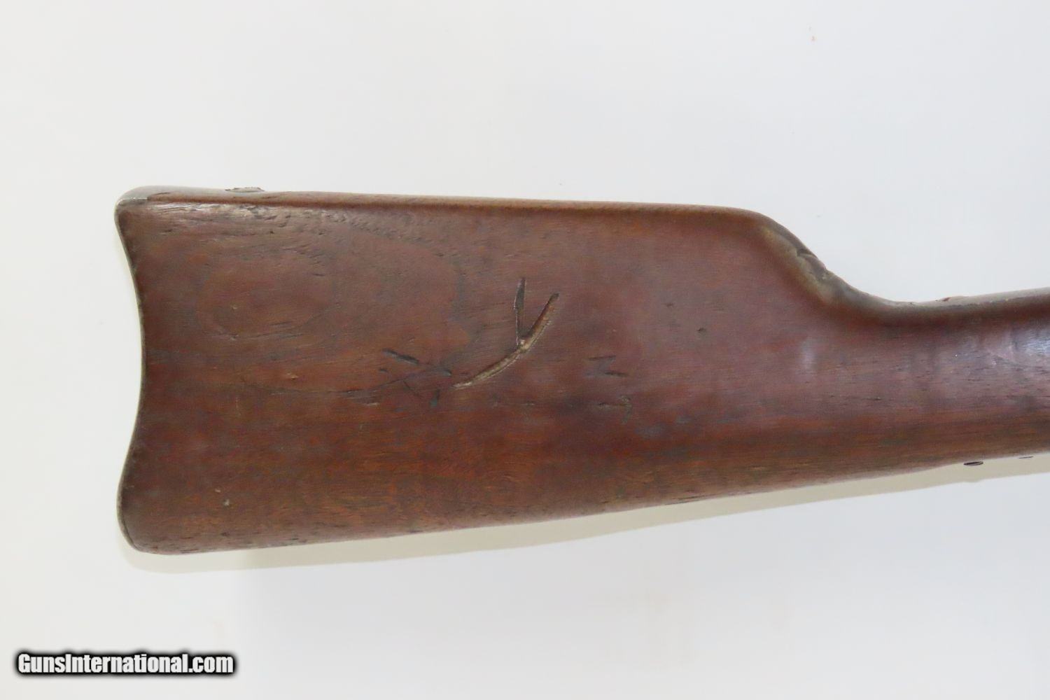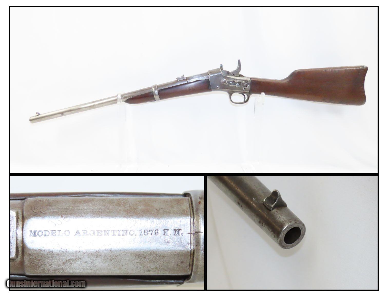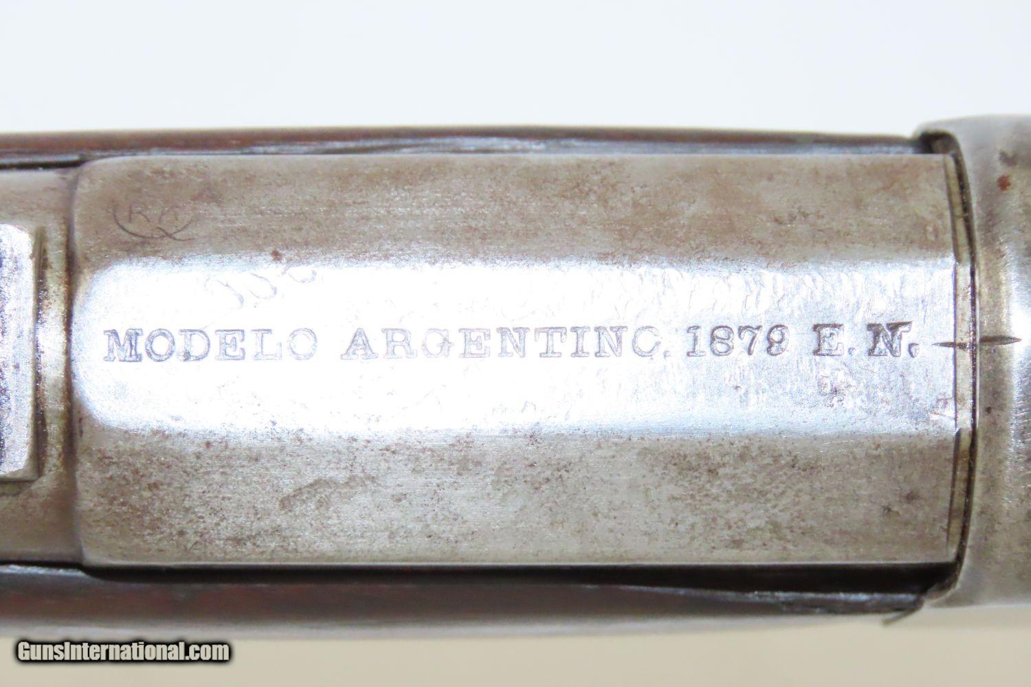 Description: Antique REMINGTON ARGENTINE CONTRACT M1879 ROLLING BLOCK Military CARBINE Late 19th Century Remington Export! Here we present an antique Remington Argentine Contract Model 1879 Rolling Block Carbine made circa 1879 in Ilion, New York. This example is one of the many “export” rifles made for foreign governments, all based on the Remington Rolling Block design. The Remington name and address on the tang of the receiver are very clear. The model and date information are listed on the barrel: “MODELO ARGENTINO.1879 E.N.” The “RA” in circle proof is for República Argentina, the official name of Argentina in Spanish. The E.N. abbreviation is for the Ejercito Nacional, or National Army in Argentina. Around the late 1800s Argentina was a developing world power and had one of the largest economies in the world. Like any growing power, it needed arms, and as there were not yet local producers up to the task, they contracted out for their weaponry. They would later replace the rolling blocks with the more modern Argentine Contract Mauser rifles towards the end of the 1800s. The overall condition is good. Strong, tight action. Bright, nicely rifled bore. Solid stock with average wear (dents and dings). “NT” is hand carved on the right buttstock. Legible markings. Own the original! This is a legitimate antique and not a reproduction. Barrel is 20-1/2 inches. Caliber: .43 Spanish Overall condition as seen in photos. Very Fast. Very Safe. FREE SHIPPING WORLDWIDE. Delivered directly to your door by express mail! Guaranteed AUTHENTIC & Includes CERTIFICATE OF AUTHENTICITY. ancestryguns $1345 #215075 SOLD Antique: Yes |
