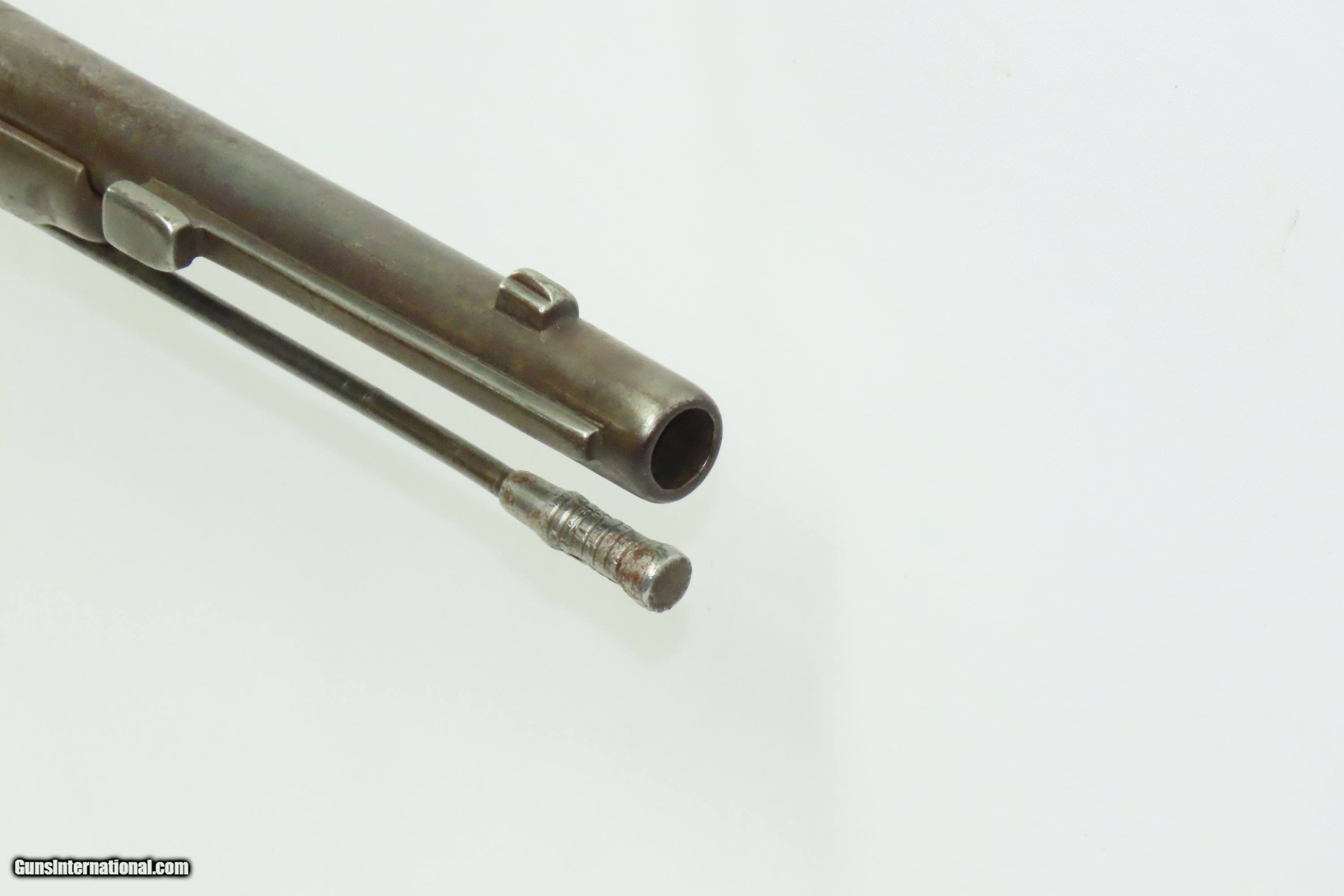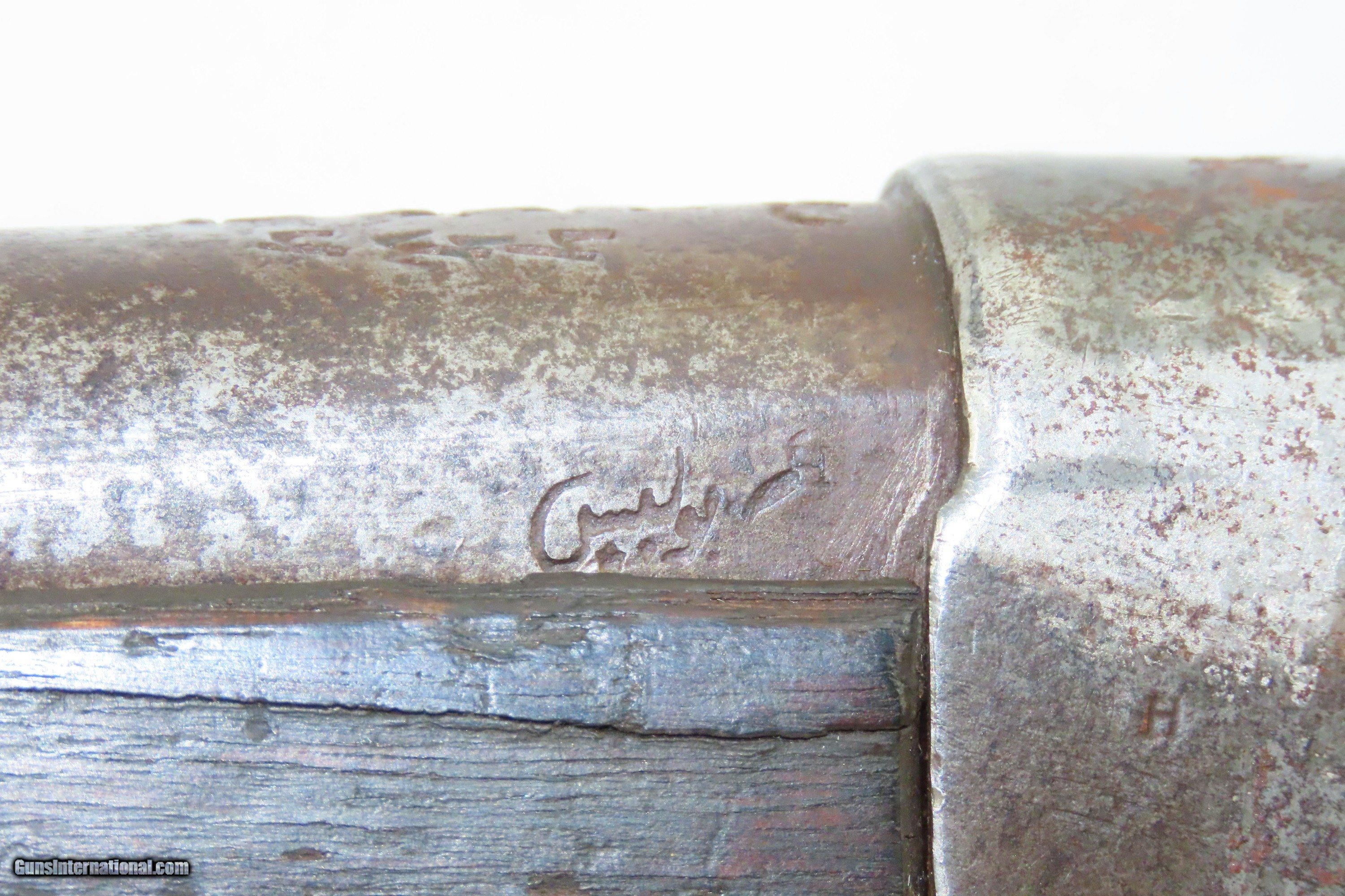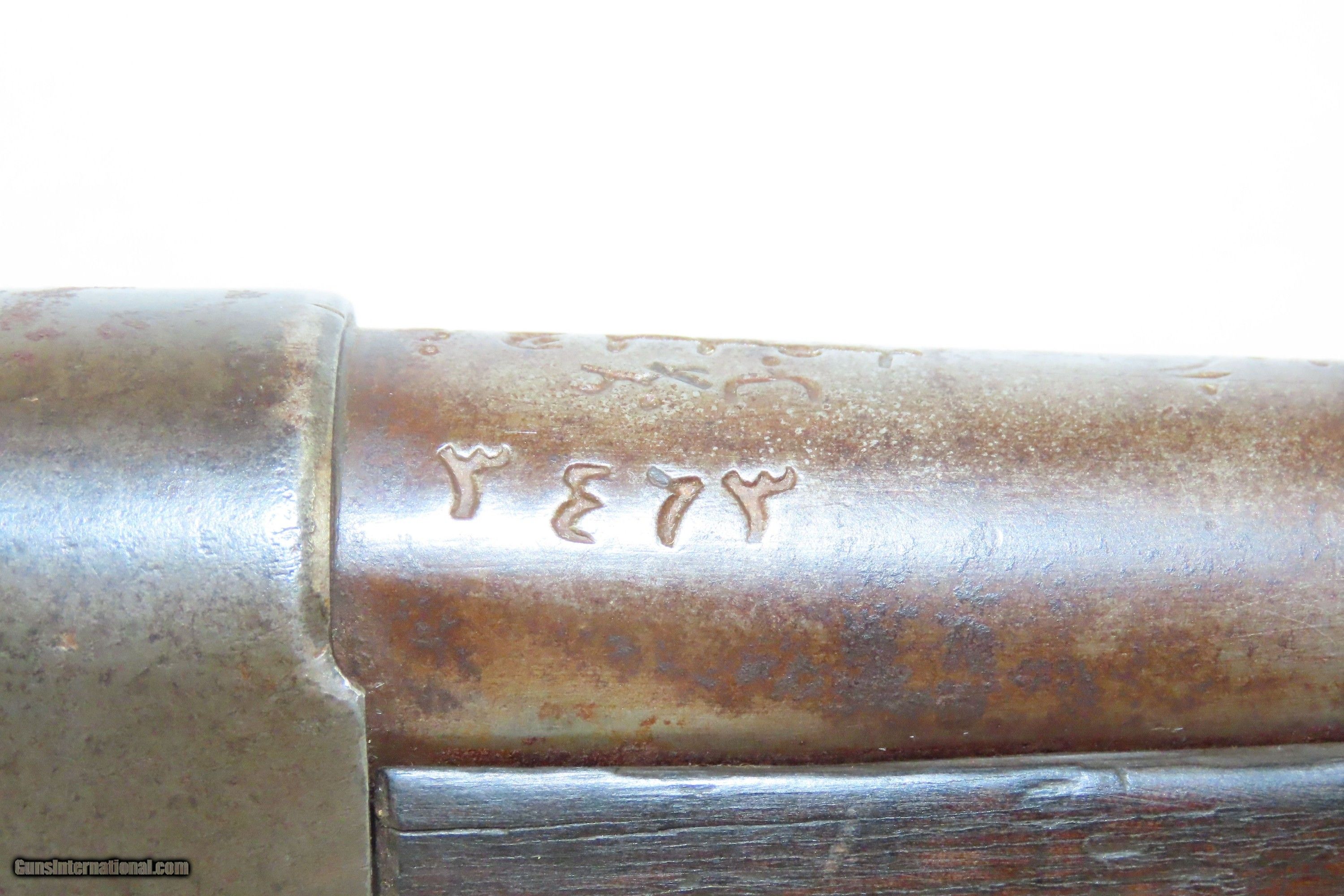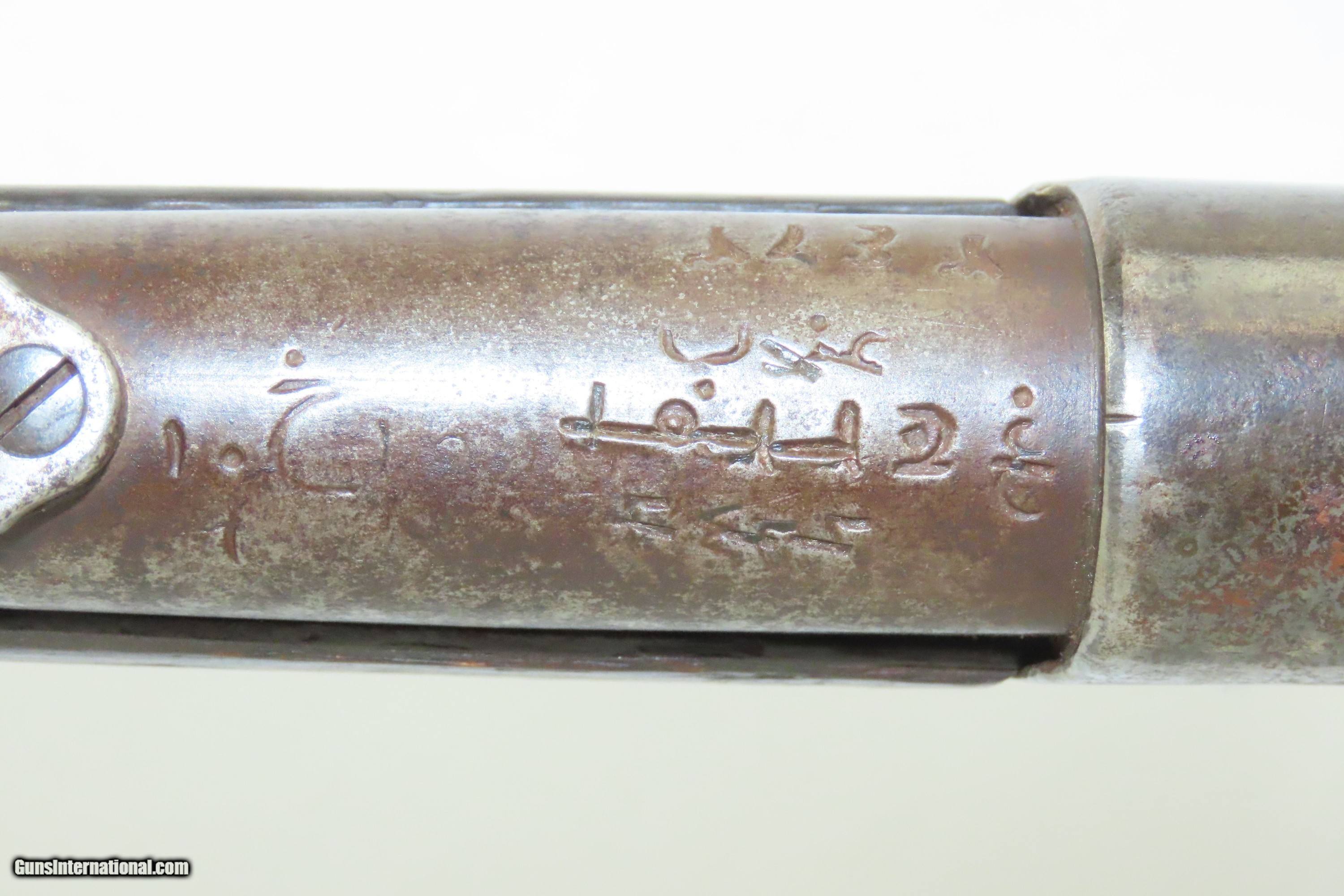Description: EGYPTIAN Marked Antique REMINGTON Rolling Block M1868 No. 1 MILITARY Rifle Nice 19th Century Military Firearm Here we present an antique Egyptian Marked Remington Rolling Block Model 1868 No. 1 Military Rifle, made circa the early to mid to late-1870s in Ilion, New York. The Remington Rolling Block had a sturdy, simple action that was relatively inexpensive, just what many governments wanted in the latter half of the 19th Century. They were popular with civilians as well. In 1868 a large order was placed with Remington by the Egyptian Government for the No. 1 Remington Military Rifle to be chambered in the ".43 Egyptian" cartridge. Governments at that time considering it a matter of national prestige to field arms with proprietary cartridges. Before the order could be delivered, Egypt (having close ties with the French since the Napoleonic excursions and the building of the Suez canal), "defaulted" so that a large part of the order could be sold to France as she was greatly underarmed during the Franco-Prussian War of 1870-71. It is estimated that some 13,000 such rifles were delivered to France at that time. However, the original order was again placed and by 1876 the last of some 60,000 rifles were delivered. Most Egyptian Remingtons that one is likely to come across (except for French marked specimens) show very substantial wear, especially rounded edges throughout, most noticable at the muzzle, bayonet lug and buttplates, which often have holes in them or are missing altogether. The rifle is marked with multiple Egyptian markings and is marked with what looks to be Egyptian unit markings. The upper tang bears the Remington patent markings, which are often worn completely off. The overall condition is good. Dark patina throughout. Shows heavy use. The action is functional. The bore is dim with good rifling. The stock shows numerous handling marks and minor chips and splits. Own the original! This is a legitimate antique and not a reproduction. Barrel is 35-1/8 inches. Caliber: .45 Centerfire Overall condition as seen in photos. Very Fast. Very Safe. FREE SHIPPING WORLDWIDE. Delivered directly to your door by express mail! Guaranteed AUTHENTIC & Includes CERTIFICATE OF AUTHENTICITY. ancestryguns $1200 #240369 SOLD Antique: Yes |