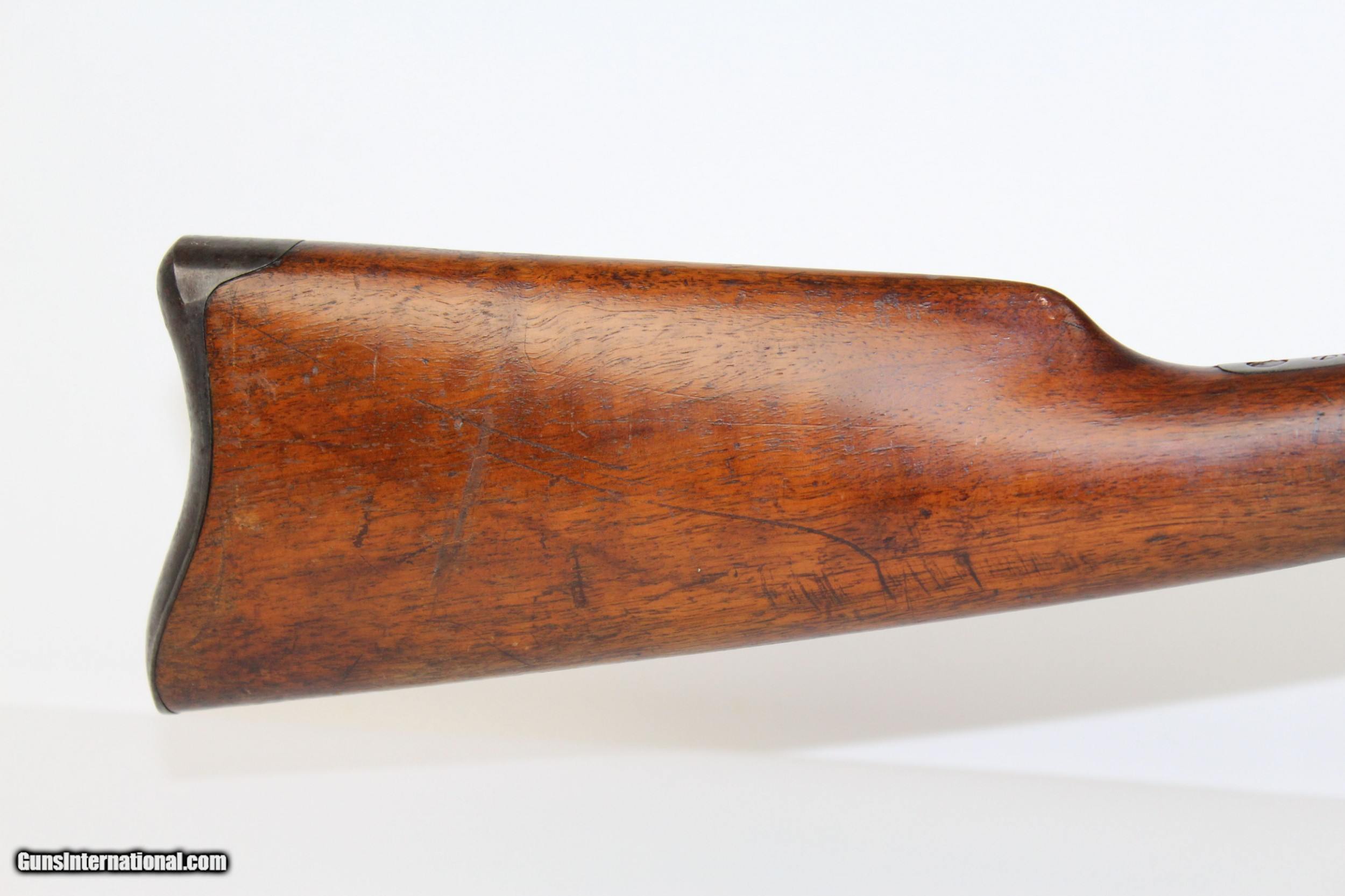 Description: FINE Antique Remington Model 2 ROLLING BLOCK RIFLE .32-20 WCF Single Shot Rifle Here we present an antique Remington Model 2 Rolling Block Sporting Rifle, manufactured circa 1889 in Ilion, New York. This rifle is the classic “boy’s” rifle. It was also Remington’s smallest and lightest Rolling Block. Chambered for the venerable .32-20 WCF cartridges, it was the plinker and the game-getter for many a youth. Being a single shot, it naturally instills the “make your one shot count” mentality from a young age. This specimen features a 26-1/4 inch octagonal barrel equipped with adjustable sights. It is still a great rifle for a youngster to learn on today. This rifle has been recently shot and performed well. This is a neat old rifle with lots of life left yet! The overall condition is fine. The case colors on the frame remains vibrant. The blue on the barrel is 85%. The markings are clear. The walnut stock shows some use and remains solid and smooth. The bore is clean and bright with good rifling. The action is excellent and crisp. Own the original! This is a legitimate antique and not a reproduction. Barrel is 26-1/4 inches. Caliber: .32-20 WCF Overall condition as seen in photos. Very Fast. Very Safe. FREE SHIPPING WORLDWIDE. Delivered directly to your door by express mail! Guaranteed AUTHENTIC & Includes CERTIFICATE OF AUTHENTICITY. ancestryguns $1250 #6172 SOLD Antique: Yes |