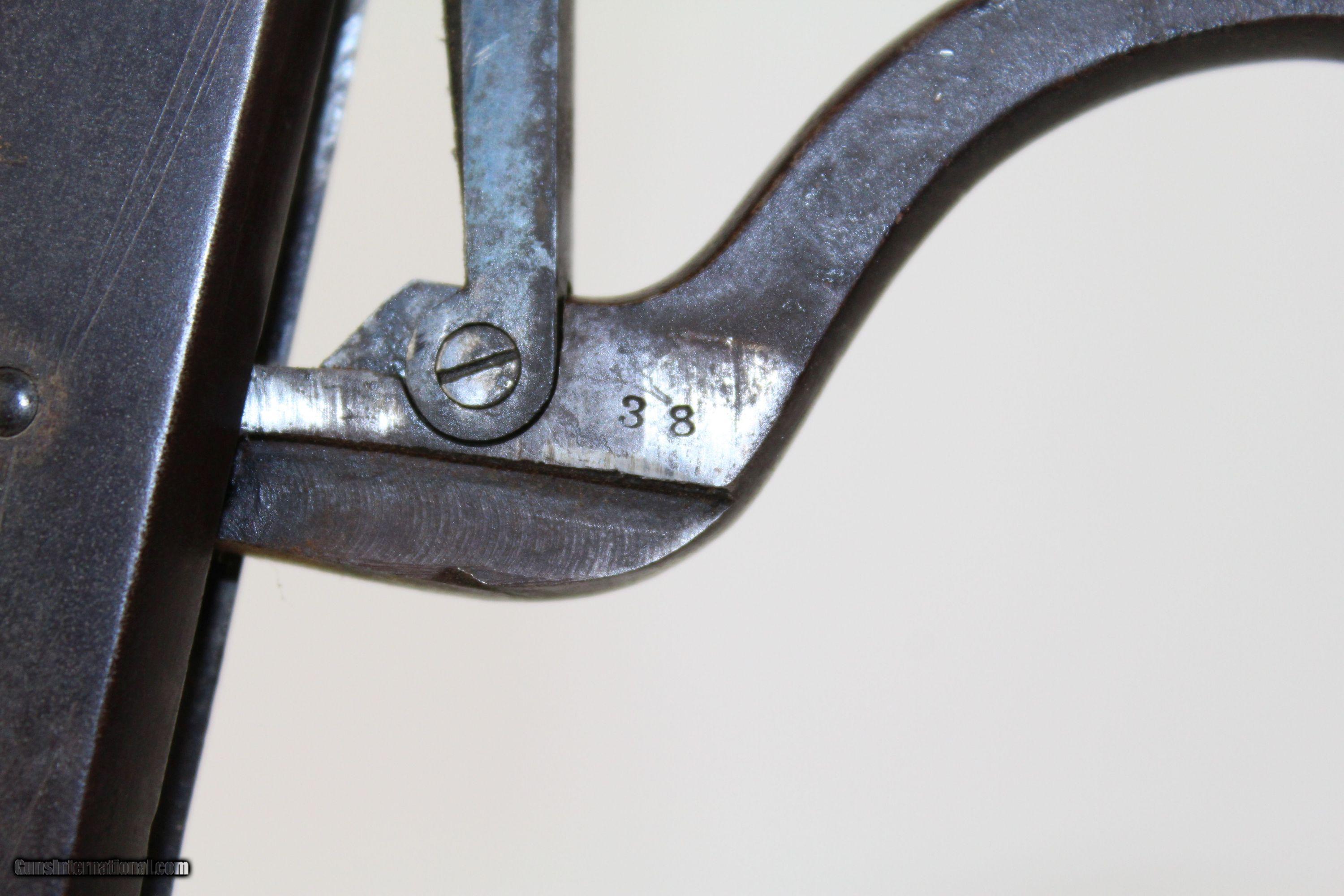 Description: RARE Iron Frame REMINGTON-BEALS Breech Load RIFLE FEWER Than 800 MADE Here we present a rare antique Remington-Beals Rifle, made circa 1866 in Ilion, New York. Fordyce Beals invented this single shot, breech-loading rifle that would bear his name. The breech of this rifle is opened by lowering the under-lever, which slides the barrel forward, not unlike the Gallager and Maynard Carbines of the American Civil War. Two chamberings of this rifle were made between 1866 and 1872 in 32 Long rimfire and 38 Long rimfire. Both iron (early production) and brass-framed receivers were made. There were fewer than 800 of these made during their seven year production run. Annie Oakley, who performed in Buffalo Bill’s Wild West Show and arguably America’s greatest sharpshooter, shot a Remington Beals rifle when she performed! The overall condition is very good. The blued finish on the iron is about 20% and has turned dark with age. The barrel appears never to have been marked. The number “38” appears on the lever assembly. The walnut stock is smooth and solid. The bore is in good shape with strong rifling. The trigger return spring is in need of repair, but the rifle is otherwise functional. Here is a true scarcity by Remington and the choice of one of the world’s most renowned trick shooters! Own the original! This is a legitimate antique and not a reproduction. Barrel is 28-1/2 inches. Caliber: .32 Rimfire Overall condition as seen in photos. Very Fast. Very Safe. FREE SHIPPING WORLDWIDE. Delivered directly to your door by express mail! Guaranteed AUTHENTIC & Includes CERTIFICATE OF AUTHENTICITY. ancestryguns $1400 #6170 SOLD Antique: Yes |