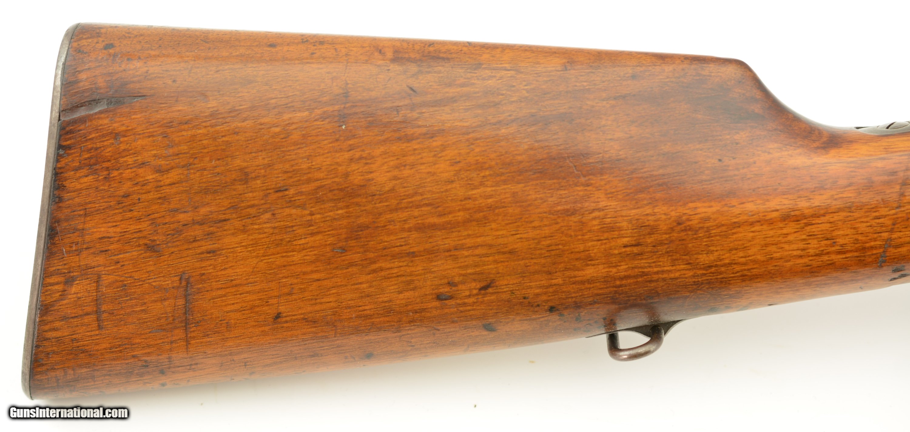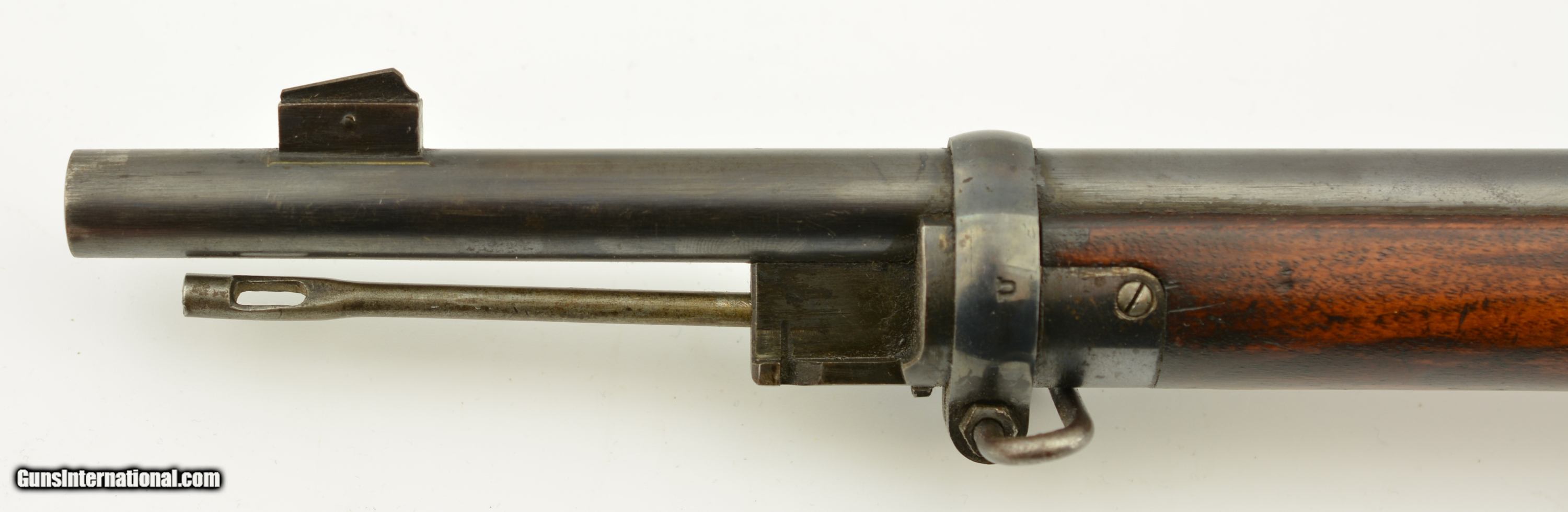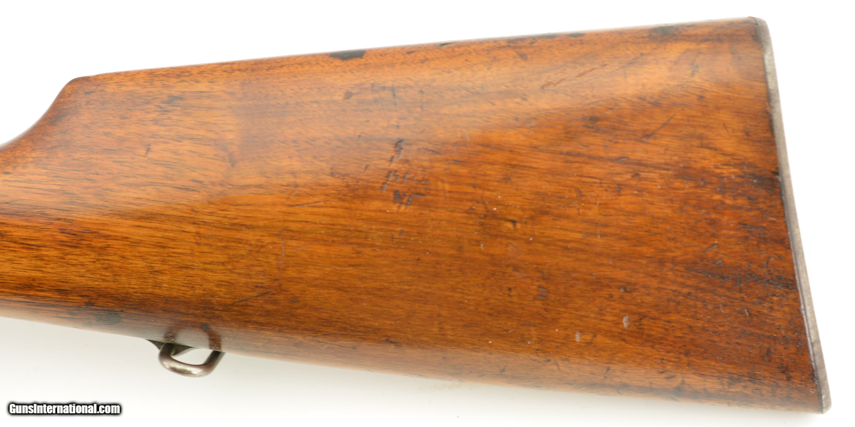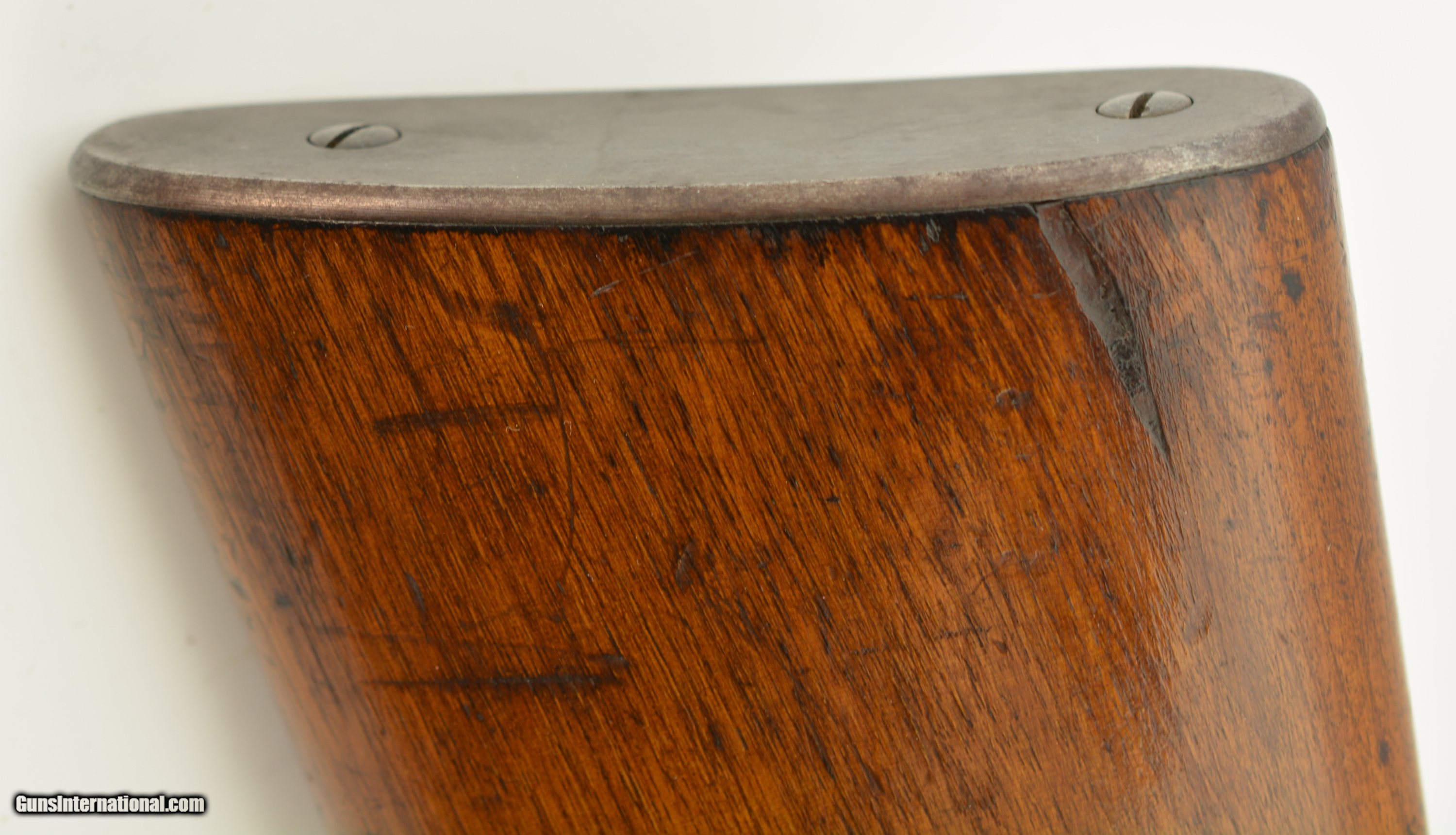 Description: Serial #1155, .30-40 Krag, 30" barrel with a fine, bright bore that has mild freckling within the grooves. This is one of only two known examples of this model chambered in .30 US, and retains 95-97% of the original blue on the barrel, breechblock, and hammer. Some mild silvering is present on the muzzle, and there is gray fading on the top surfaces of the hammer and block. The frame retains a commensurate amount of the original, vibrant color case-hardening, and the breech and hammer pins retain most of their original bright fire blue finish as well. The walnut stock, forend, and handguard have small handling marks and minor surface bruises marring the original varnish finish, but are otherwise in fine condition. This is a very late production gun (only about 1100 were made before the transition to the Model 1897), and may very well be the last example made going by serial number. While the .30 Krag was never a cataloged chambering for the Model 1896, but the example in the Remington museum is also chambered in the US cartridge, making this the second known example, and the only one that is available to purchase. This is a true rarity, and would make a fine complement to any collection of high grade Remingtons, or single-shot military rifles. Antique SOLD Antique: Yes Manufacturer: Remington Model: 1896 Caliber Info: .30-40 Gauge Info: .30-40 |