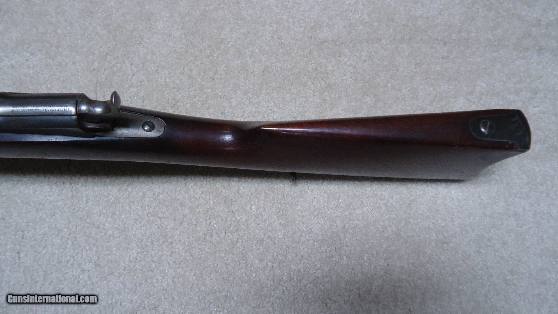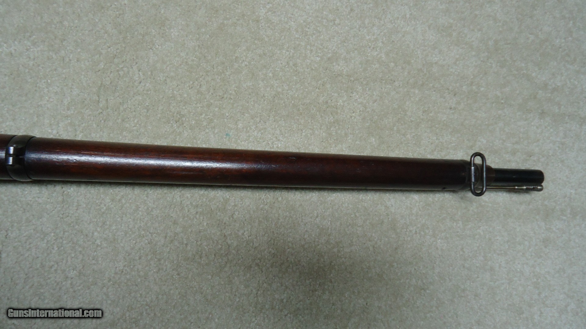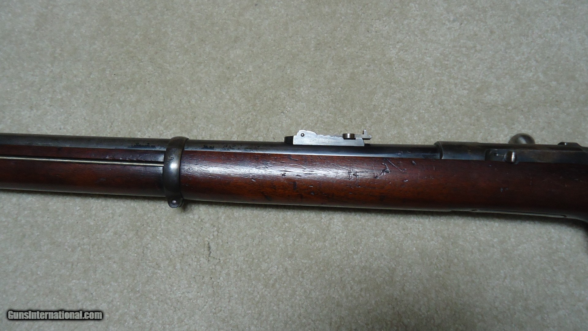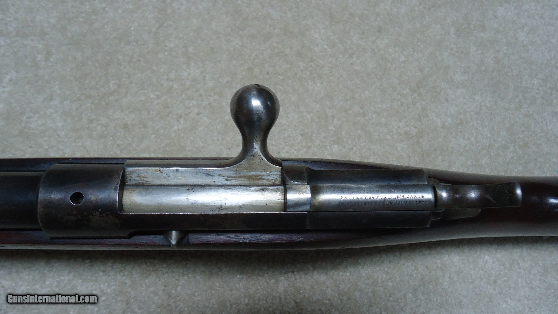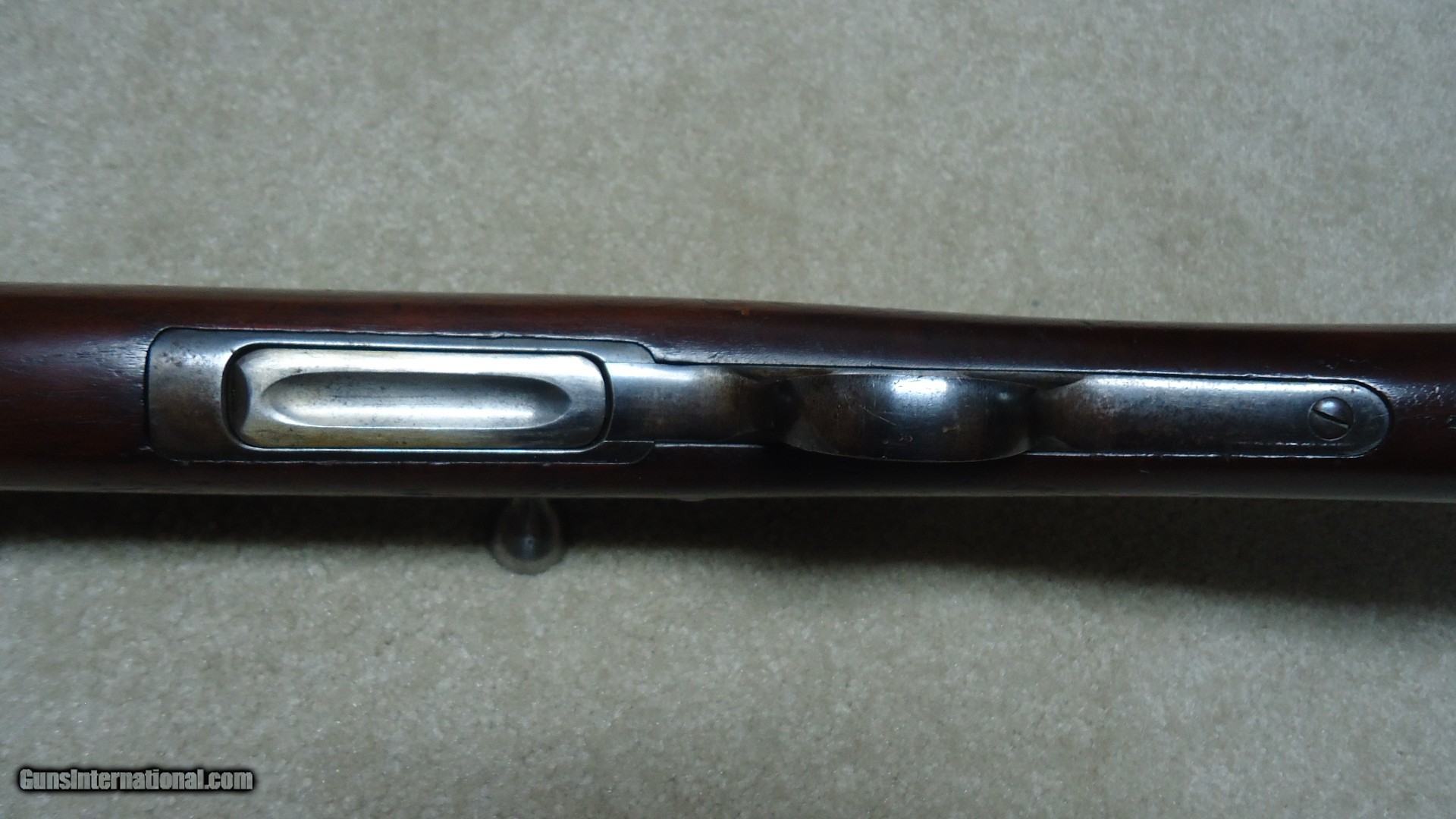Description: THE RAREST REMINGTON I'VE EVER OFFERED! THIS IS A REMINGTON KEENE .45-70 COMMERCIAL U.S. NAVY PATTERN MUSKET! Most collectors have never seen one of the only 250 bolt action Keene Navy Muskets issued in 1880 that all have 29 1/2" barrels and full military stock with cleaning rod mounted on the side. According to the fine books: Rifles of the United States Navy and Marine Corps 1866-1917 by John D. McAulay and U.S. Military Bolt Action Rifles by Bruce Canfield, there is considerable information about the 250 U.S. Navy marked and issued rifles, but only a mention that a Civilian version was catalogued. McAulay says, "It is worth noting that Remington also offered the Navy rifle on the commercial market although it is not known how many, if any at all, were sold." In Canfield's book he shows a copy of a page from an early Remington catalogue showing the full line of Keene sporting rifles and Military muskets. Interestingly, the Keene Navy musket in the catalogue is offered in .43 (.43 Spanish) and .45-70. This one is stamped on the left side of the receiver with the .45-70 caliber designation as are all the commercial sporting models I've encountered over the years, but I don't believe the U.S. Navy marked and inspected muskets are caliber marked, which is typical of most military arms of the period like the Trapdoors, Spencers and Sharps etc. Also discussed in the books is that the few of these U.S. navy issued guns that are known to exist are typically is very rough condition, often with parts missing. This is the first commercial example I've heard of. It is in particularly fine condition overall with excellent wood and side-mounted cleaning rod intact. The barrel shows good blue in the more protected areas in front of the receiver, around the rear sight and toward the muzzle with the balance an aged gray/brown. The trigger guard retains about half of the deep blue. It has the military style rear sight and has the correct Remington markings on the top of the bolt along with the correct sling swivels. The bore is excellent. The most advanced Remington collections- museum or private- don't have one of these! I don't ever expect to encounter another! SOLD Antique: Yes Manufacturer: REMINGTON Model: KEENE NAVY MUSKET Barrel Length: 29 1/2 Condition: FINE Bore Condition: EXCELLENT |