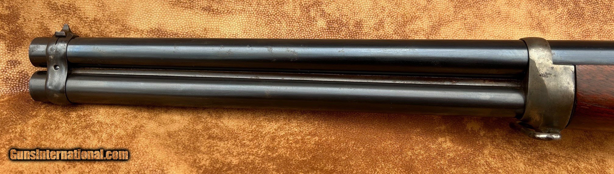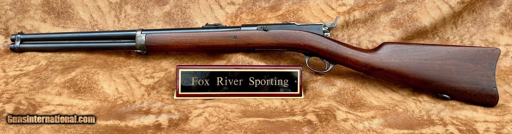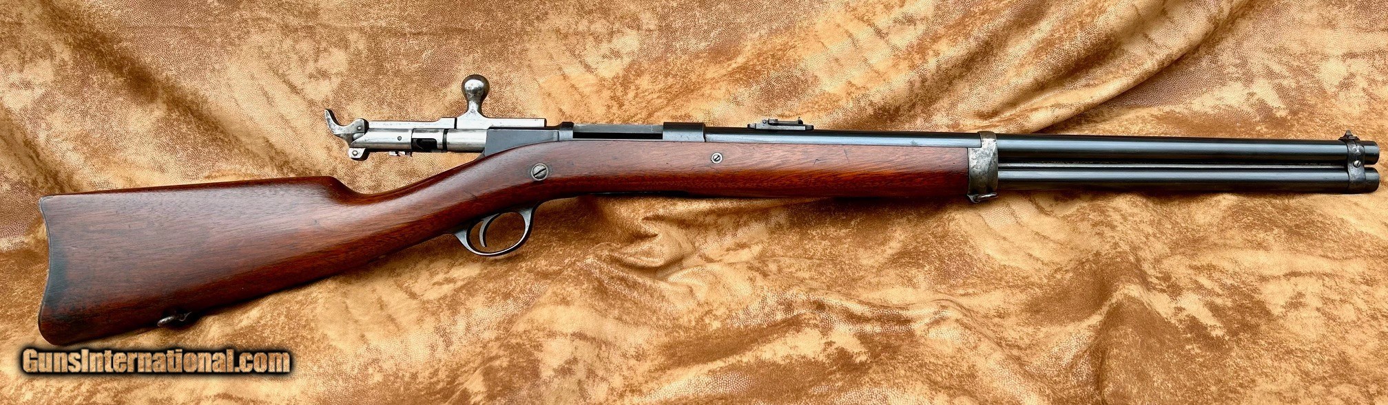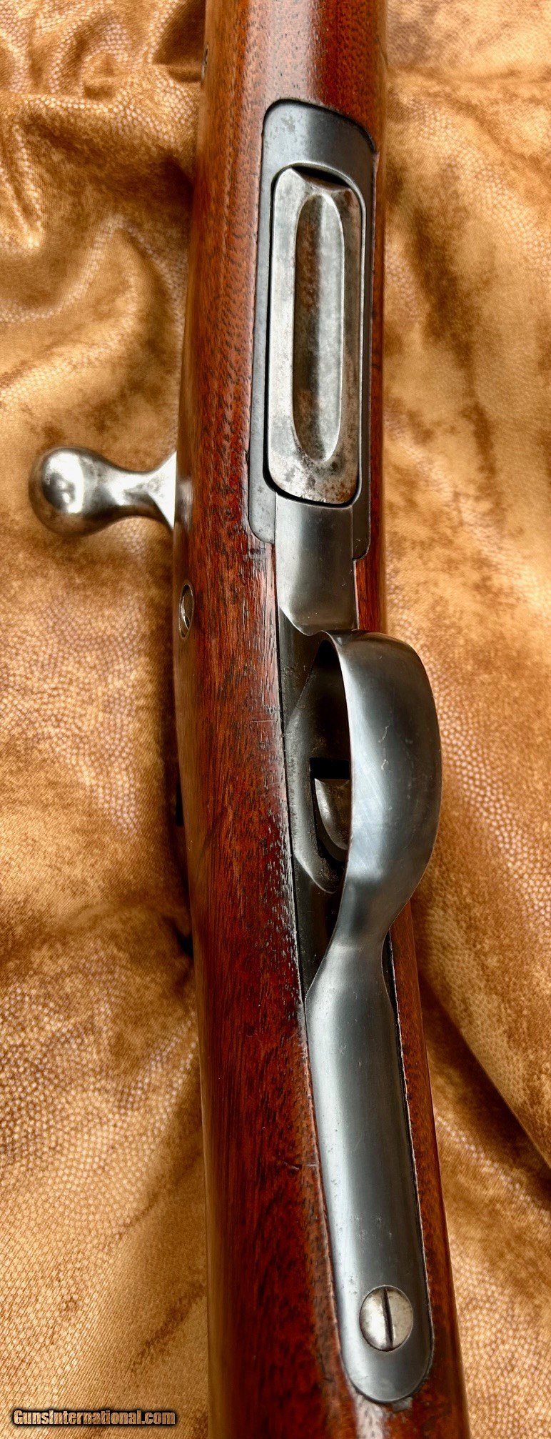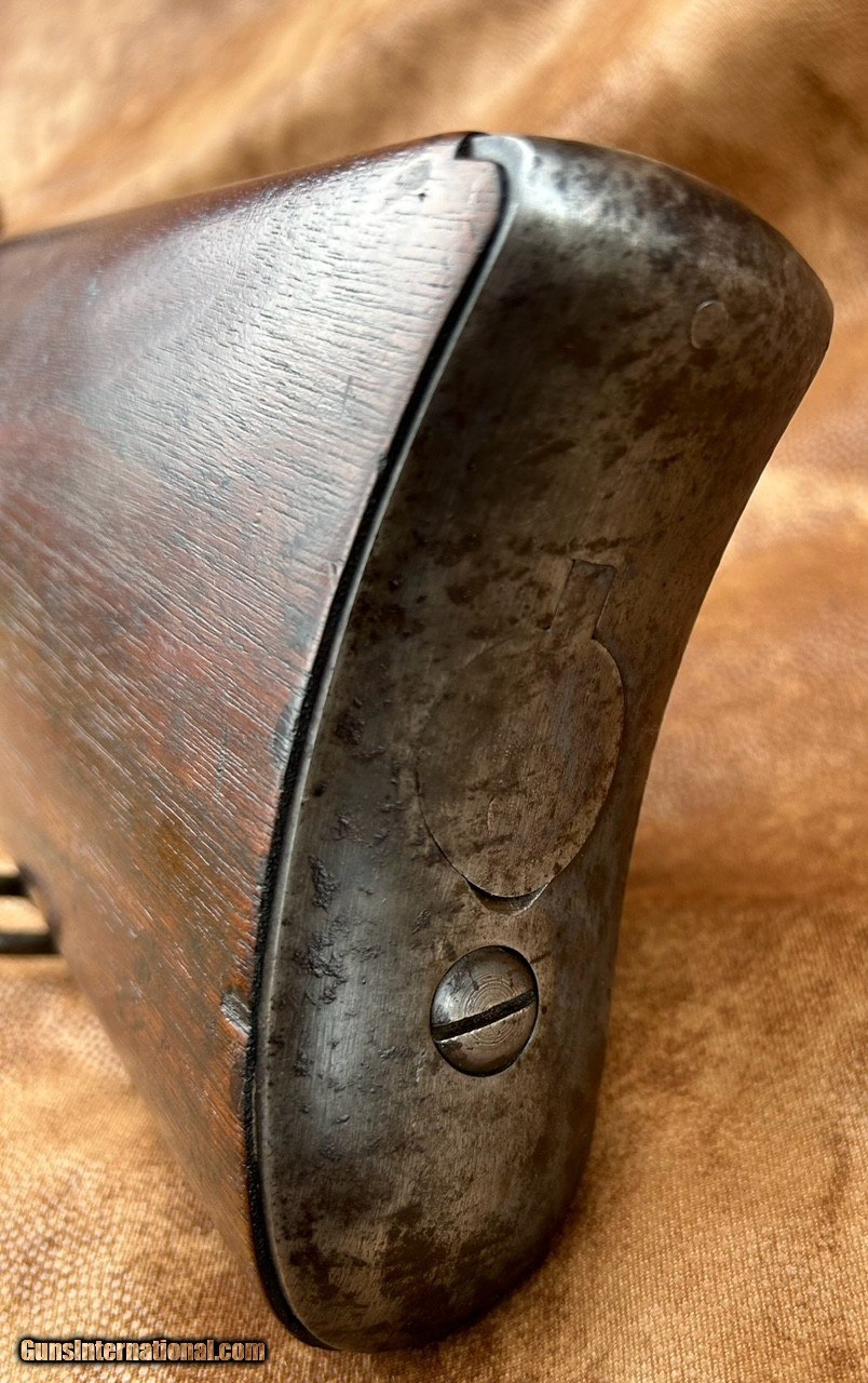 Description: Absolutely fantastic Remington Keene Carbine in the popular .45-70 caliber. Only approx 5000 Remington Keene bolt action guns were built and the carbine version was made in the fewest numbers. 1880's production, a true antique made in the black powder cartridge era. Not for modern ammunition. This carbine is a true survivor and obviously has seen little use and no abuse. Bright mint bore. Bright blue, excellent wood finish, no cracks, no extra holes. Scattered oxidation. Very light oxidation blems on upper foreward side of barrel. Blue loss on buttplate. Nice screws. Nice tight folding sight. Tight crisp functioning mechanics. No visible serial number. The photos represent the gun well. In my experience this is one of the nicest Remington Keene Carbines in existance and are rarely offered for sale in this condition & caliber. Any & all firearms such as this should be inspected by a qualified gunsmith before firing. Priced to sell for immediate delivery. SOLD Antique: Yes |