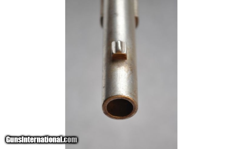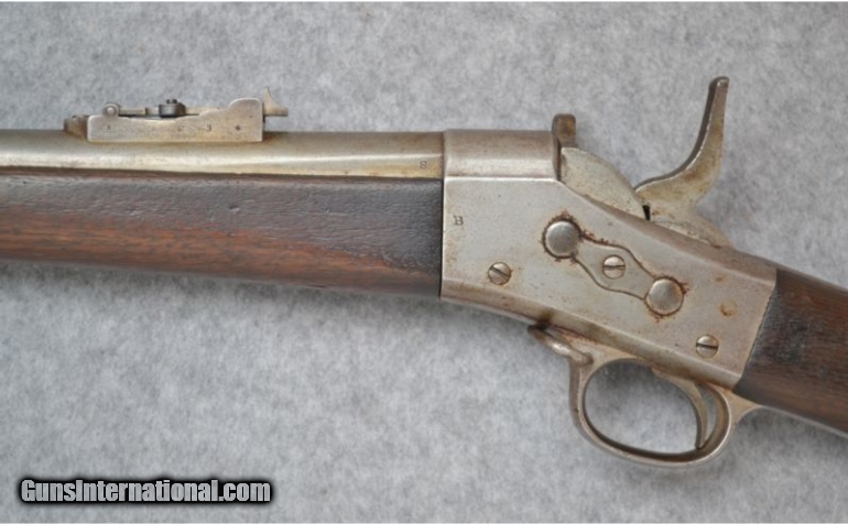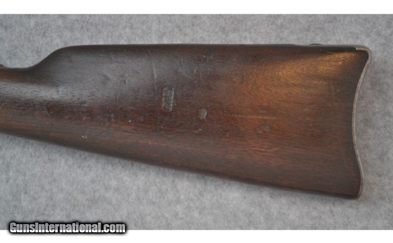 Description: The distinguishing features identifying this as a New York Contract Rolling Block rifle are: Curved and extremely high hammer spur, outward protruding thumb lever and the safety locking action which moves the hammer to half cock when closing the breech.It also has iron mountings with sling swivels and shows the regimental letter and number markings on the heel strap of the plate. SOLD Antique: Yes Manufacturer: Circa: 1872 Metal Condition: Good with some pitting Wood Condition: Good with nicks and dings Bore Condition: Strong rifling with some light pitting Barrels: 36" round Stock: Smooth walnut Stock Dimensions: LOP: 13 5/8 Fore End: Smooth walnut Butt Pad: Iron plate Weight: 8 lbs., 12 oz. Sights: front blade, rear tangent Item Location: Christiana, DE |