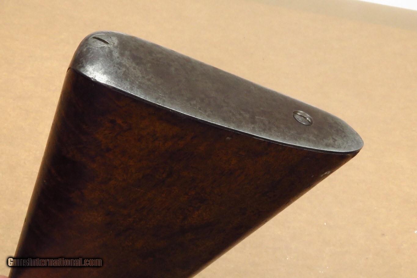 Description: Remington Rolling Block No. 1 Mid-Range – .40-70 BN – 30.5" – c.1880s – Good Cond. Antique • No FFL Required • Single Shot Description Good condition Remington Rolling Block No. 1 Mid-Range rifle chambered in .40-70 Bottleneck Sharps. Barrel length is 30.5 inches, transitioning from octagon to round. Manufactured in the 1880s and classified as an antique, so no FFL is required. Functionality is excellent. The chamber was professionally relined by Bobby Hoyt. The rifle has been fired; it is reliable but will not win competitive matches. The rifle features the correct Remington mid-range venier tang sight and the correct Remington wind-gauge target front sight. A rear dovetail sight is installed in the barrel slot, but it is not original to this rifle. This is a solid and mechanically sound example of the desirable Mid-Range Rolling Block. SPECIFICATIONS • Make: Remington • Model: Rolling Block No. 1 Mid-Range • Caliber: .40-70 Bottleneck Sharps • Barrel Length: 30.5 inches (octagon to round) • Finish: Even brown patina throughout; no case colors remain • Correct Remington mid-range venier tang sight • Correct Remington wind-gauge target front sight • Sights verified correct by barrel underside letter codes • Serial Number: 1917 • Manufactured in: 1880s • Classification: Antique (No FFL Required) CONDITION • Functionality: Excellent • Receiver: Good, even brown patina, no remaining case colors • Barrel Exterior: Fair, with a significant ding shone in photo. Even brown patina • Bore Condition: Shallow pitting the entire length with moderate rifling • Trigger: Unaltered factory original • Stock: Very good factory original pistol-grip stock with no cracks or splits ADDITIONAL DETAILS / NOTES • Chamber was professionally relined by Bobby Hoyt • Rear dovetail sight is a Remington pattern sight but not original ro the rifle. • Honest age-appropriate wear; strong Rolling Block action • Shooter-grade accuracy; reliable but not competition level PAYMENT / SHIPPING • Payment accepted by check or money order • Shipping is $50 and includes a hard-sided case • Ships directly to the buyer (antique, no FFL required) Antique: Yes Price: $2,395.00 Shipping: $50.00 Contact Seller |