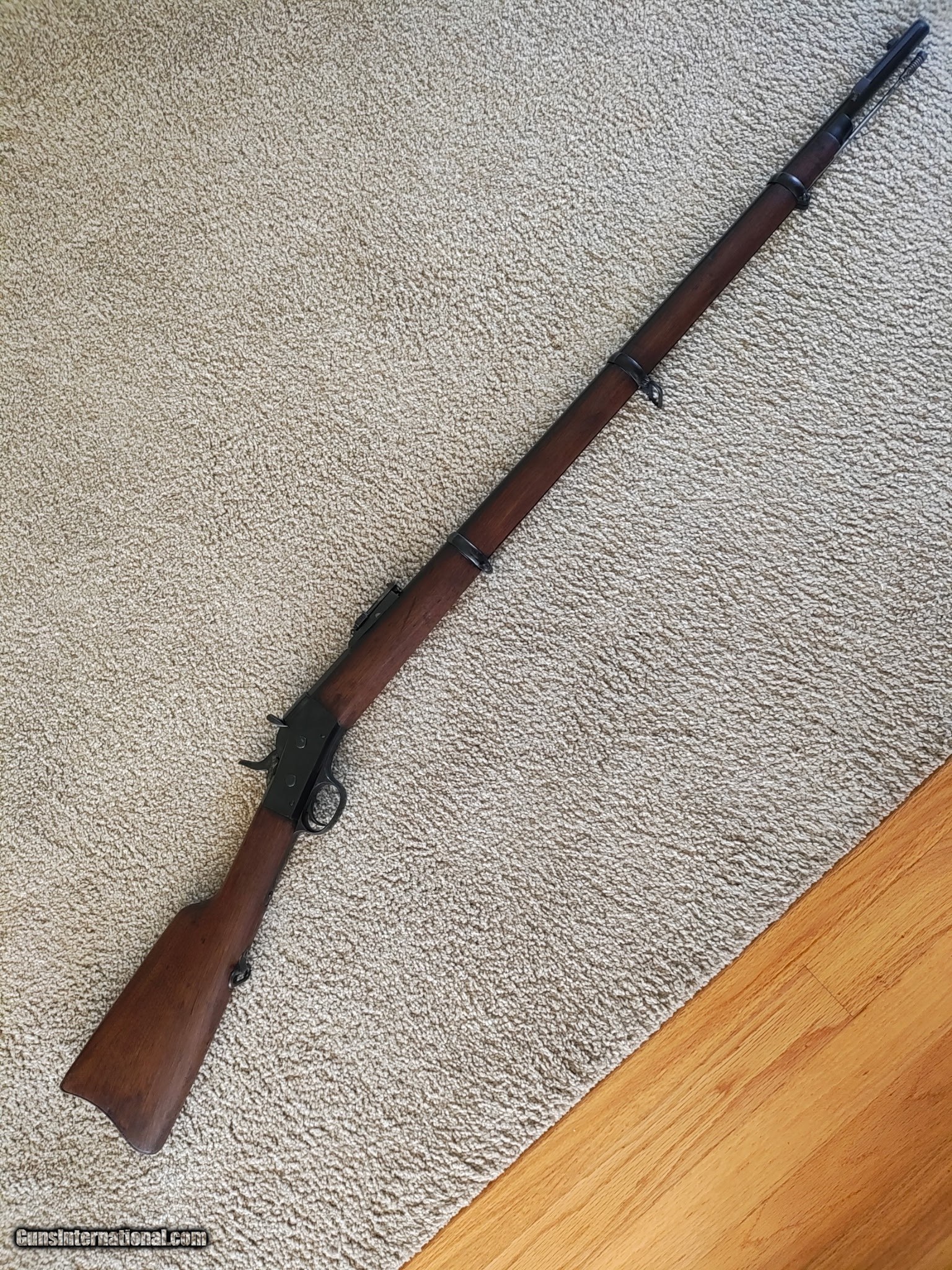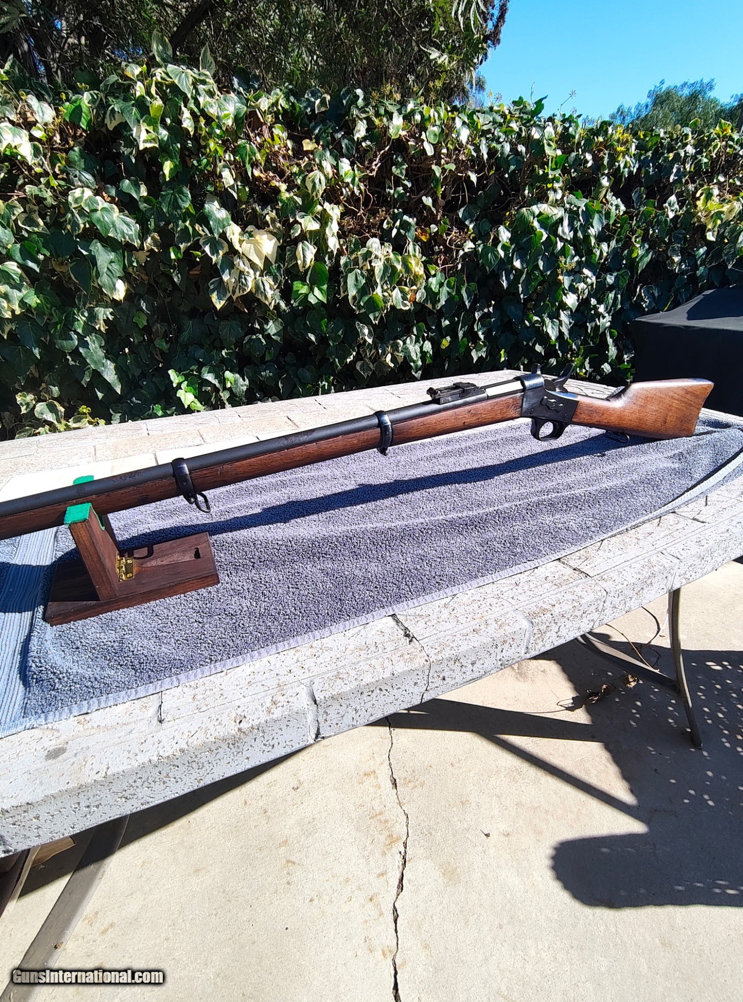 Description: Remington rolling block rifle . Spanish 43. Arsenal reconditioned. Excellent wood and bore. No Argentine marks on top of barrel. 36 inch barrel overhaul 51.5 inches. $800. Please call 805-922-9920 for more information Rifle Caliber: .43 Spanish Manufacturer: Remington Model: Rolling block Spanish 43 Price: $800.00 Buy Now Contact Seller |