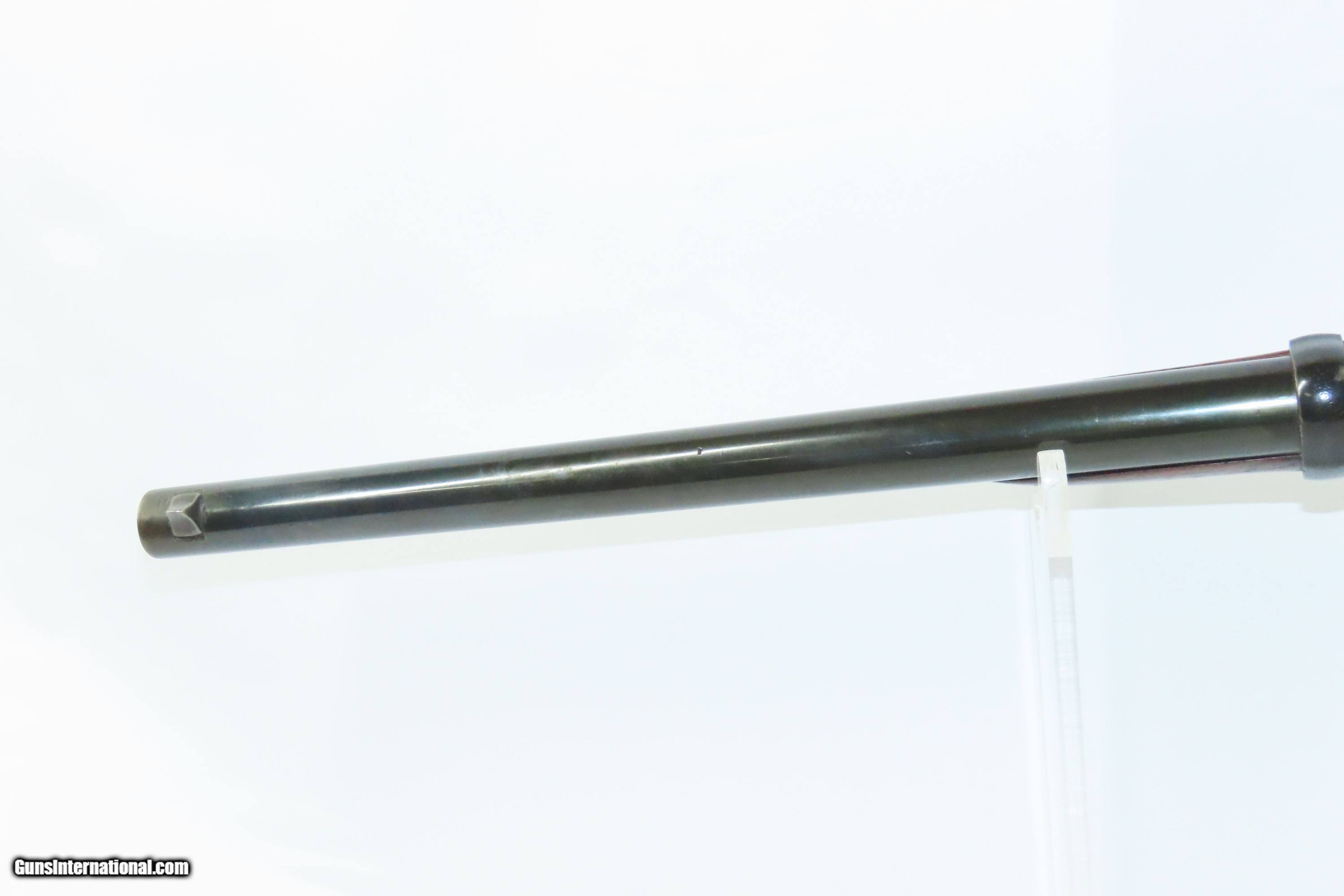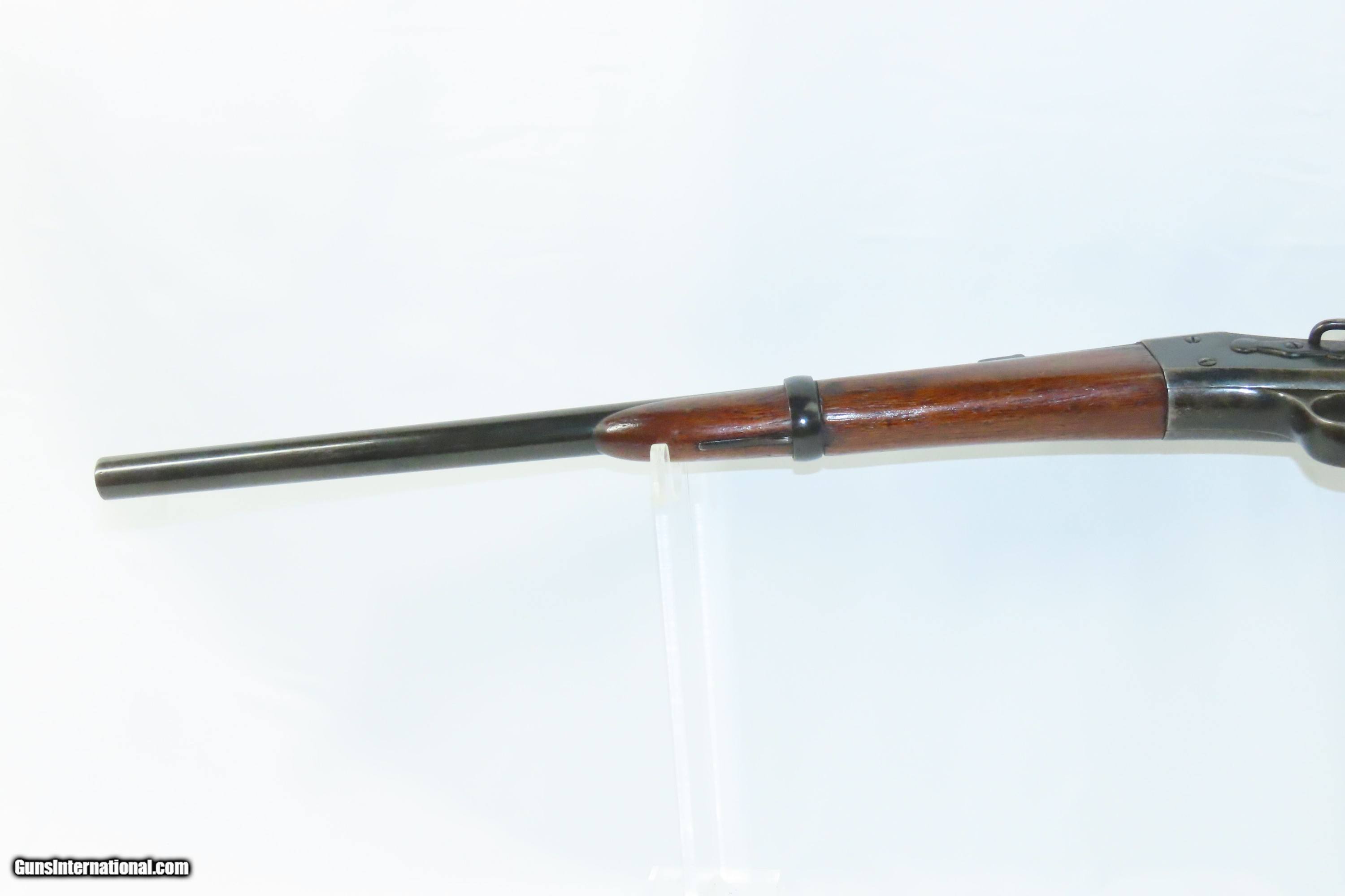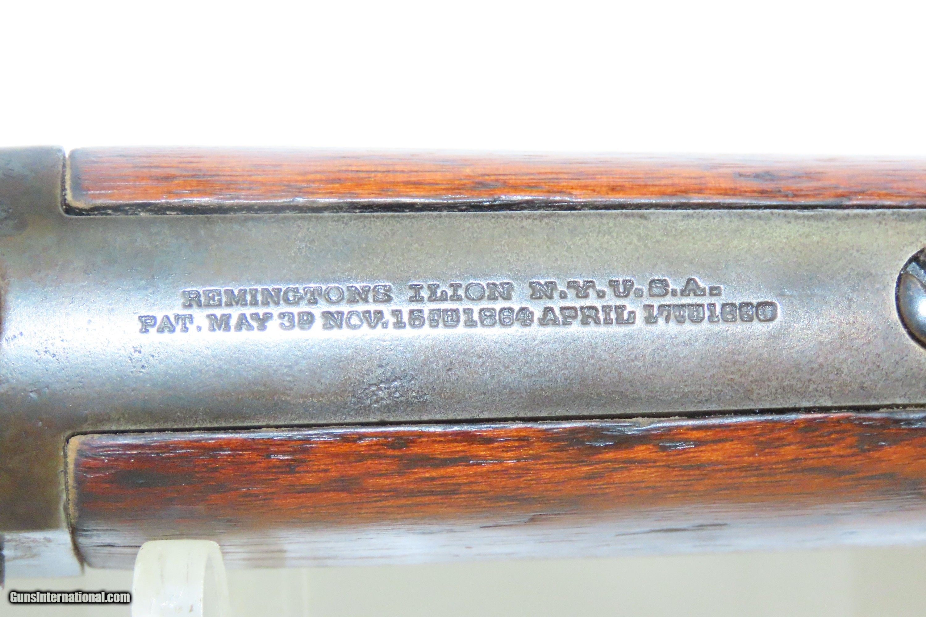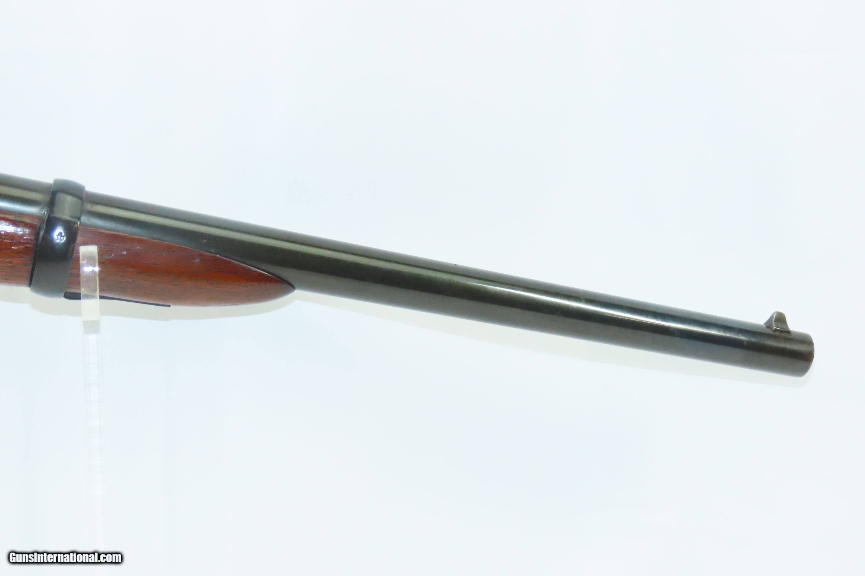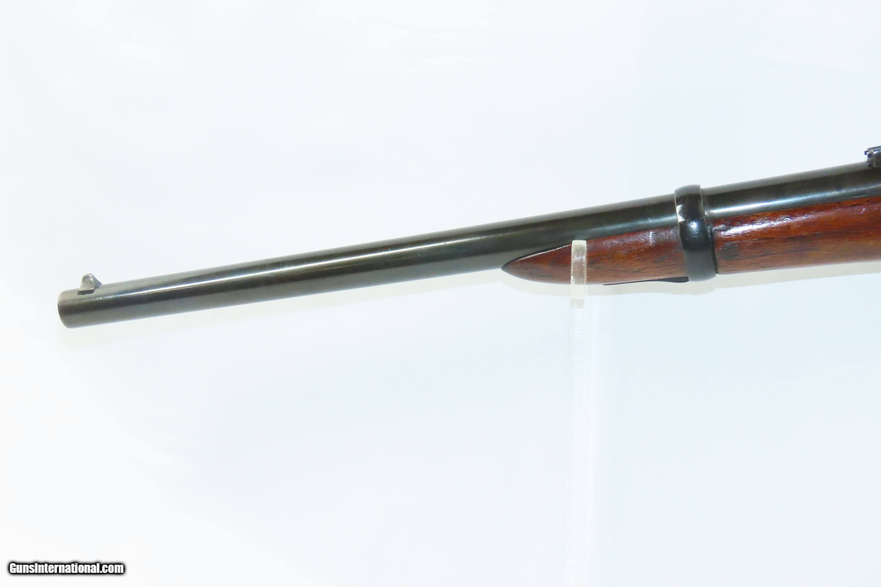 Description: REMINGTON & SONS Antique MILITARY .50 CF Rolling Block Saddle Ring CARBINE 19th Century INDIAN WARS Era Military Style Rifle Here we present an antique E. Remington & Sons Military Pattern Rolling Block Saddle Ring Carbine, made circa the late 1860s to the early 1870s in Ilion, New York. The Remington Rolling Block rifle is a breech-loading rifle that was produced from the mid-1860s into the early 20th century by E. Remington and Sons (later Remington Arms Company). The action was extremely strong, and could easily withstand the increased pressure of the new smokeless powders coming into use by the late 1880s. The Remington Rolling Block had a sturdy, simple action that was relatively inexpensive, just what many governments wanted in the latter half of the 19th Century. They were popular with civilians as well. Along with the Sharps rifle it was one of two rifles probably used more than any other by the buffalo hunters who hunted the American bison herds in the 1870s and 1880s. Civilian Remington rolling block rifles, and later surplus military rifles, became very popular among hunters in Scandinavia, particularly for moose hunting, with ammunition for the rifles being commonly available on the civilian market into the 1920s-1930s. The overall condition is good. Strong action. The bore is in good shape for its age. Some wiggle is present where the buttstock meets the frame. Markings are legible. This example has been refinished in blue. Own the original! This is a legitimate antique and not a reproduction. Barrel is 19-1/2 inches. Caliber: .50 Centerfire Overall condition as seen in photos. Very Fast. Very Safe. FREE SHIPPING WORLDWIDE. Delivered directly to your door by express mail! Guaranteed AUTHENTIC & Includes CERTIFICATE OF AUTHENTICITY. ancestryguns $1400 #244052 SOLD Antique: Yes |