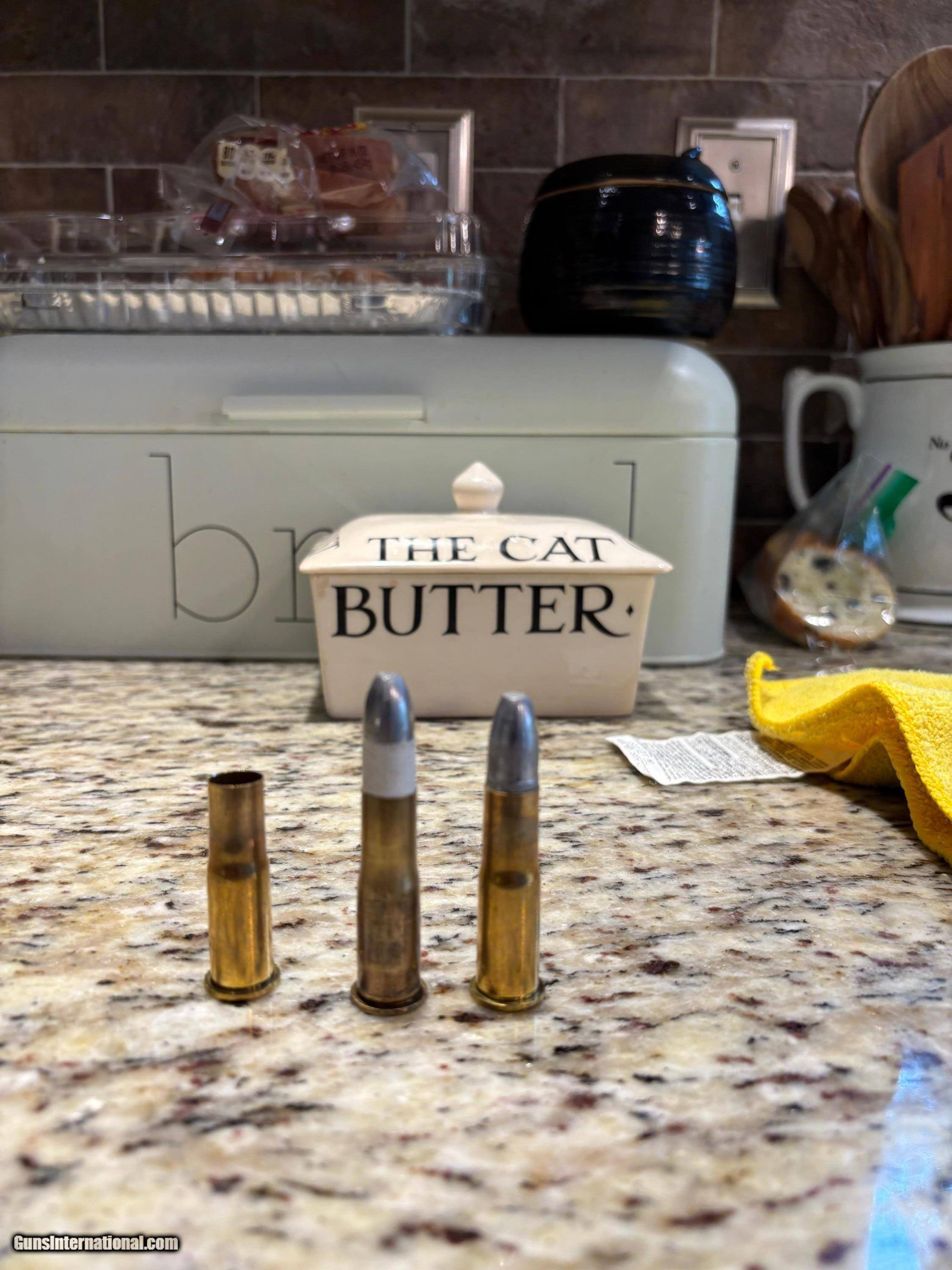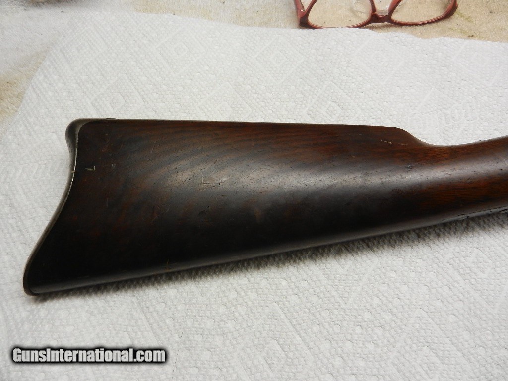 Description: Original Remington Rolling block sporting rifle, special order 32" octagon barrel, .40/50 sharps BN, dies and brass, nice wood and bore, excellent mechanical condiotion, original sights, matching numbers, Call 814-724-5006 for Special deal or details, (land line so no texts). Shipping calculated to your location. Antique so no FFl is needed except if required by your state. Antique: Yes Rifle Caliber: .40-50 Sharps Manufacturer: Remington Model: Rolling Block Serial Number: 4701 Barrel Length: 32" Condition: very good Wood Condition: nice Bore Condition: good Barrel Type: octagon Action: Rolling block Triggers: single Stock: walnut Finish: patina Sights: original Manufacture Date: 1870's Price: $2,495.00 Contact Seller |