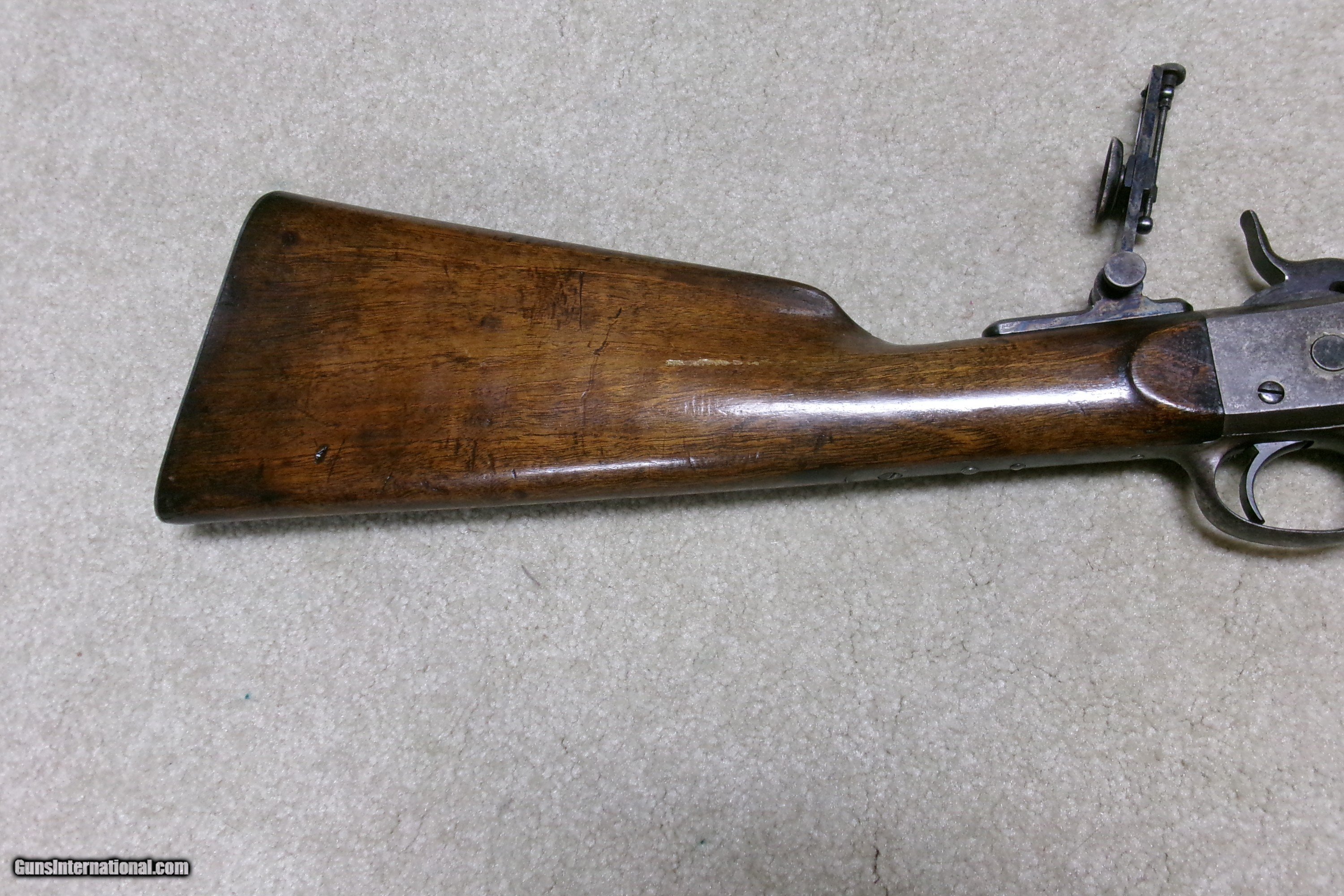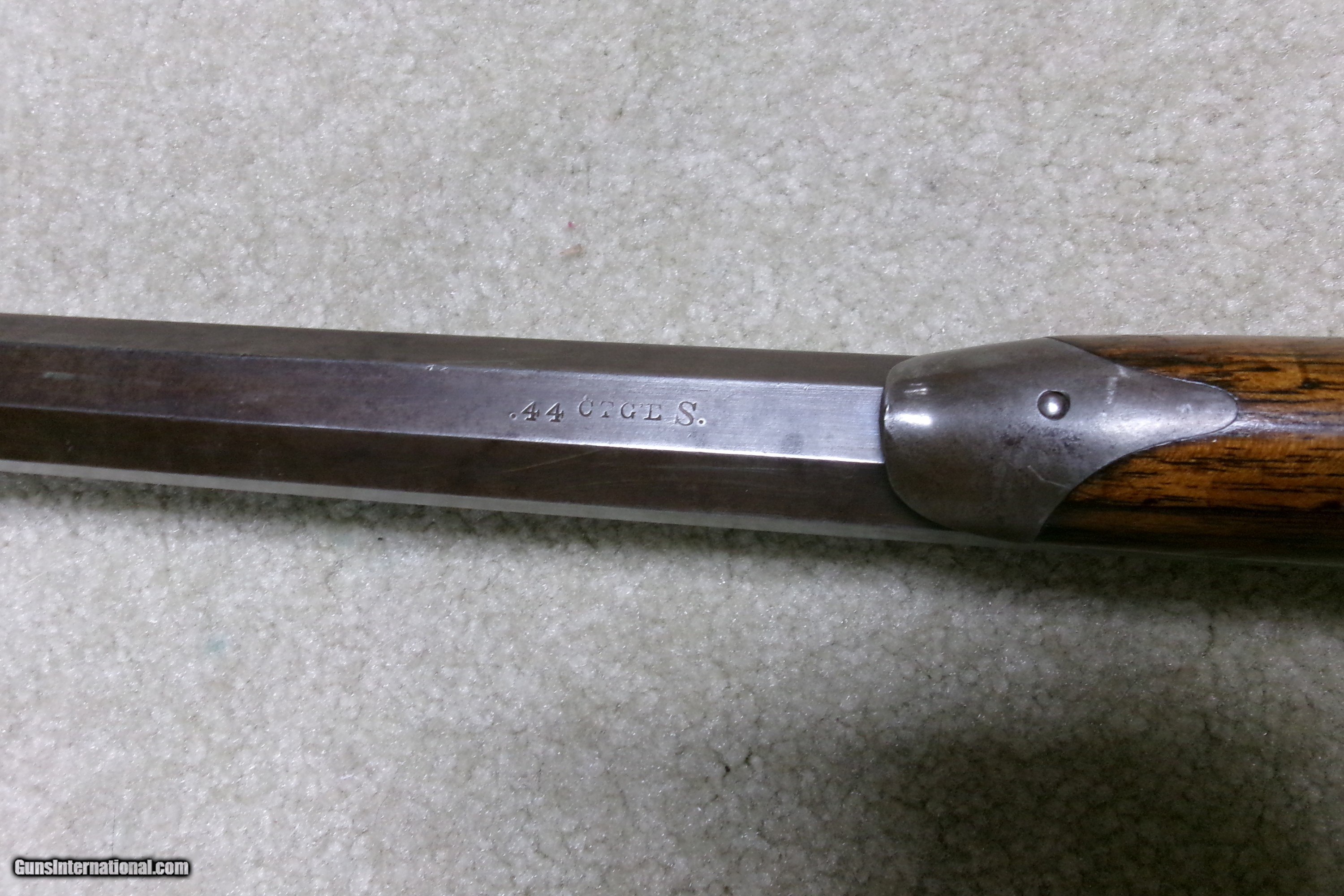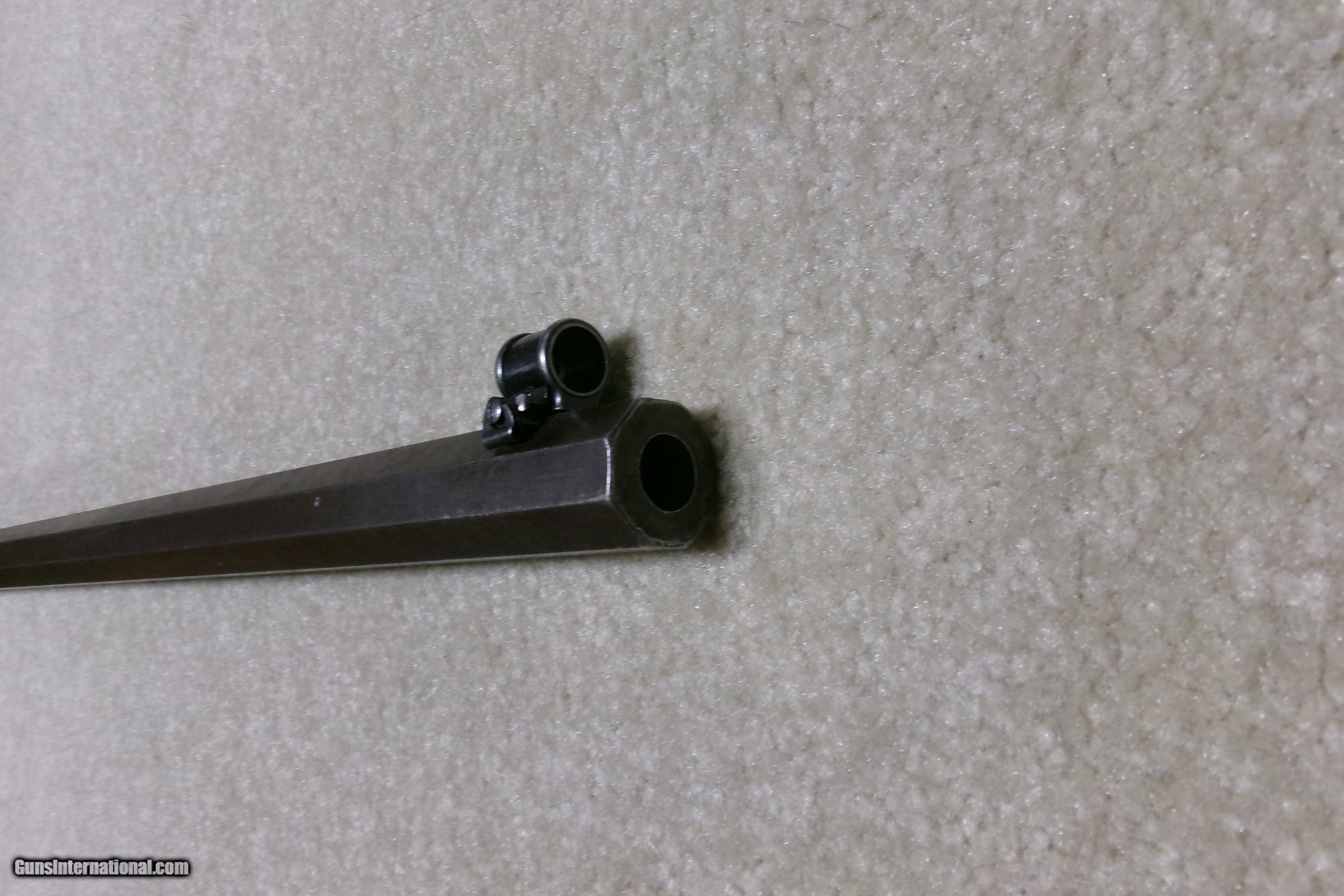 Description: SPECIAL ORDER EARLY REMINGTON No.1 ROLLING BLOCK OCT. SPORTING RIFLE IN .44-77, #2XXX. It is fairly rare to find Sporters with special features. This one has a straight sporting stock with factory smooth steel ,shotgun butt plate instead of the usual curved heavy steel “carbine-style” butt plate. Second it has an extra long 32” octagon barrel. The standard length for these was 26” with a charge for each two inch increment over this length. Most seem to be found with 30” barrels with the long 32” not often seen. The inside of the butt plate number matches the receiver number as does the forend and bottom of the barrel number under the forearm. It is fitted with a case colored elevation adjustable mid-range vernier tang sight, a small spirit level (bubble level) in the narrow rear barrel dovetail along with a windage adjustable globe front sight. The front sight is probably a later addition as it is unmarked except for the patent date of Feb. 13, 1894. Stock and forend with correct steel schnable tip are generally excellent and show light handling with only some minor edge chipping at the forend bottom by the receiver. The receiver is mostly a mottled gray/brown. The hammer and breech block still retain some very aged blue. The barrel has even thin blue. The bore is bright and excellent with any corrosion very light and surface ahead of the chamber that is minor. Light hammer spring with weak half-cock. The barrel is correctly marked “.44 CTGE S.” on the bottom flat ahead of the forearm and the muzzle end of the barrel has the original Remington crown with the octagon edges beveled. An attractive and unusual 1870s Remington that is difficult to find in even standard configuration. Antique: Yes Rifle Caliber: .44-77 Manufacturer: REMINGTON Model: No. 1 Serial Number: 2XXX Barrel Length: 32" OCT. Condition: FINE+ Bore Condition: EXCELLENT Price: $4,850.00 Contact Seller |