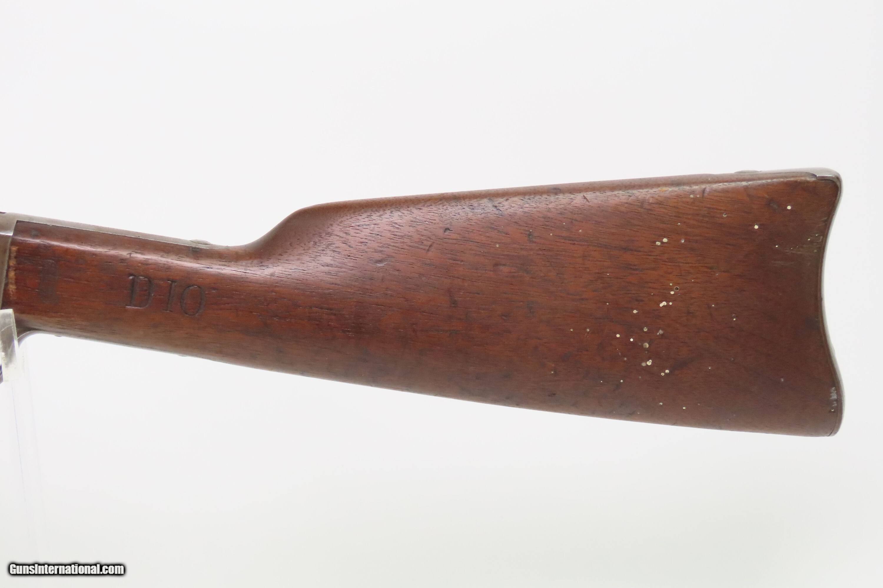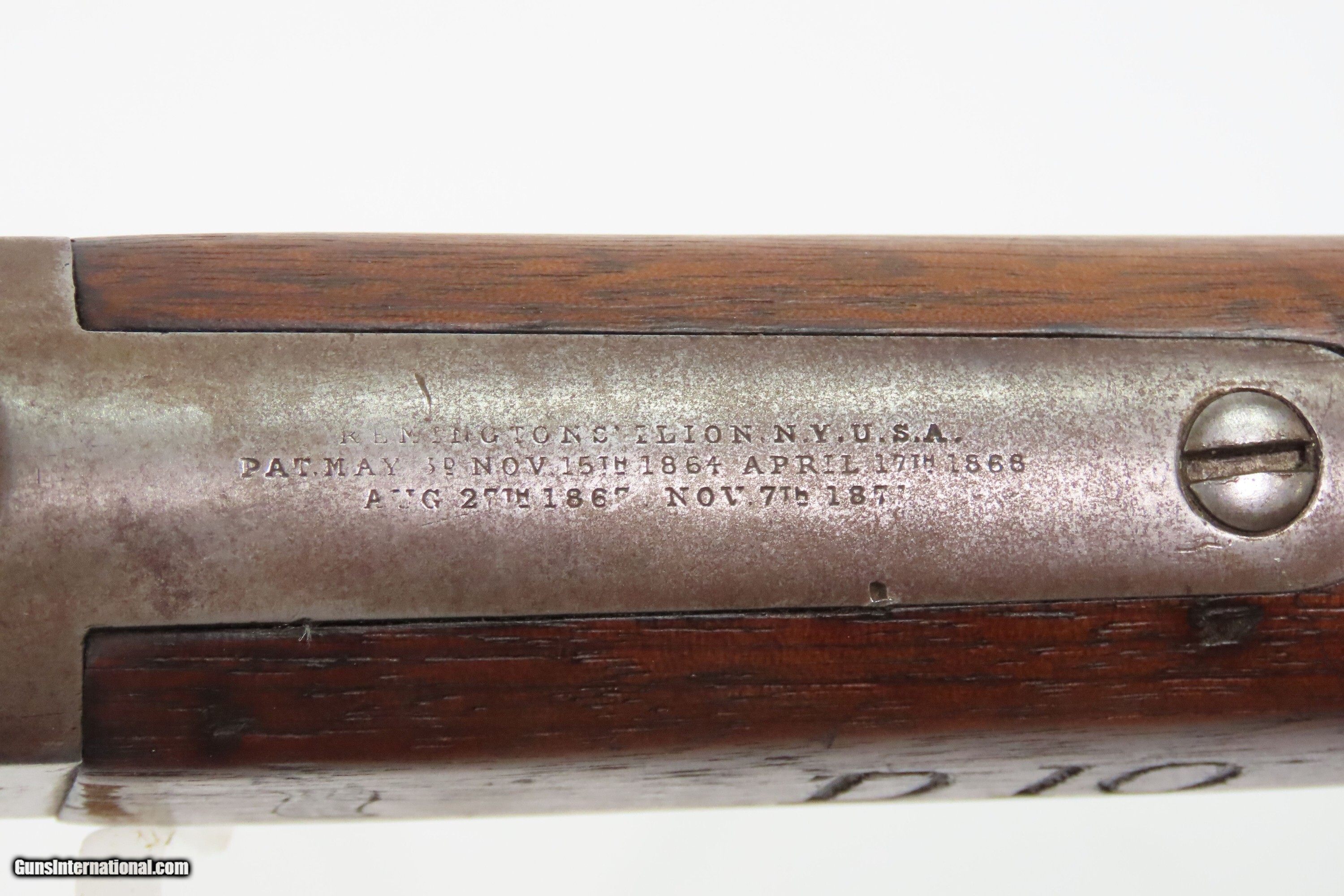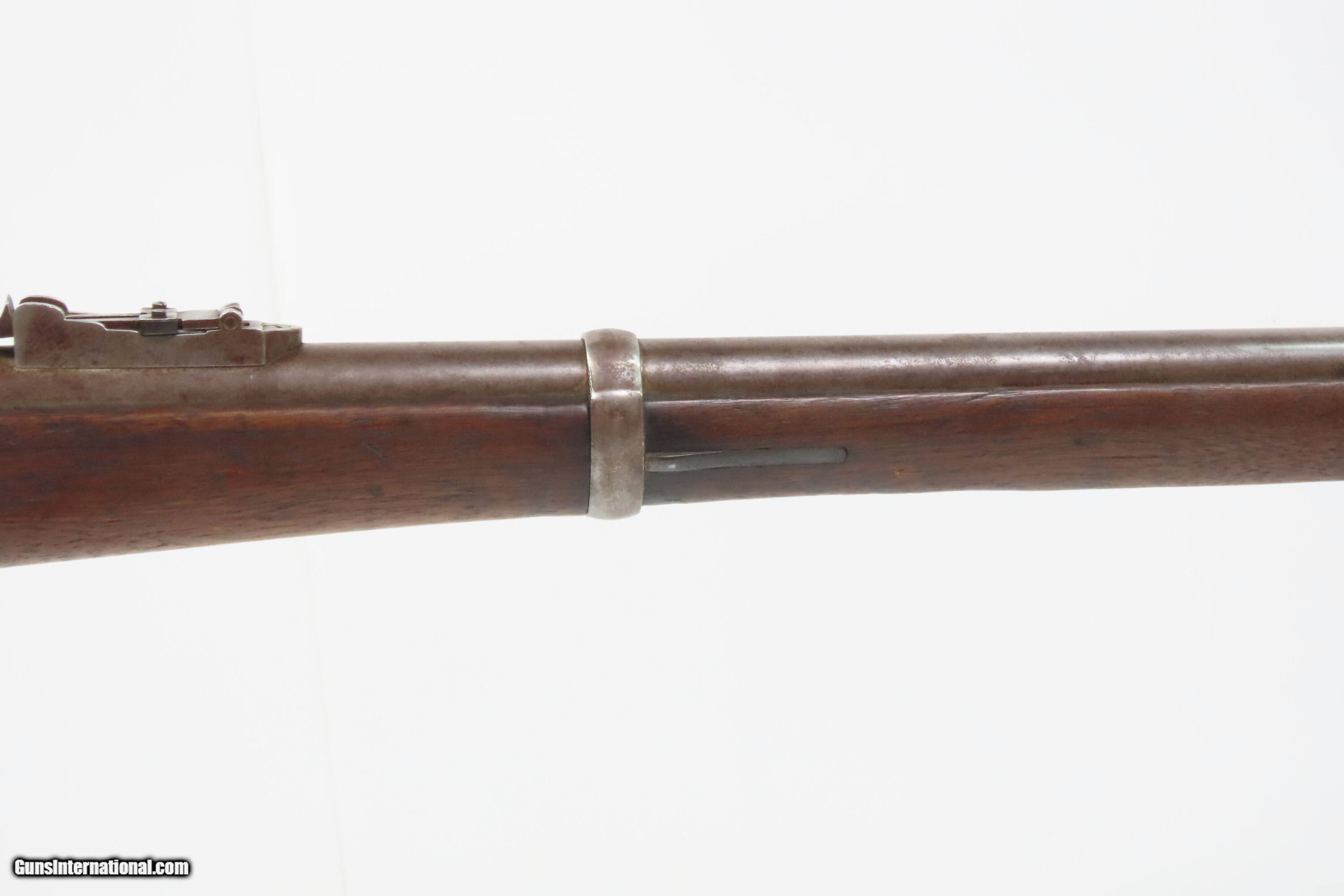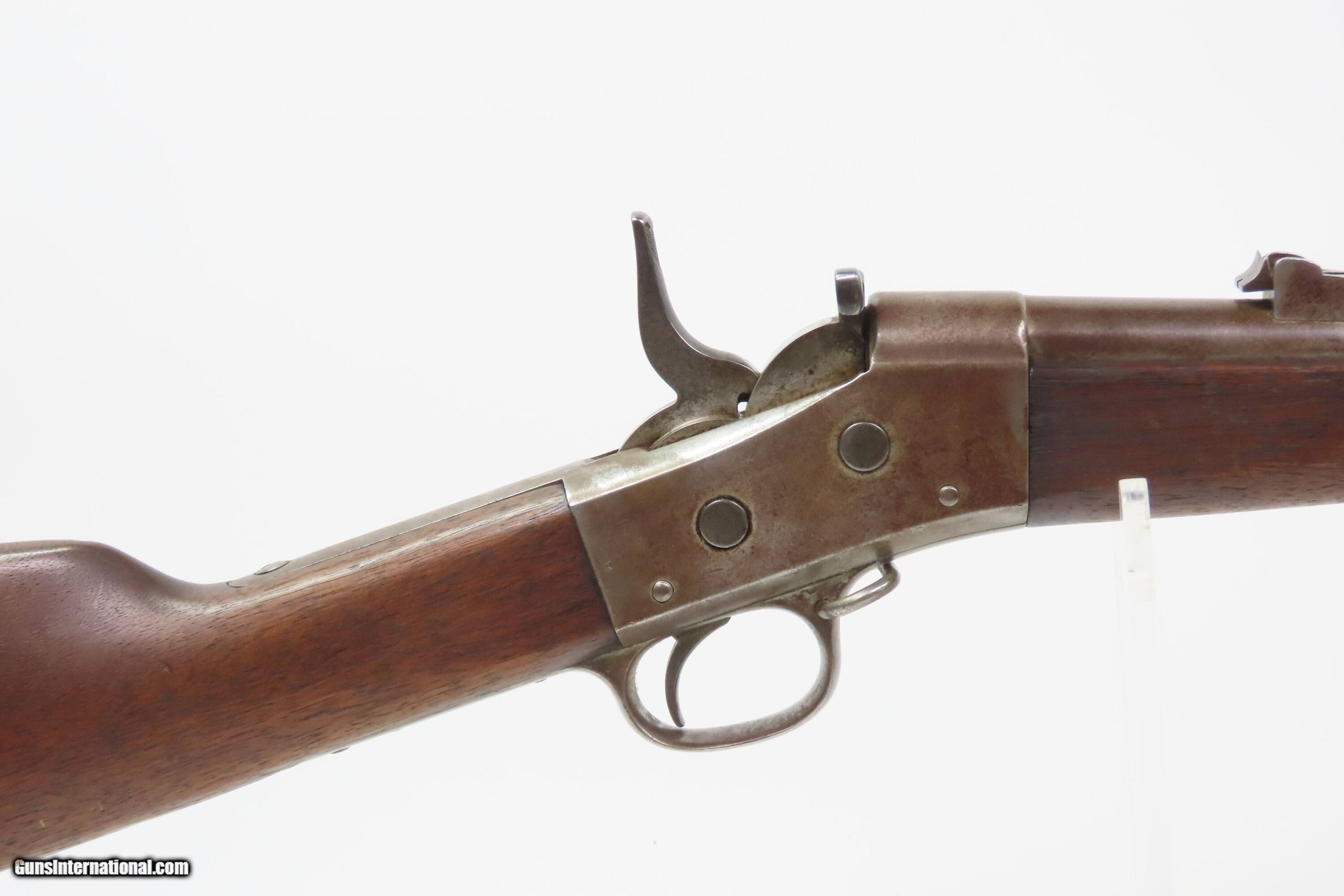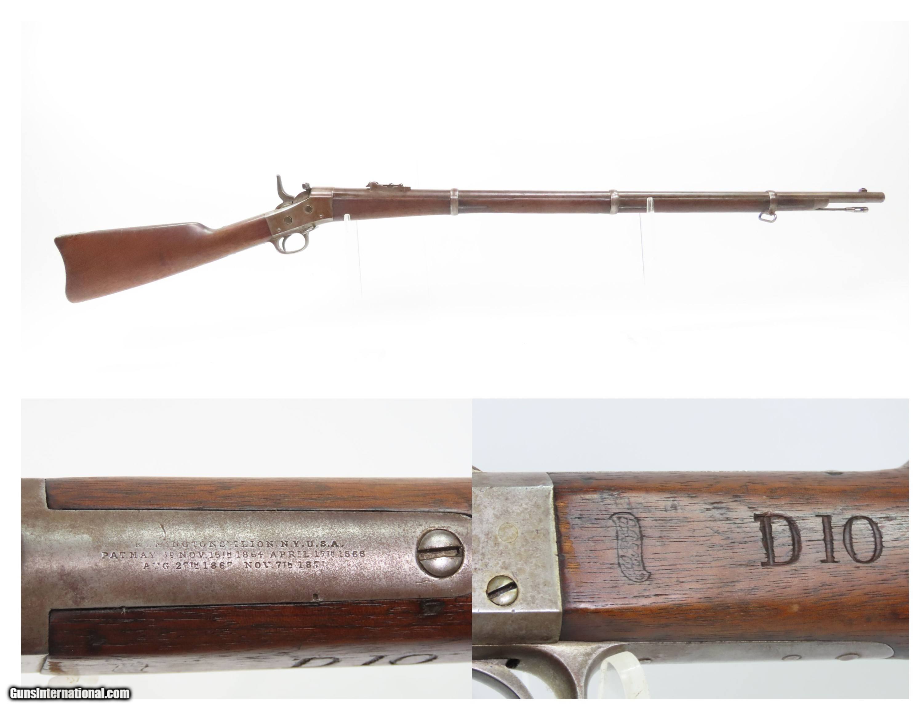 Description: STATE of NEW YORK Contract Antique REMINGTON Rolling Block MILITIA Rifle Post-Civil War INDIAN WARS Era Rolling Block Here we present an antique State of New York Contract Remington Rolling Block Militia Rifle, made circa 1872-73 in Ilion, New York. The Remington Rolling Block rifle is a breech-loading rifle that was produced from the mid-1860s into the early 20th century by E. Remington and Sons (later Remington Arms Company). The Remington .50-70 caliber rolling block was the U.S. Army's first official cartridge rifle and among the few contenders that easily made the jump from rimfire to centerfire rounds. These can be distinguished by the extremely high curved hammer spur, the thumb lever for the breechblock that protrudes outward instead of up and the safety locking action which automatically returns the hammer to half cock when the breech is closed. They used the standard Remington military round top, rolling block action in .50-70 Center Fire caliber. The Remington Rolling Block would serve New York until the 1890s, and sources indicate these rolling blocks served with New York Militiamen deployed out West during the Indian Wars. The overall condition is nearing fine. Original brown patina. Excellent action. The bore is clear with strong rifling. This example sports a solid stock with average handling wear. A legible cartouche is present on the left wrist. Markings are clear. “D10” is marked on the left wrist. Own the original! This is a legitimate antique and not a reproduction. Barrel is 36 inches. Caliber: .50-70 GOVT Overall condition as seen in photos. Very Fast. Very Safe. FREE SHIPPING WORLDWIDE. Delivered directly to your door by express mail! Guaranteed AUTHENTIC & Includes CERTIFICATE OF AUTHENTICITY. ancestryguns $2000 #250147 Antique: Yes Price: $2,000.00 Buy Now Pay with