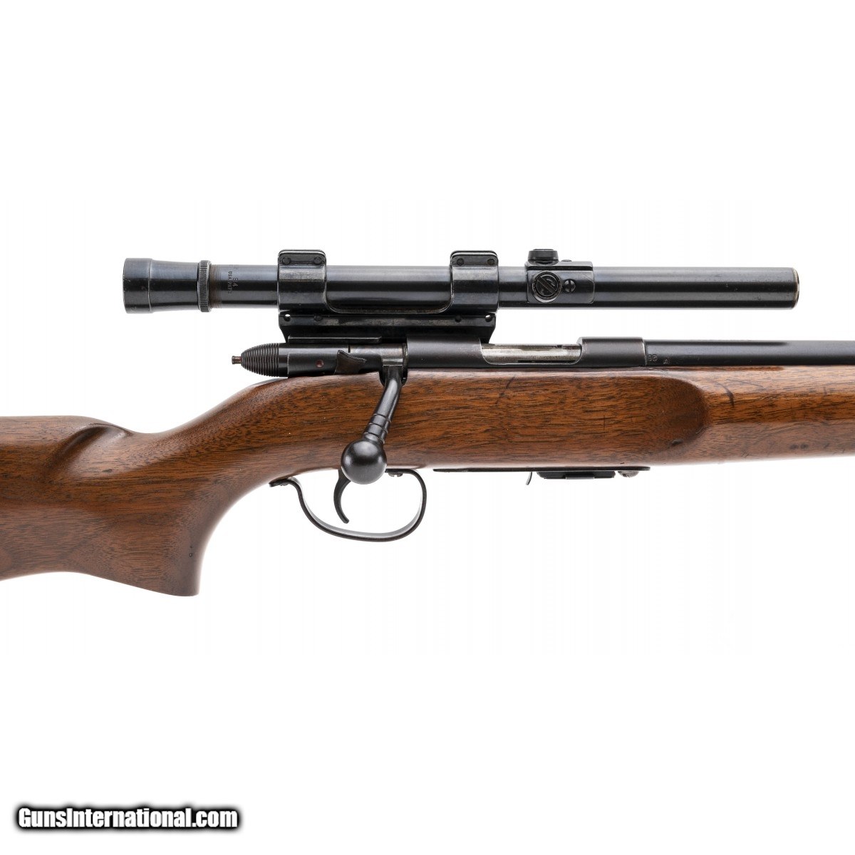 Description: " Bolt action target rifle manufactured in 1948. Metal has a thinning blue that is turning to patina. Bore is excellent. Comes with a period Weaver B4 scope. Optics are a little foggy, but still visible. Good to very good overall condition. SOLD |