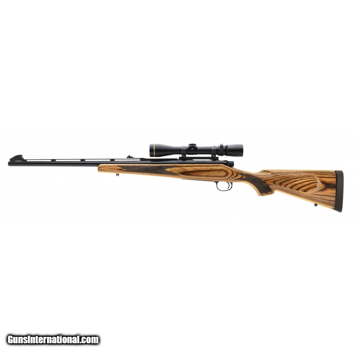 Big bore rifle with laminated stock and 22"" vent rib barrel. Has a Leupold 2.5x8 scope. Excellent condition.