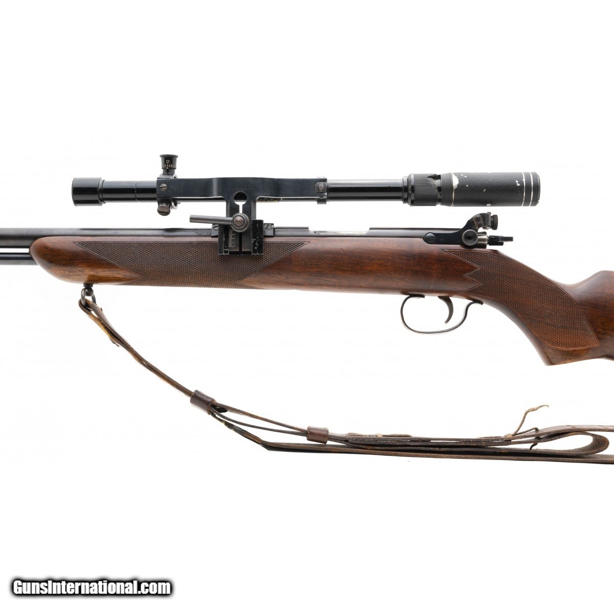Description: " Remington Model 341-P .22 LR caliber rifle. This is a neat and interesting tube fed bolt action repeator. Made in the 1930’s -1940’s. Has been drilled and tapped for a scope. Scope is period for the rifle and is made by Mossberg. Bore is excellent. Stock is excellent and finely checkered. Ejector and carrier are interesting. Bolt has a rotary safety tab. Very good plus overall condition. SOLD |