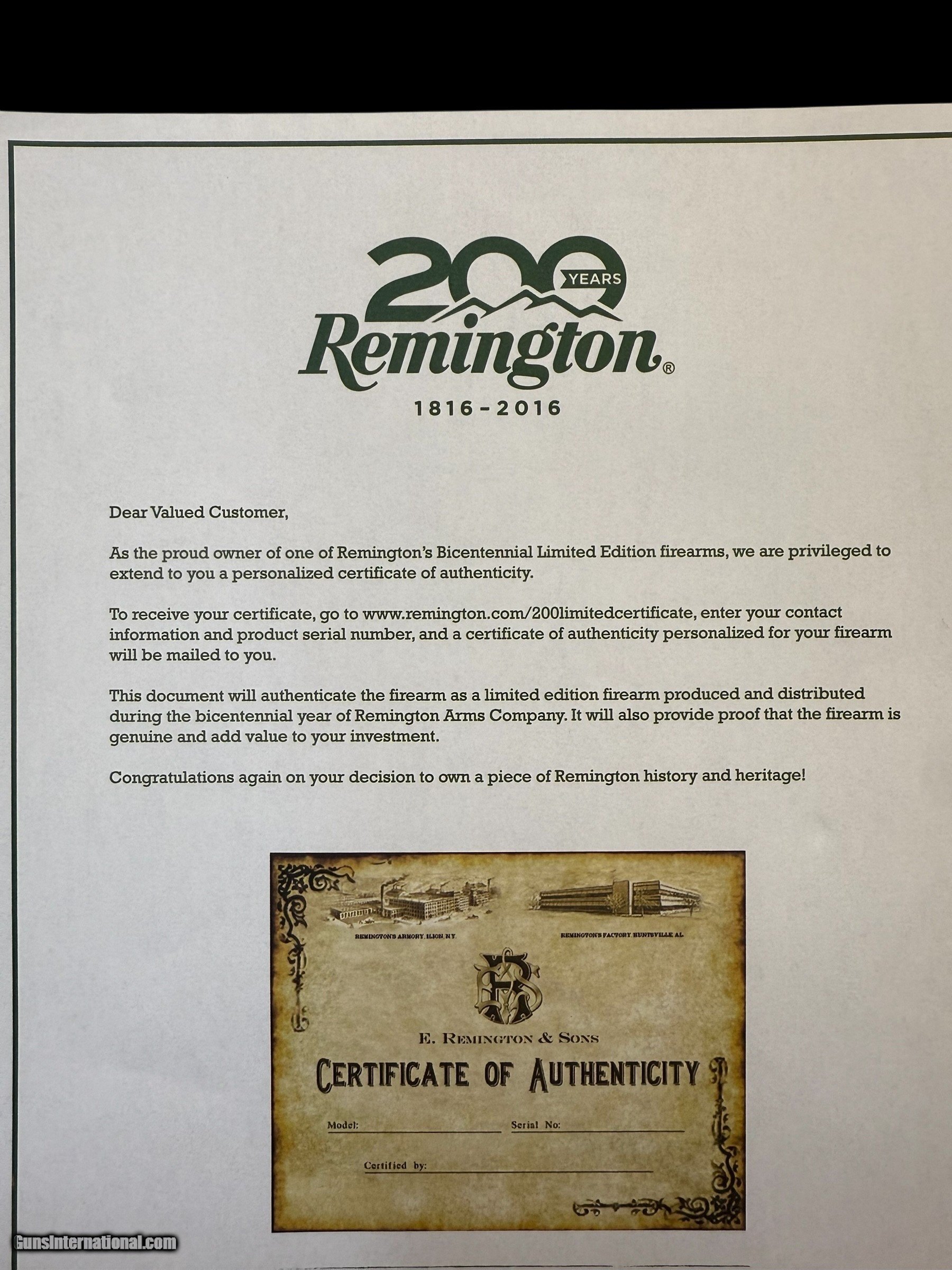 1 of 2016 FACTORY ENGRAVED REMINGTON 700 BDL 200TH ANNIVERSARY GOLD INLAID NEW IN BOX MINT CONDITION