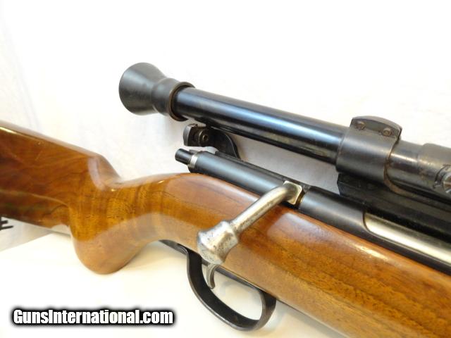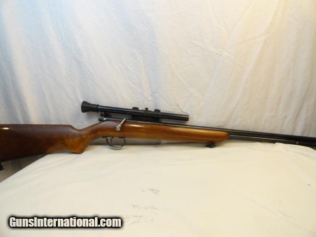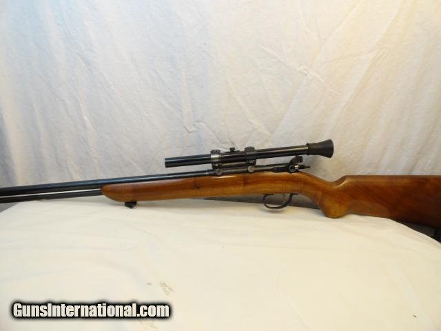 Made from 1940-62. It is referred to as the SportsMaster. It retains almost 100% of the original blue finish and the wood is near mint. Has a nice quick release sling and is mounted with a Weaver 344 with perfect optics and weaver mounts with rubber eye cup. Special Remington rear sight with extended safety for scope use. NSN