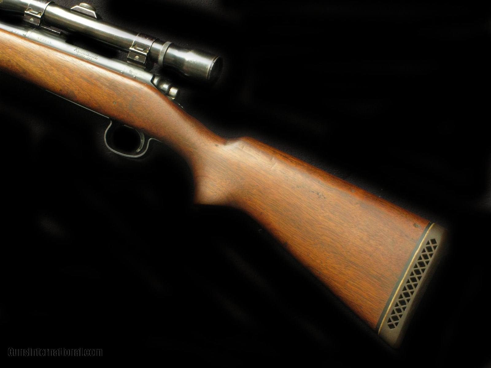 Description: Rechamber from 257 Bob, 10 twist 24" barrel; mag length is a full 3.2" which is surprising on a 722, and it's the correct OAL for this ctg. Stock has been cleaned and reoiled, no cracks. Bore looks decent, not shot out. With Weaver bases and optionally period El Paso Weaver scope which I believe is a 4x but I can't find a marking on it, the obj lens has a chip in the periphery which doesn't seem to affect anything. But this caliber really asks for more magnification. This comes pretty close to duplicating the 257 Wby with about 15% less powder burn and no belt which is an abomination. Anyway, it's an AI for a lot less than it would cost to build one. Cases last longer than std 25-06, and the ctg is quite efficient with good range for antelope, mule deer and even PDs. SOLD |