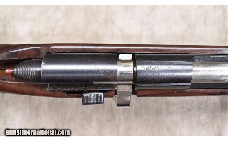 Description: This bolt action version of the Nylon 66 features a tubular magazine, silver colored trigger, and Mohawk Brown Delrin stock. The bolt action rifle stock were shaped a little different with more of a slab-sided appearance. The loading port is just behind the tip cap. This one is in pretty good shooting condition but does have some rust on the barrel. .22 Long Rifle SOLD Chambers: 14 round tubular magazine. Metal Condition: Good. There are several spots of rust on the barrel. Wood Condition: Good. There are a number of scratches from handling. Bore Condition: Shiny and bright with good rifling. Barrels: 24-inch Triggers: Factory trigger Stock Dimensions: 13-1/2 inch LOP. Butt Pad: Black Delrin plate. Weight: 4 LB - 15 OZ Sights: "Blade and notch open sights, grooved for scope. Item Location: Rogers |
