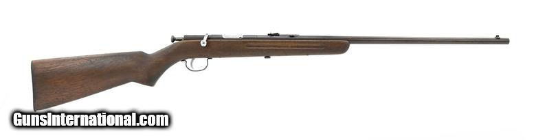 Remington 33 22 S, L, LR caliber rifle. Made in 1933. Single shot bolt action bore is excellent. Metal has a brown patina. Stock has a chip at the toe. Good overall condition with wear.