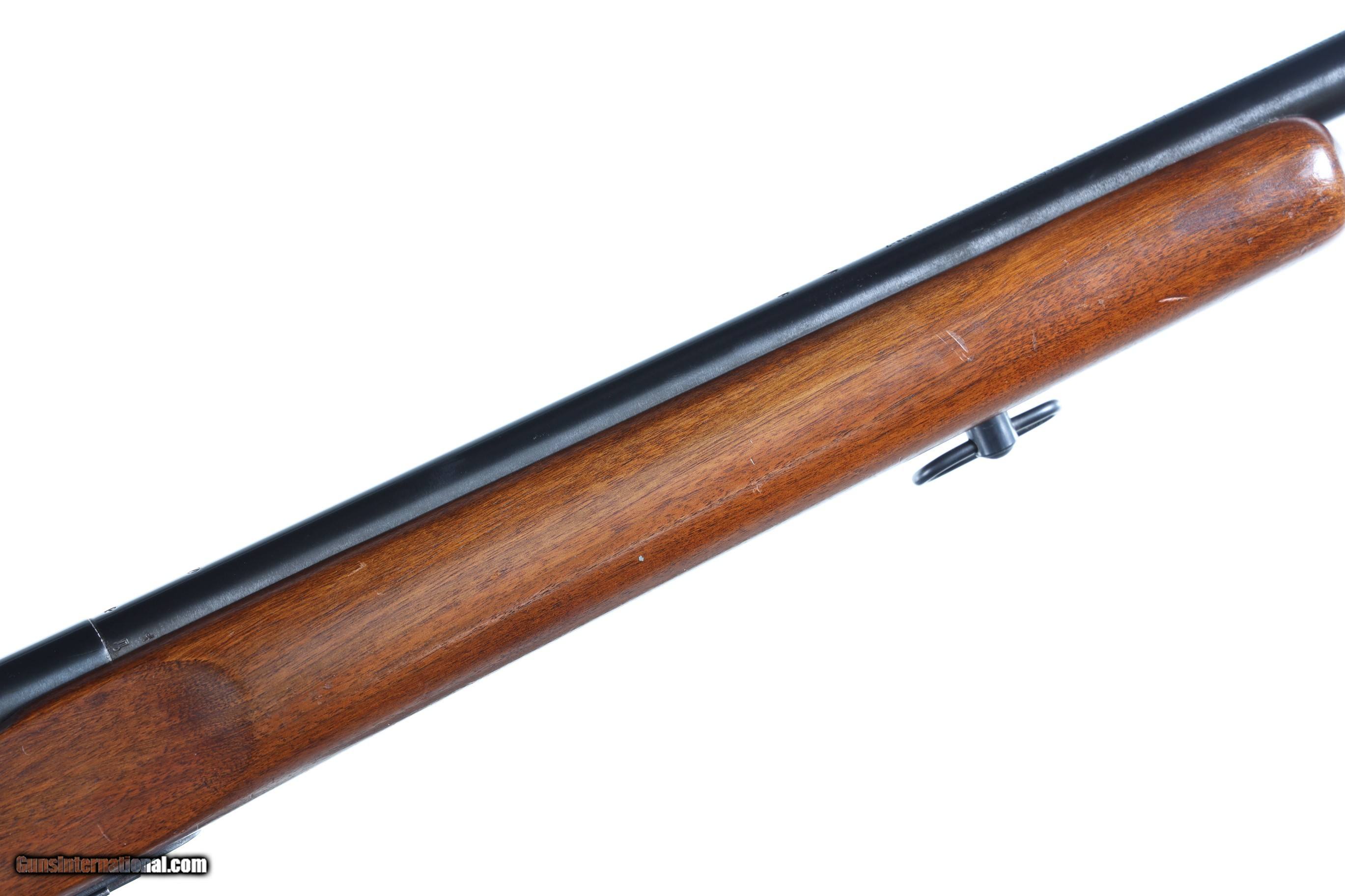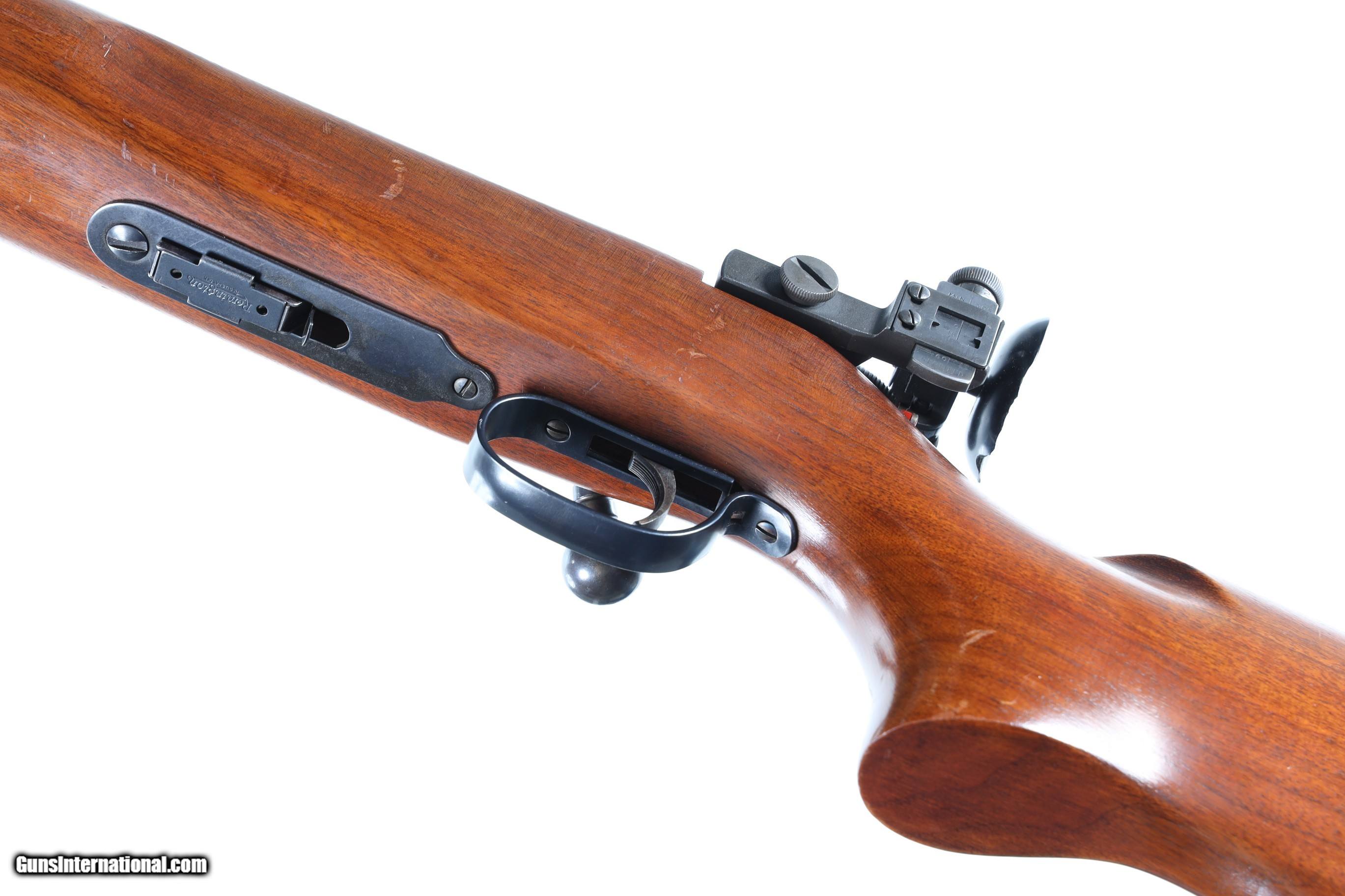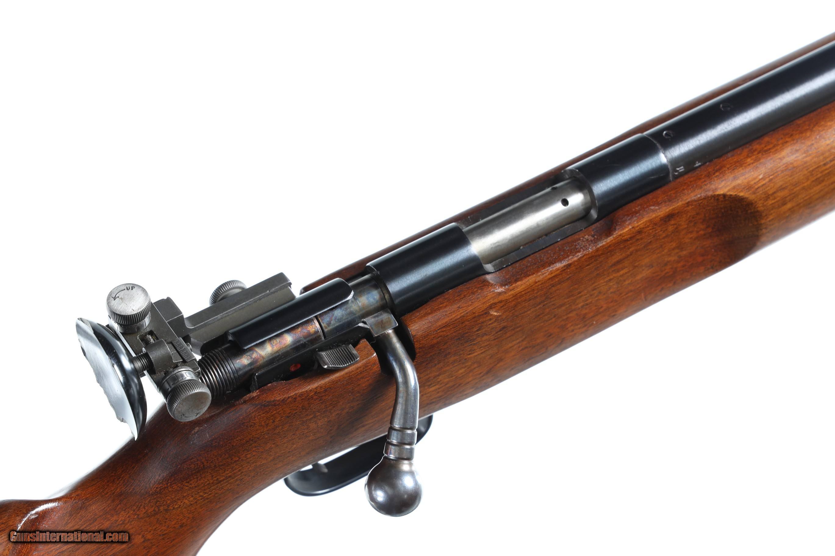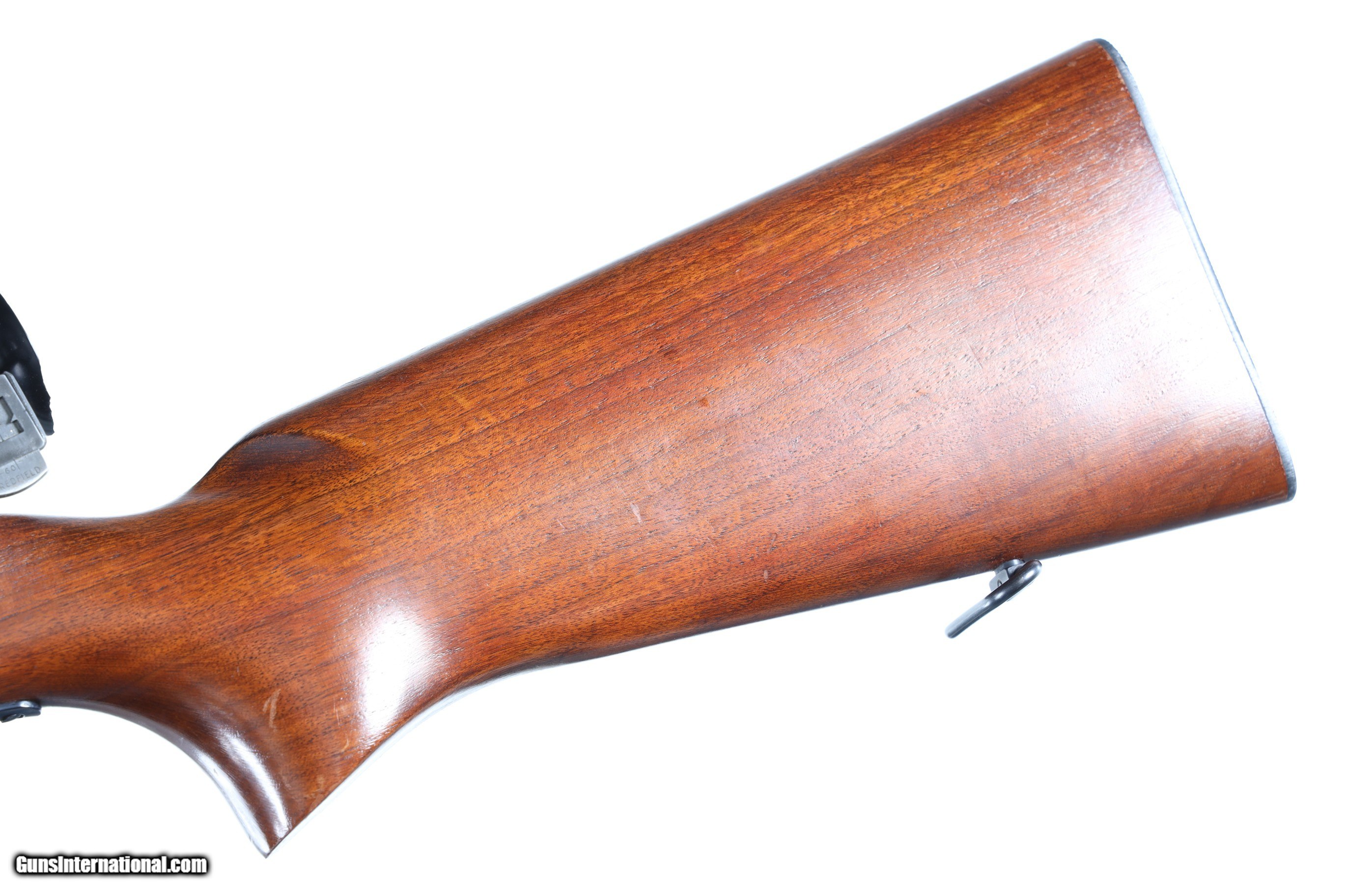 Description: Blue finished metal with 5 round detachable factory marked magazine. 17A front globe sight with Target rear receiver sight with large eye cup. Varnished walnut stock with checkered steel butt plate. Very fine overall with most all blue finish remaining. Stock has a few handling blemishes.Action operates properly. C&R • Free Shipping, No Credit Card Fees. • Lay-a-way available for this firearm. • 1/3 Down, a 1/3 in 30 Days 1/3 in 60 Days. SOLD Curio/Relic: Yes Rifle Caliber: .22 Long Rifle Manufacturer: Remington Model: 513-T Matchmaster Serial Number: 135359 Barrel Length: 27 |