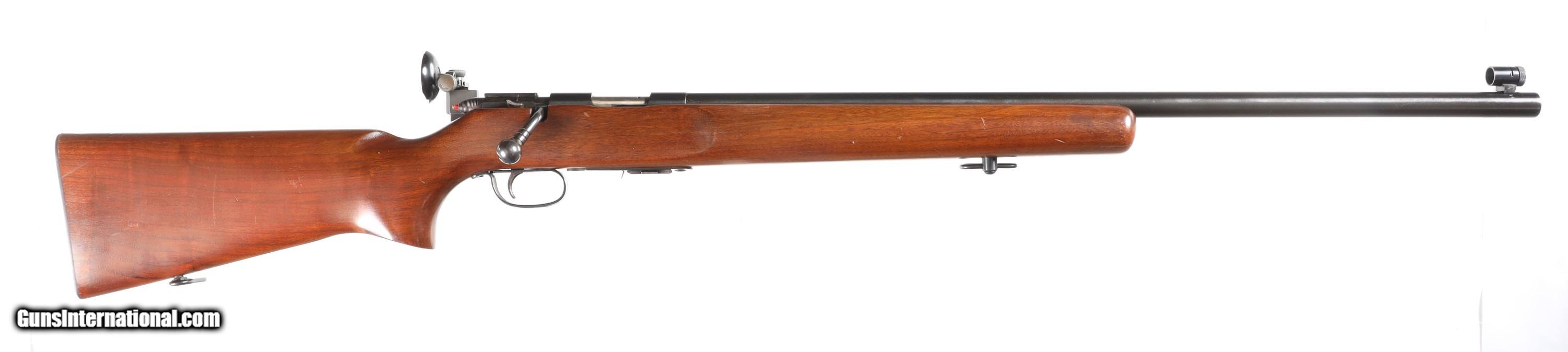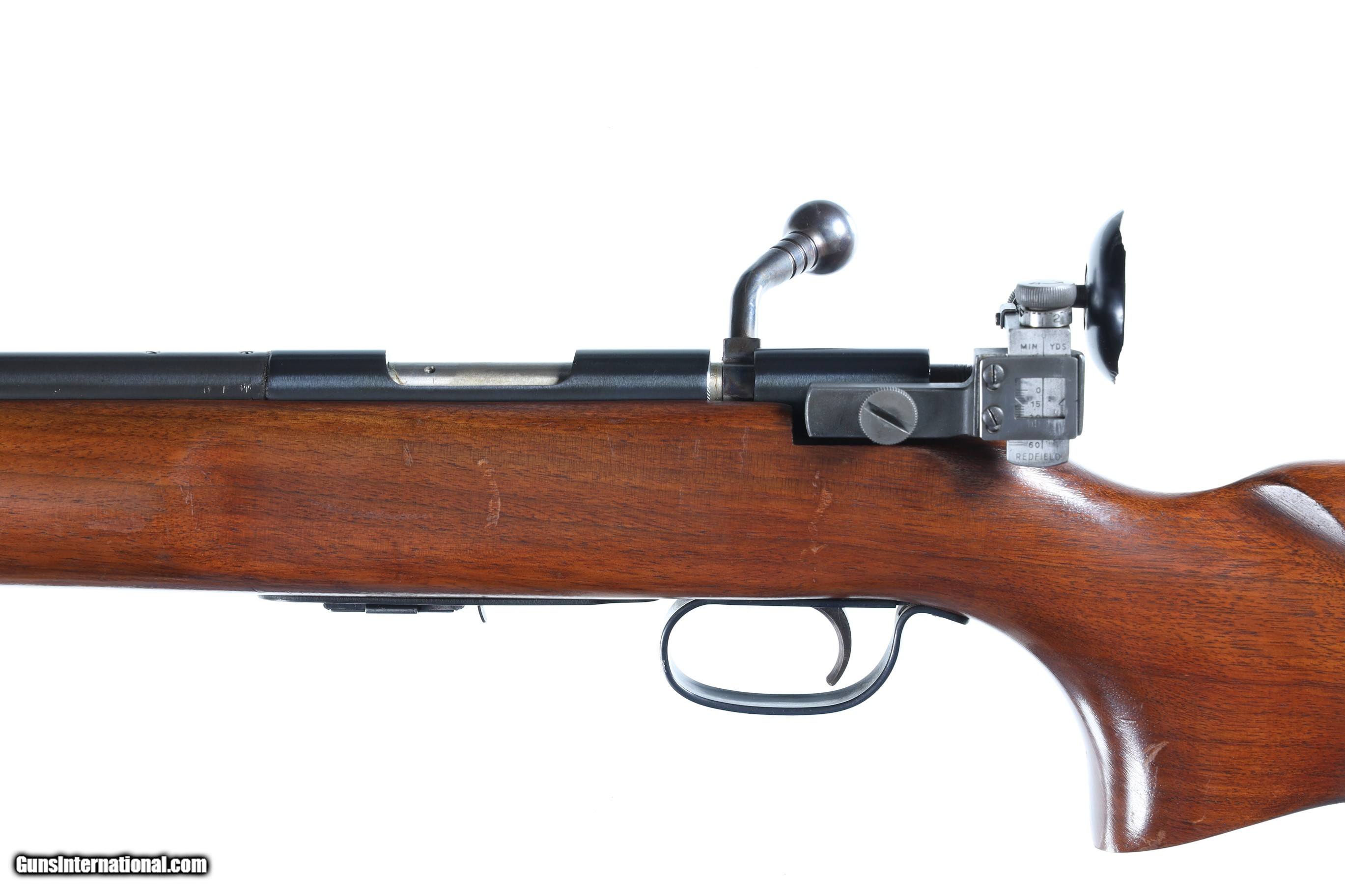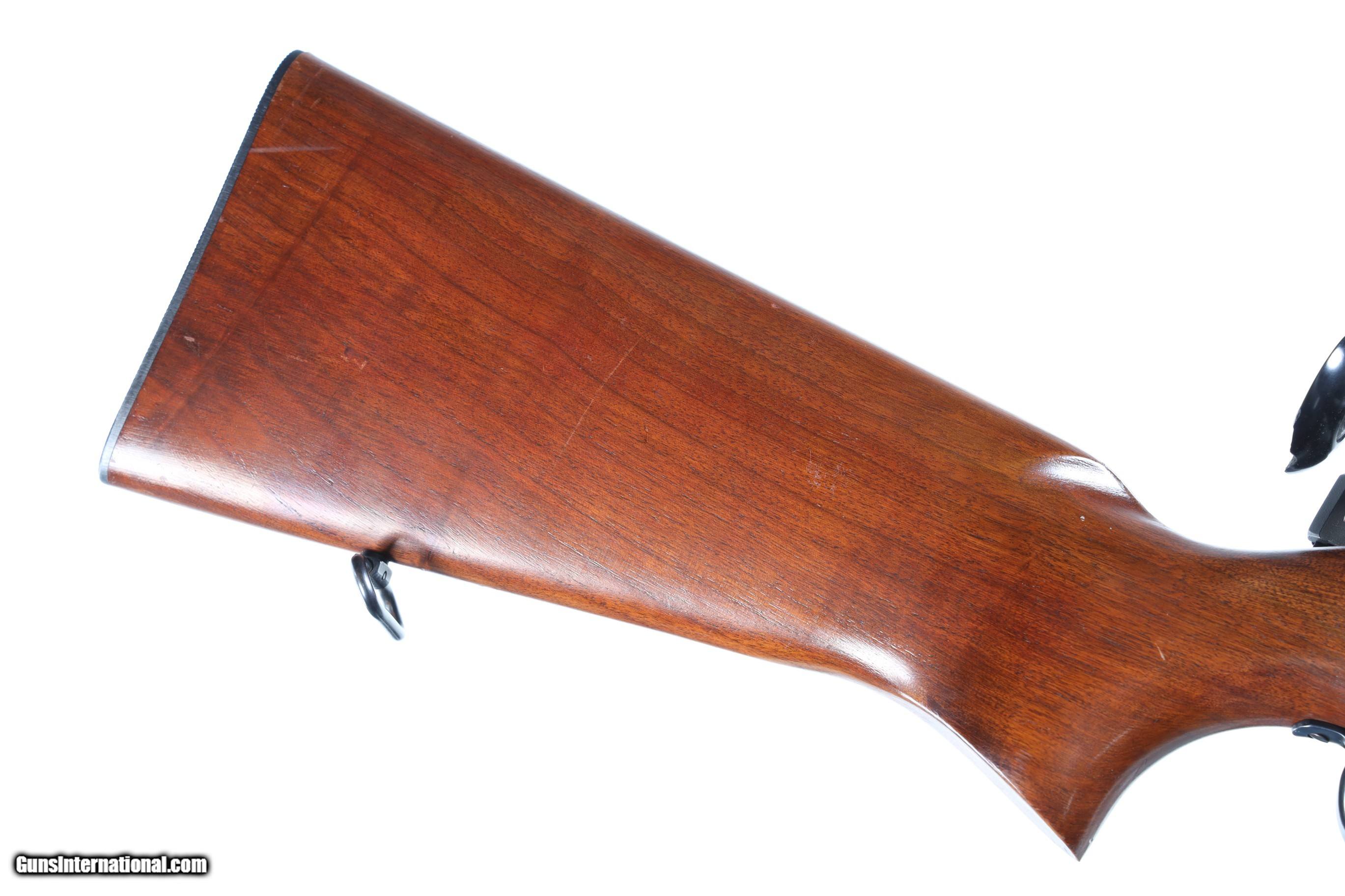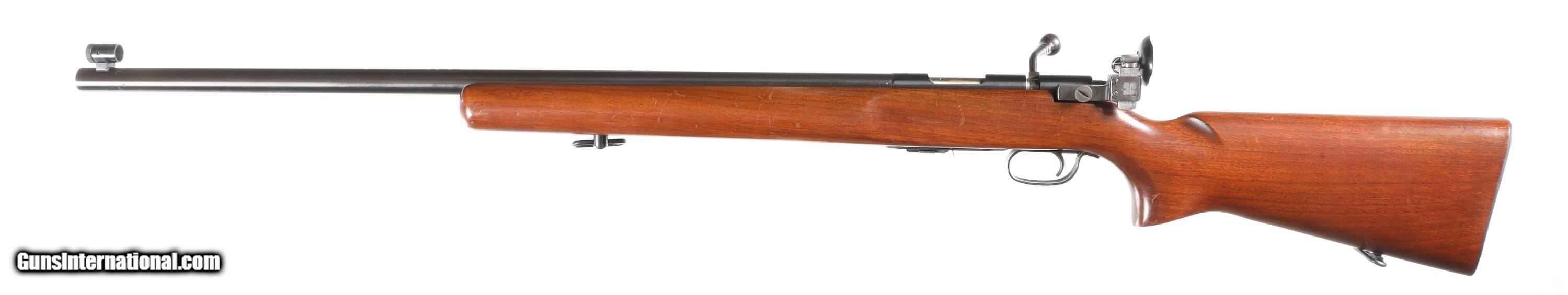 Description: Blue finished metal with 5 round detachable factory marked magazine. 17A front globe sight with Target rear receiver sight with large eye cup. Varnished walnut stock with checkered steel butt plate. Very fine overall with most all blue finish remaining. Stock has a few handling blemishes.Action operates properly. C&R • Free Shipping, No Credit Card Fees. • Lay-a-way available for this firearm. • 1/3 Down, a 1/3 in 30 Days 1/3 in 60 Days. SOLD Curio/Relic: Yes Rifle Caliber: .22 Long Rifle Manufacturer: Remington Model: 513-T Matchmaster Serial Number: 135359 Barrel Length: 27 |