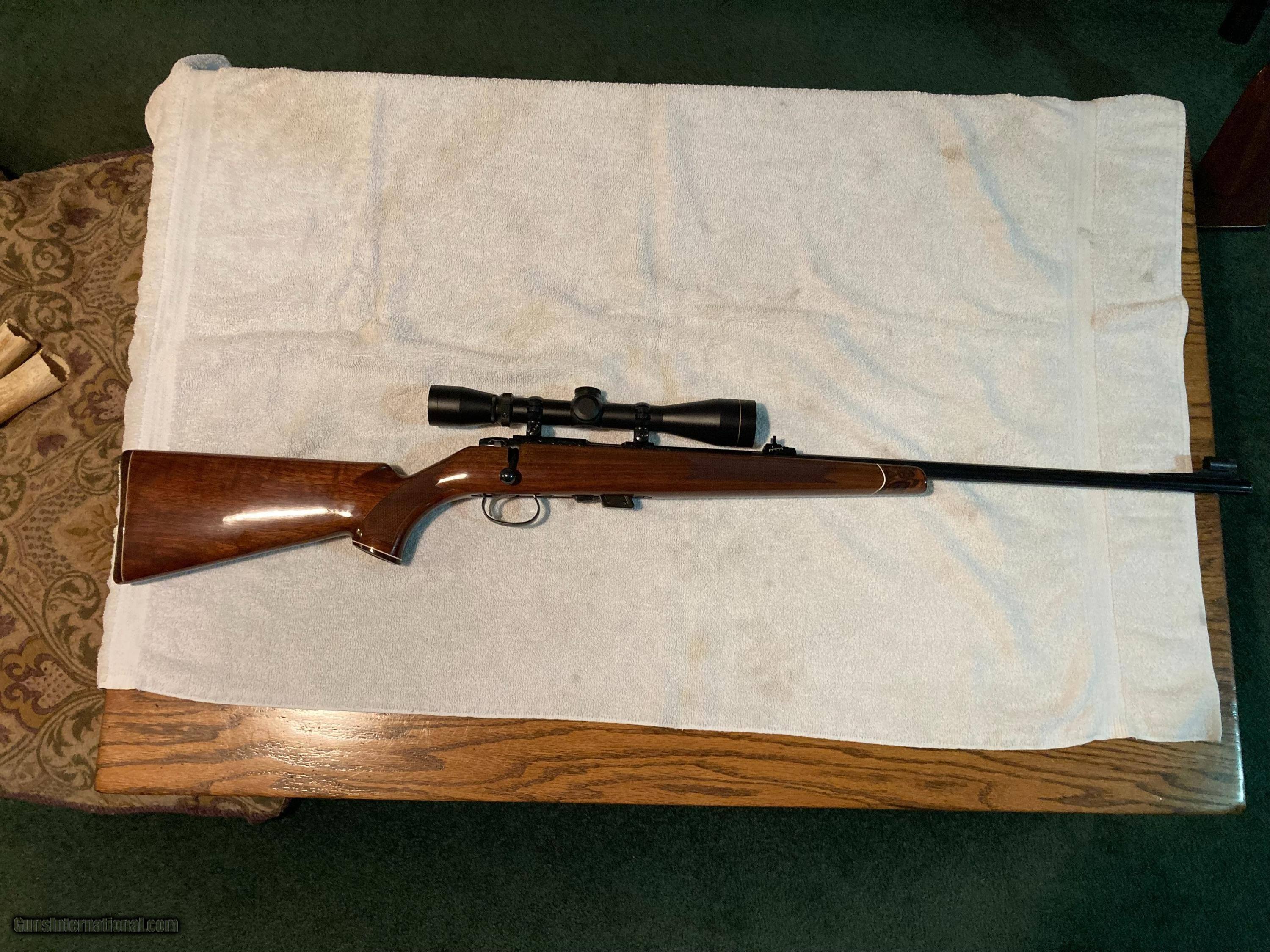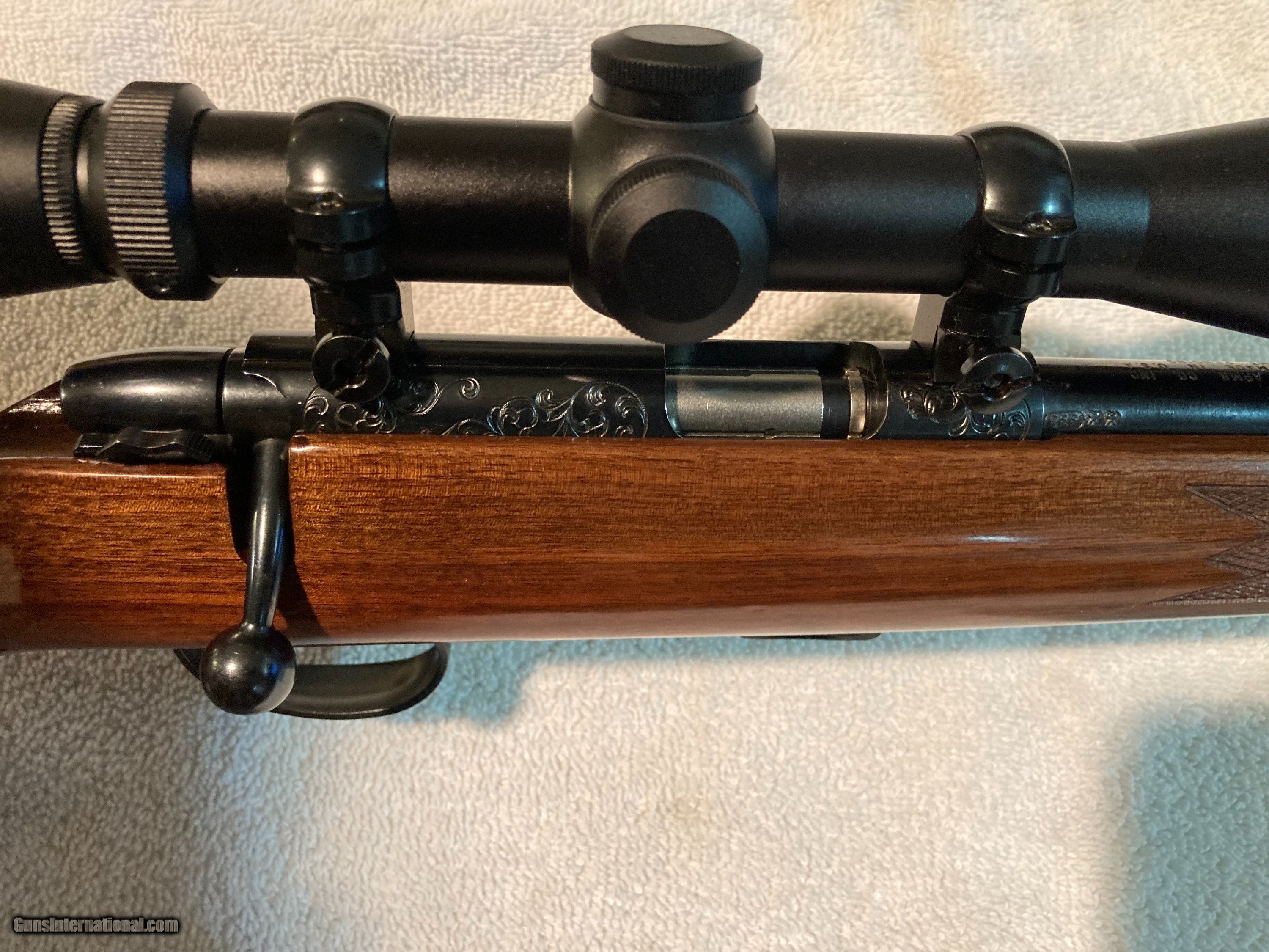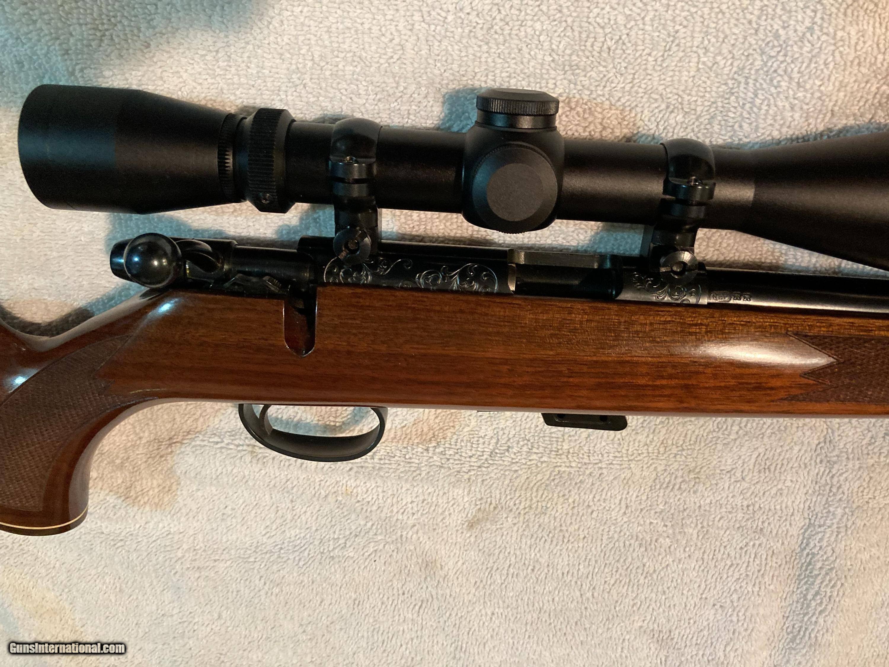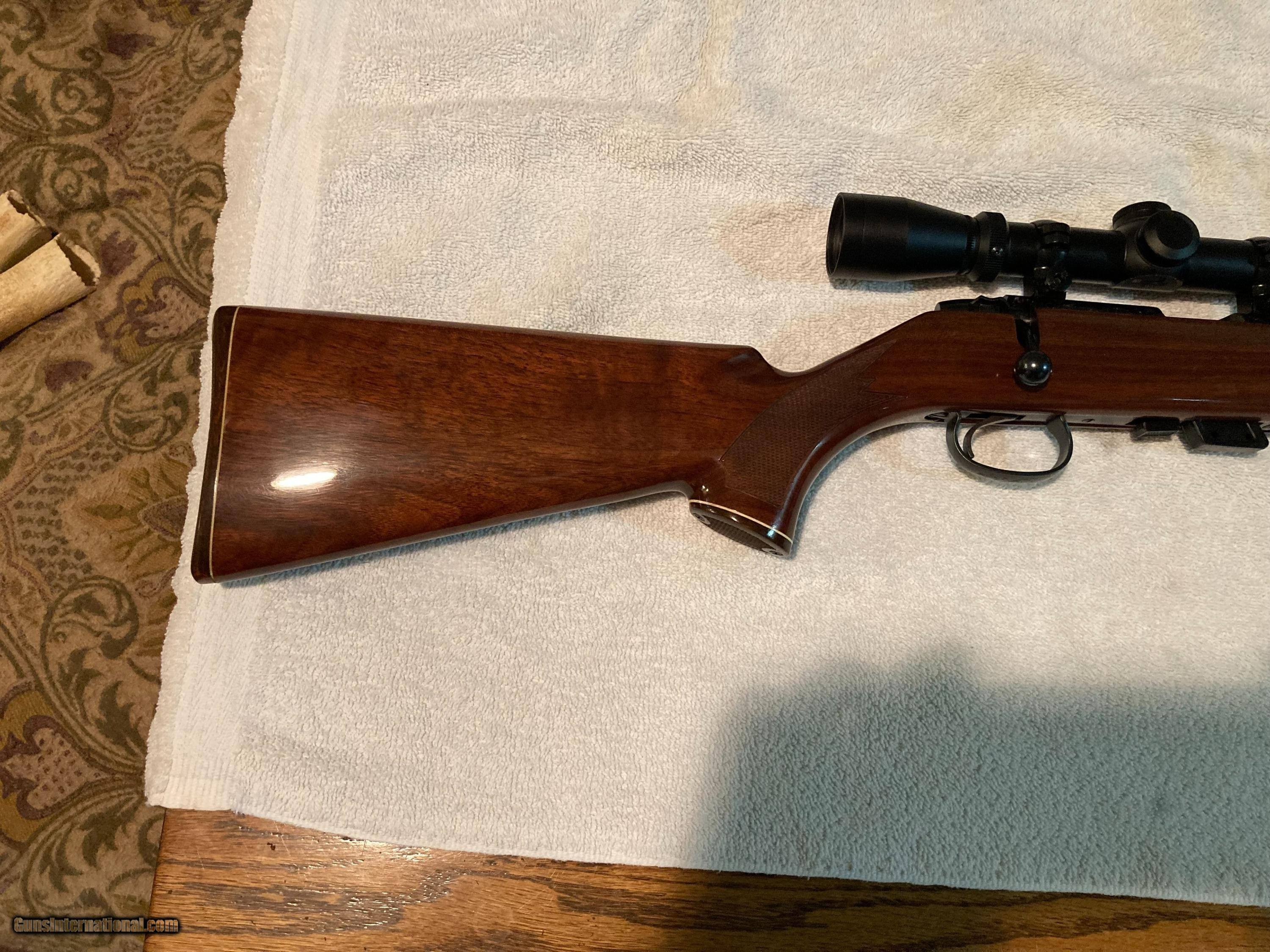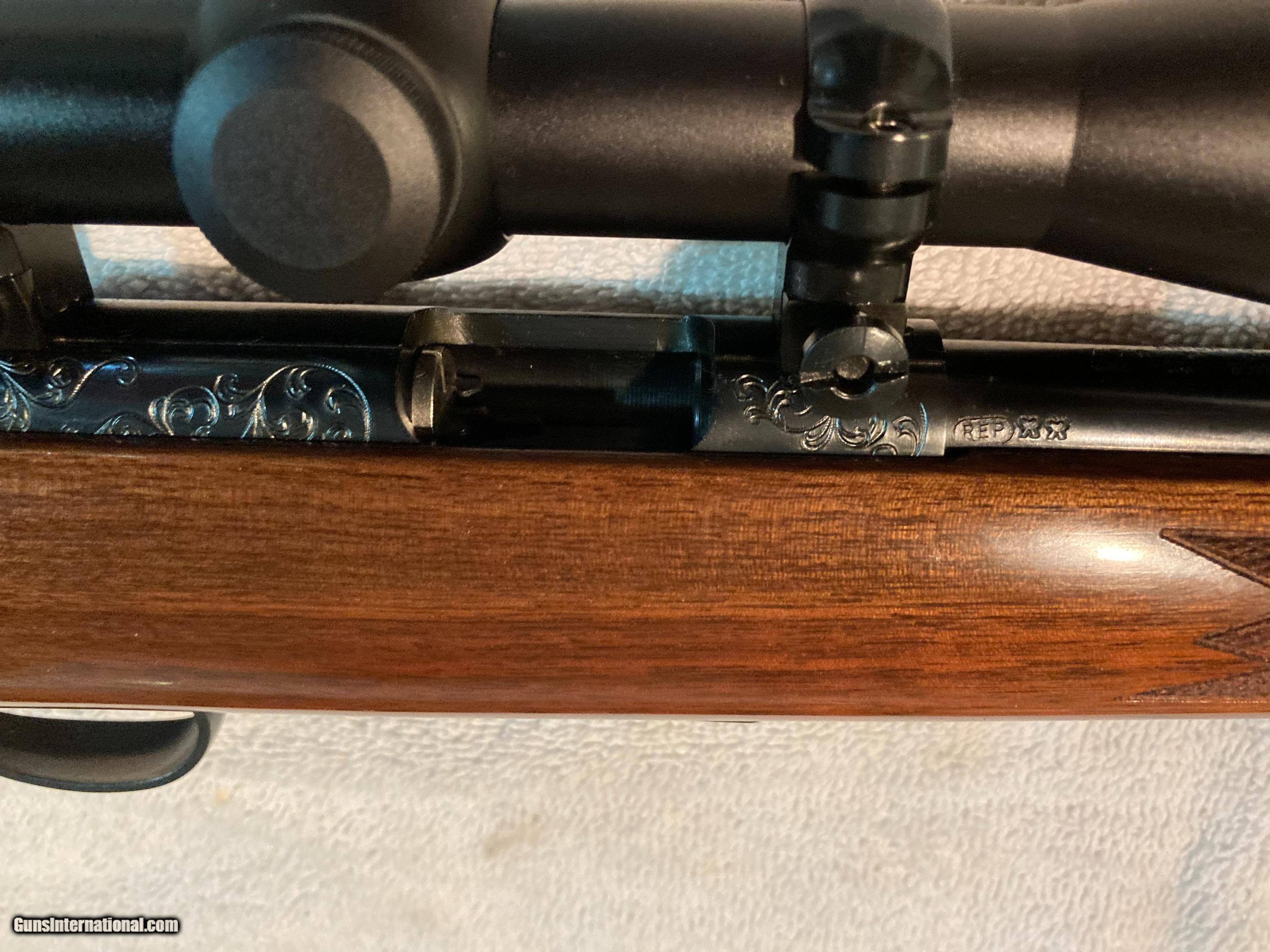 Description: REMINGTON 541 S 22 LONG RIFLE STRAIGHT OUT CUSTOM SHOP WITH ROSEWOOD FOREND, BUTT, ENGRAVING ON RECEIVER AND TRIGGER GUARD. LEUPOLD VARX 1 3X9 WITH BOX. SOLD Rifle Caliber: .22 Long Rifle Manufacturer: REMINGTON Model: 541 S Serial Number: A1038119 Barrel Length: 24 Condition: EXCELLENT Metal Condition: EXCELLENT Wood Condition: EXCELLENT |