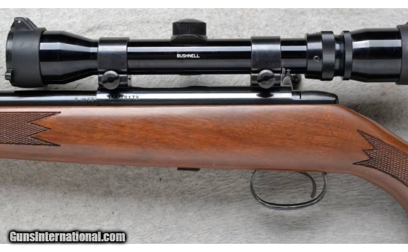 Description: This Remington Model 541-T is a right hand bolt action rifle in .22 Short, Long or Long Rifle Cal. It has a 24 inch barrel. It is outfitted with a Bushnell 3-9 Scope. The butt stock is a checkered grip walnut pistol grip with a checkered black cap. The forearm is a checkered grip walnut with a black tip. .22 Short/Long/Long Rifle SOLD Chambers: Detachable magazine. Metal Condition: Excellent. Wood Condition: Very Good. A few light handling marks. Bore Condition: Excellent. Barrels: 24 inch. Stock Dimensions: LOP 13 1/4 inches. Fore End: Checkered grip walnut with a black tip. Butt Pad: Checkered black plate. Weight: 6 Lb. 6 Oz. Sights: Bushnell 3-9 Scope. Item Location: Richfield, WI |