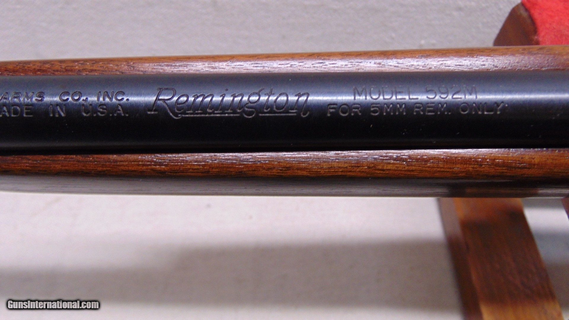Description: Remington 592M ,5MM Remington ,24" Barrel ,Original Sights and Butt Plate ,Tube Feed ,Near Mint ,99% Factory Blue ,97% Original Finish Wood with some Minor Nicks ,Excellent Bore ,Circa 1970 Store Hours Thursday and Friday 10:00 AM - 8:00 PM Saturday 9:00 AM - Noon Contact Information : Long Shot Gun Shop Inc 299 Hooflander Road Dornsife PA 17823 570-758-2262 longshotgunshopgmail No CA Sales Shipping 35.00 Rifle Caliber: 5mm Remington Magnum Manufacturer: Remington Model: 592M Serial Number: 1050560 Barrel Length: 24 Condition: Near Mint Metal Condition: 99% Wood Condition: 97% Bore Condition: Excellent LOP: 13 1/4 Manufacture Date: 1970 Price: $1,250.00 Contact Seller |