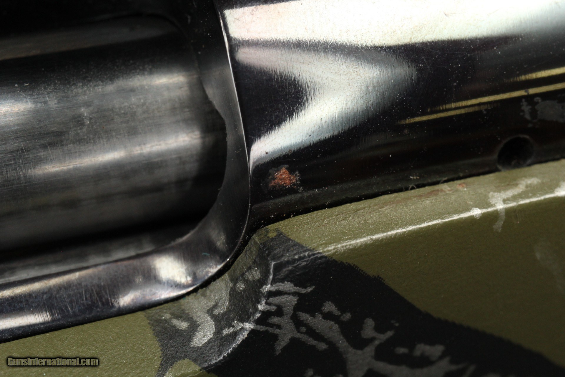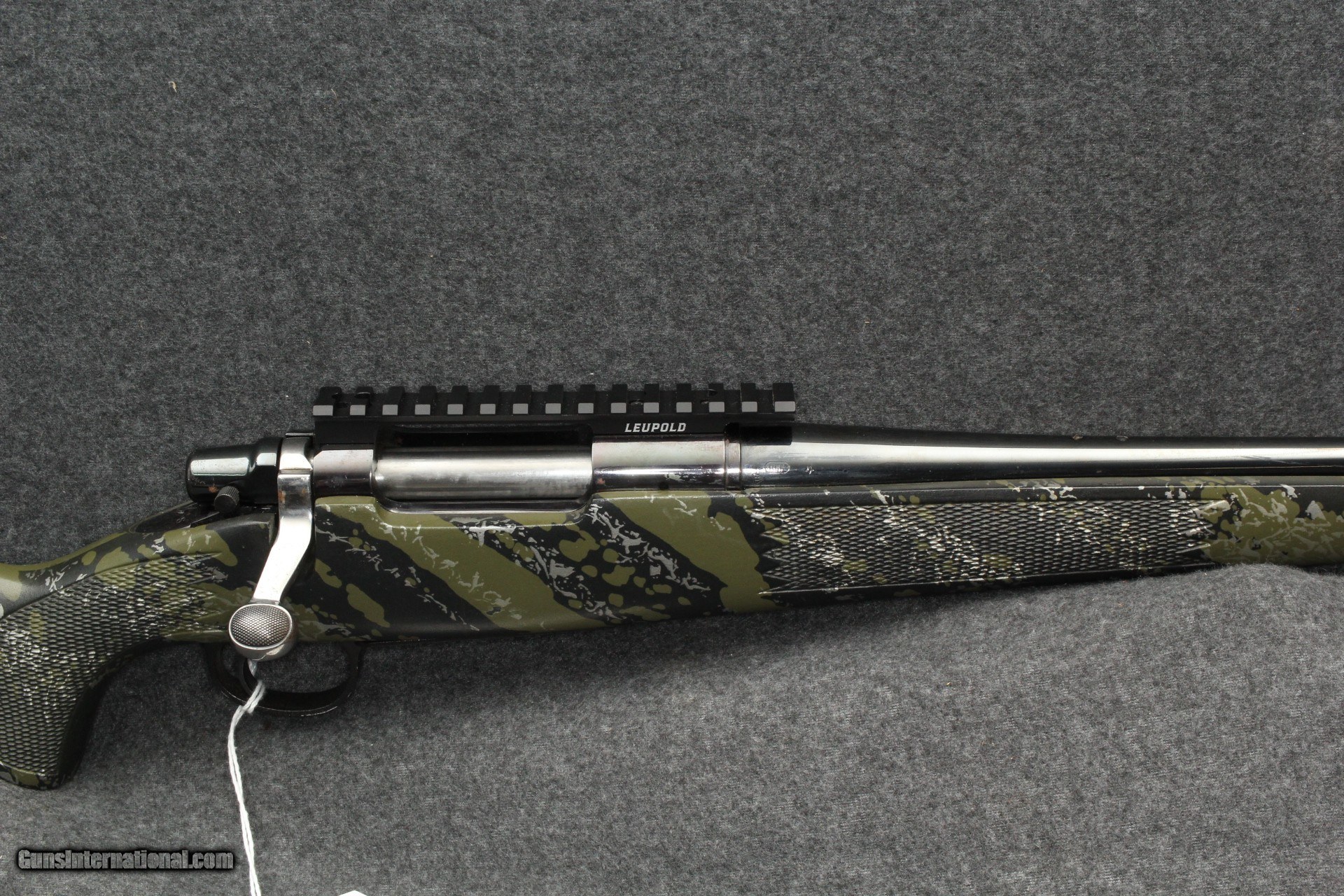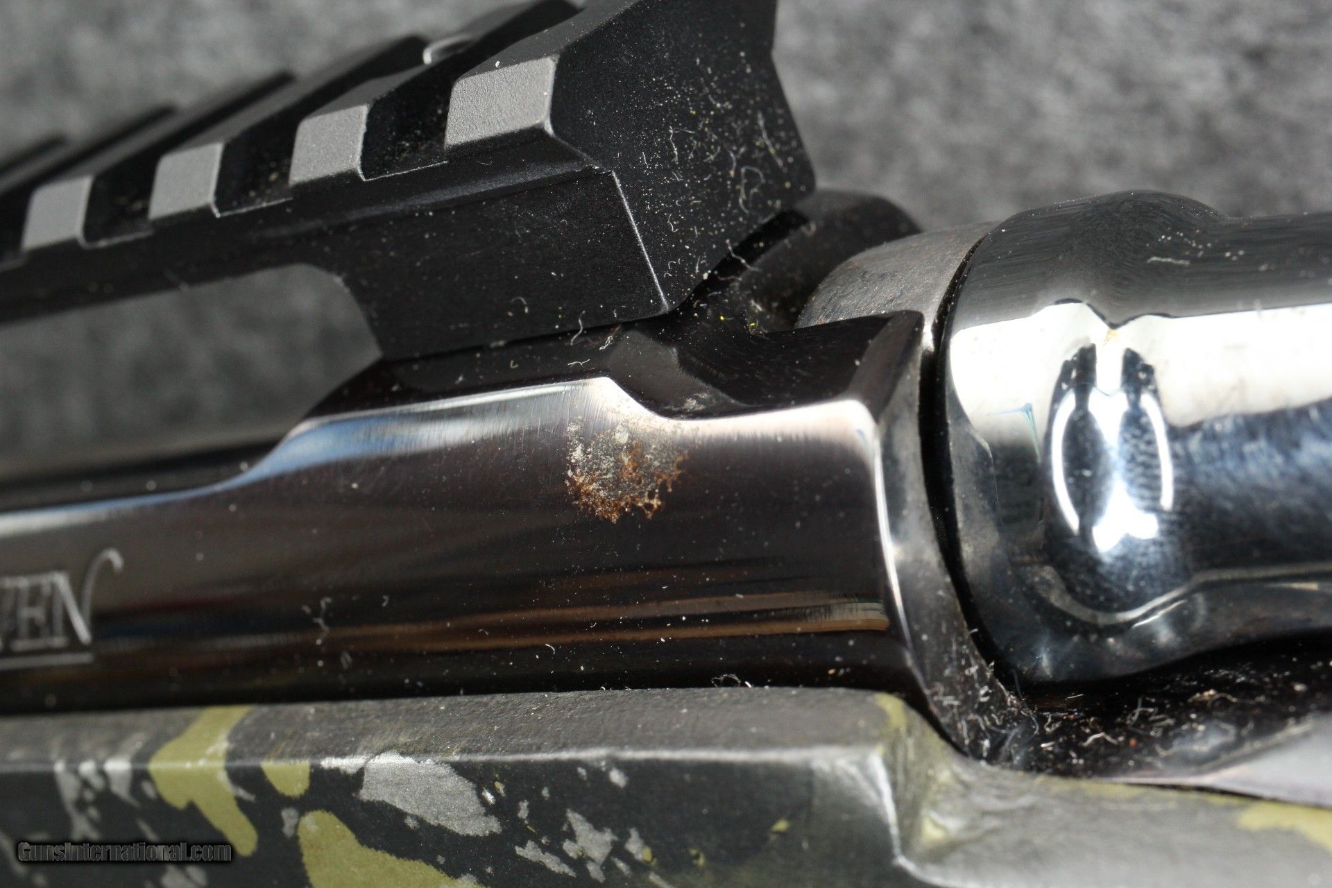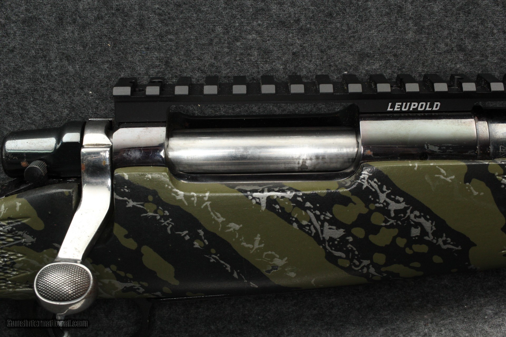 Description: 7mm-08, serial number 7749XXX. 18" barrel, Bell and Carlson camo streaked stock. Leupold scope base. Overall in very good condition. Shows normal wear/use. Metal shows small areas of rust (probably from improper storage), mostly on bolt and receiver. Trigger guard and floorplate shows areas of wear on sharp edges. No iron sights. Bore is excellent. More photos on request. Weighs 6.1lbs. Pleae add $55.00 for shipping and insurance. SOLD Rifle Caliber: 7mm-08 Remington |