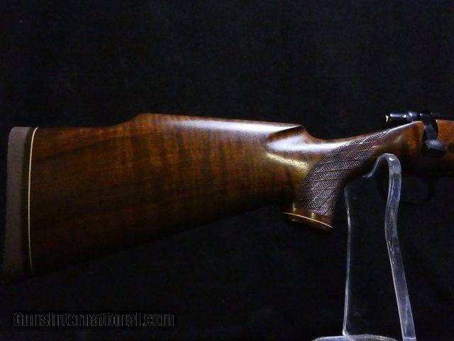 Description: Factory 'C' grade carbine. As new with pretty wood with lots of vertical striping. Rosewood forend tip and plug on crossbolt. All factory and correct with original box. Blue finish with a 20" bbl. Bolt action. 223 cal. SOLD Manufacturer: Remington Model: 700 'C' Grade Caliber Info: 223 Condition: As new Action: Bolt Finish: Blue |