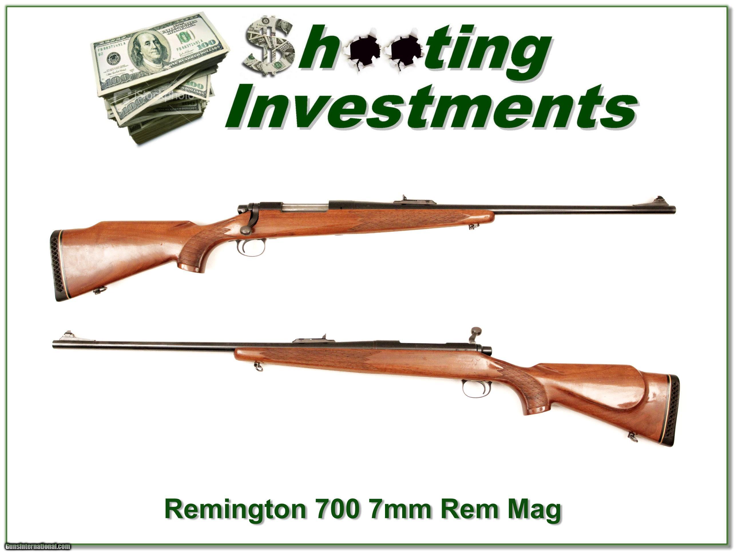 Description: This is an older Remington 700 in the hard hitting flat shooting 7mm Rem Mag. It has been used with some marks here and there as seen. It will make a classic hunting gun at a fraction of a new one. Shipping and insurance is $35 or $15 more if you want it shipped in a new Plano hard case. Please email me with any questions or larger pictures. (I now consign quality firearms only 10%! Let me know if you have any you would like to sell!) [16-0581] Payment: Payment is by Money Order, Cashiers Check or Personal Check. I can now also accept MasterCard and Visa with a 3% convenience fee. PayPal can be used for some items but never firearms. Please let us know if you would like to pay via PayPal. Shipping: The shipping charge will be listed in each description. It is $35 for most guns. Some heavy guns or those insured for over $2000 will be higher. Shipments to Alaska and Hawaii are higher because air shipment is required. Most firearms are shipped within 5 days of receipt of payment. We prefer shipping at the beginning of the week to avoid firearms in transit over weekends. We package all shipments carefully and insure them for the full purchase price, rounded up to the next $100. In the unlikely event that damage occurs, it is important that you save all packaging material for the claims process. Optics are shipped Priority Mail and most other non-firearm shipments are shipped First Class. Returns: Our return policy is simple. If for any reason you are not pleased with your purchase, you may return your item for a refund. The only exception is ammunition, it cannot be returned. It is important to us that you are happy. Guns cannot be fired or dissembled before returning them and must be returned in the same condition as received. Notification of a return must occur with-in 3 days of receipt at your dealer. Shipping, convenience and dealer fees are not refundable and are the responsibility of the buyer. Lay-a-way: If needed, we offer a 60 day lay-a-way option on most firearms. It is 1/3 now, 1/3 in 30 days and 1/3 in 60 days. Lay-a-way firearm sales are final. Consigning your firearms with Shooting Investments: We will help you get top dollar for your firearms. While most local guns shops charge 20% or more, our fee is only 10% with a minimum of $50. At your local gun shop it might take months to sell. Selling on-line provides instant access to thousands of interested buyers. You won’t find any other on-line dealer willing to sell your firearms for only 10% or listing every gun on 4 separate s. Selling through an House typically costs the seller 15% and the buyer an addition 15% (so 30%) and you have to wait several months to sell and longer to receive funds. If properly priced, we will sell your firearms in a week or two. Send us an email or give us a call and we’ll explain how easy it is for you to get top dollar. Trading: We collect guns and usually just trade for guns we want to add to our collections. We often sell guns for others wanting to purchase one of ours. We find this the most fair to both of us. Our Commission is only 10% and we hold the gun you want until yours sells. Please contact us if you want to sell one of yours to buy one of ours. Help for California Buyers: We are happy to ship to California. It is the buyer’s responsibility to make sure any item you buy is legal in your state. We are also happy to help with your purchase of a firearm from someone other than us. If you see a gun you would like to buy but the seller can’t or won’t ship to California we can help. You buy the gun and have it shipped to us. We’ll then ship it to your California dealer. The cost for this service is only $30 + shipping. Let me know if we can help! SOLD |