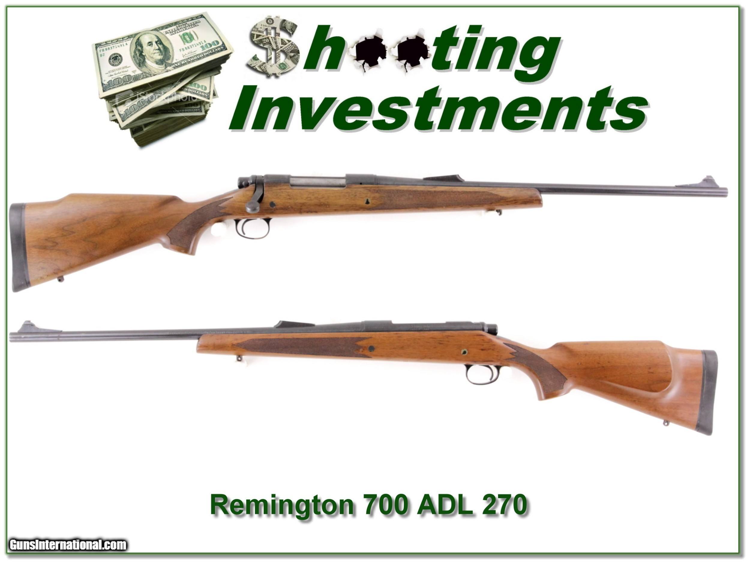Description: This is a Remington 700 ADL in 270 Winchester with a 22 in barrel. It has a few minor marks here and there from use. It will make a nice hunting gun. The rear sight blade was removed but not need if you want to mount a scope or you can find a replacement on ebay or from many guns parts dealers. I am selling this one on consignment and as such lay-a-way can’t be used. It does of course have the standard 3-day inspection. Shipping with insurance is $39. Please email me with any questions or larger pictures. (Consign your quality firearms with Shooting Investments for only 12%! Let me know if you have any you would like to sell!) 19-0359 Payment: Payment is by Money Order, Cashiers Check or Personal Check. I can now also accept MasterCard and Visa with a 3% convenience fee. PayPal can be used for some items but never firearms. Please let us know if you would like to pay via PayPal. Shipping: The shipping charge will be listed in each description. It is $39 for most long guns and $29 for most handguns. Some heavy guns or those insured for over $2000 will be higher. Shipments to Alaska and Hawaii are higher because air shipment is required. Most firearms are shipped on Tuesday and Thursday and usually in 5 days of receipt of payment. We package all shipments carefully and insure them. For long guns you can purchase a new Plano case for $19. They now cost us $22 when buying 100 at a time. Optics are shipped Priority Mail and most other non-firearm shipments are shipped First Class. Returns: Our return policy is simple. If for any reason you are not pleased with your purchase, you may return your item for a full refund of purchase price. Ammunition cannot be returned. It is important to us that you are happy. Guns cannot be fired or dissembled before returning them and they must be returned in the same condition as received. Notification of a return must occur with-in 3 days of receipt at your dealer. Shipping, convenience and dealer fees are not refundable and are the responsibility of the buyer. Lay-a-way: If needed, we offer a 60 day lay-a-way option on most firearms. It is 1/3 now, 1/3 in 30 days and 1/3 in 60 days. Lay-a-way firearm sales are final and if not completed the first payment cannot be returned. Consigning your firearms with Shooting Investments: We will help you get top dollar for your firearms. While most local guns shops charge 20% or more, our fee is only 12% with a minimum of $75. At your local gun shop it might take months to sell. Selling on-line provides instant access to thousands of interested buyers. You won’t find any other on-line dealer willing to sell your firearms for only 12% or listing every gun on 3 separate s. Selling through an House typically costs the seller 15% and the buyer an addition 15% (so 30%) and you have to wait several months to sell and longer to receive funds. If properly priced, we will sell your firearms in a few weeks. Send us an email or give us a call and we’ll explain how easy it is for you to get top dollar. Trading: Trading for use is really just buying your gun to re-sell. If you have a gun you want to trade, please email a picture and we will let you know what we can give or it. You will always get more if we sell it for you on consignment. Help for California Buyers: We are happy to ship to California. It is the buyer’s responsibility to make sure any item you buy is legal in your state. We are also happy to help with your purchase of a firearm from someone other than us. If you see a gun you would like to buy but the seller can’t or won’t ship to California they can ship to use and we’ll then ship it to your California dealer. The cost for this service is only $30 + shipping. Let us know if we can help! SOLD |