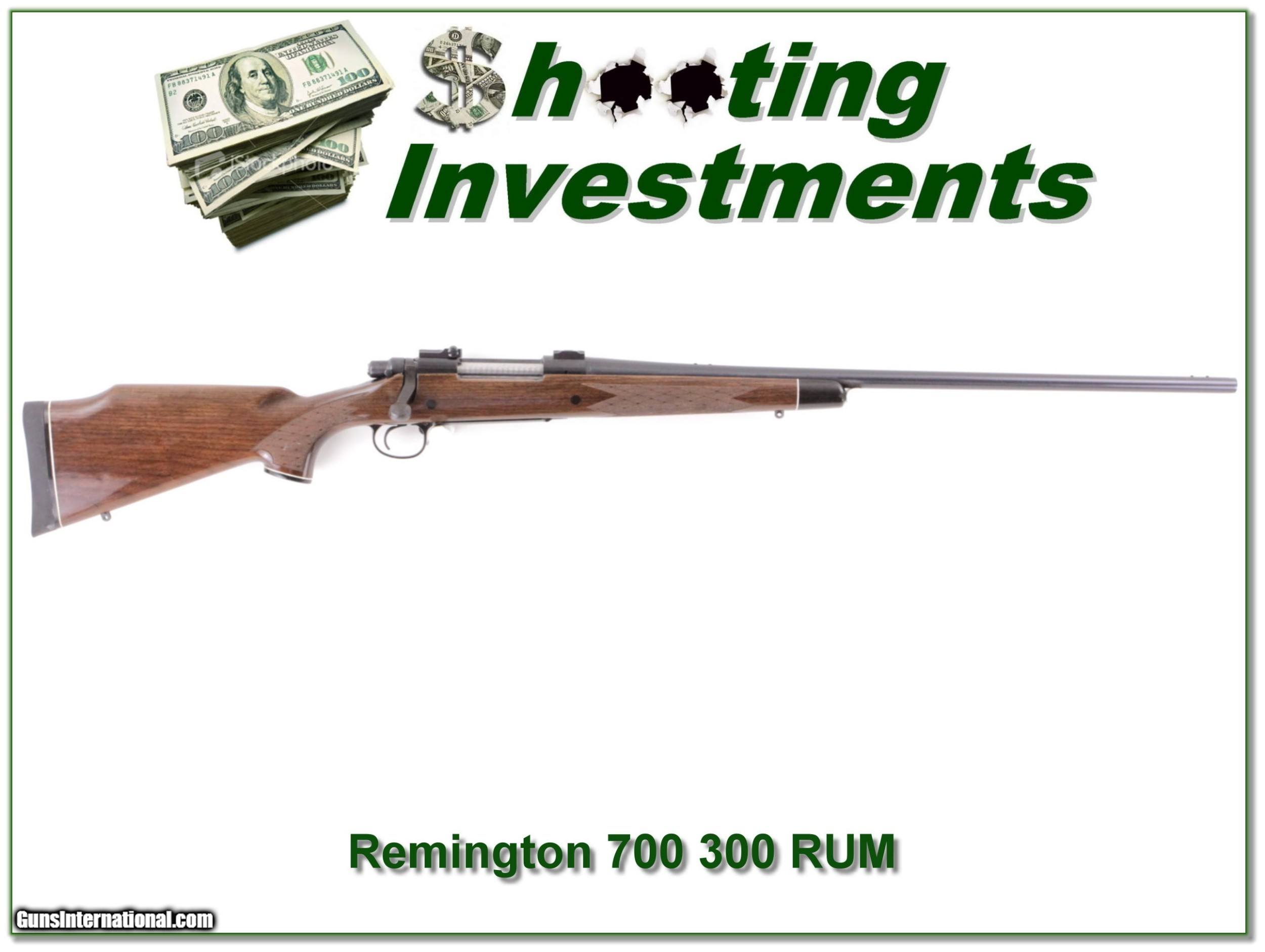 Description: This is a like new Remington 700 BDL in the hard-hitting flat shooting 300 RUM with a 26in barrel. Less than a box of rounds fired and it’s owner sighted it in and then never got to use it. I see no marks. It comes with the pictured leupold bases. Shipping with insurance is $39. Please email me with any questions or larger pictures. (Consign your quality firearms with Shooting Investments for only 12%! Let me know if you have any you would like to sell!) 18-1239 Payment: Payment is by Money Order, Cashiers Check or Personal Check. I can now also accept Credit Cards (MasterCard, Visa, Discover & American Express) with a 3% convenience fee. PayPal can be used for some items but never for firearms. Shipping: The shipping charge will be listed in each description. It is $39 for most firearms. Some heavy guns or those insured for over $2000 will be higher. Shipments to Alaska and Hawaii are higher because air shipment is required. Most firearms are shipped on Tuesday and Thursday and usually in 5 days of receipt of payment. We package all shipments carefully and insure them. Optics are shipped Priority Mail and most other non-firearm shipments are shipped First Class. Returns: Our return policy is simple. If for any reason you are not pleased with your purchase, you may return your item for a full refund of purchase price. Ammunition cannot be returned. It is important to us that you are happy. Guns cannot be fired or dissembled before returning them and they must be returned in the same condition as received. Notification of a return must occur with-in 3 days of receipt at your dealer. Shipping, convenience and dealer fees are not refundable and are the responsibility of the buyer. Lay-a-way: If needed, we offer a 60 day lay-a-way option on most firearms. It is 1/3 now, 1/3 in 30 days and 1/3 in 60 days. Lay-a-way firearm sales are final and if not completed the first payment cannot be returned. Consigning your firearms with Shooting Investments: We will help you get top dollar for your firearms. While most local guns shops charge 20% or more, our fee is only 12% with a minimum of $75. At your local gun shop it might take months to sell. Selling on-line provides instant access to thousands of interested buyers. You won’t find any other on-line dealer willing to sell your firearms for only 12% or listing every gun on 3 separate s. Selling through an House typically costs the seller 15% and the buyer an addition 15% (so 30%) and you have to wait several months to sell and longer to receive funds. If properly priced, we will sell your firearms in a few weeks. Send us an email or give us a call and we’ll explain how easy it is for you to get top dollar. Trading: Trading for use is really just buying your gun to re-sell. If you have a gun you want to trade, please email a picture and we will let you know what we can give or it. You will always get more if we sell it for you on consignment. Help for California Buyers: We are happy to ship to California. It is the buyer’s responsibility to make sure any item you buy is legal in your state. We are also happy to help with your purchase of a firearm from someone other than us. If you see a gun you would like to buy but the seller can’t or won’t ship to California they can ship to use and we’ll then ship it to your California dealer. The cost for this service is only $30 + shipping. Let us know if we can help! SOLD |