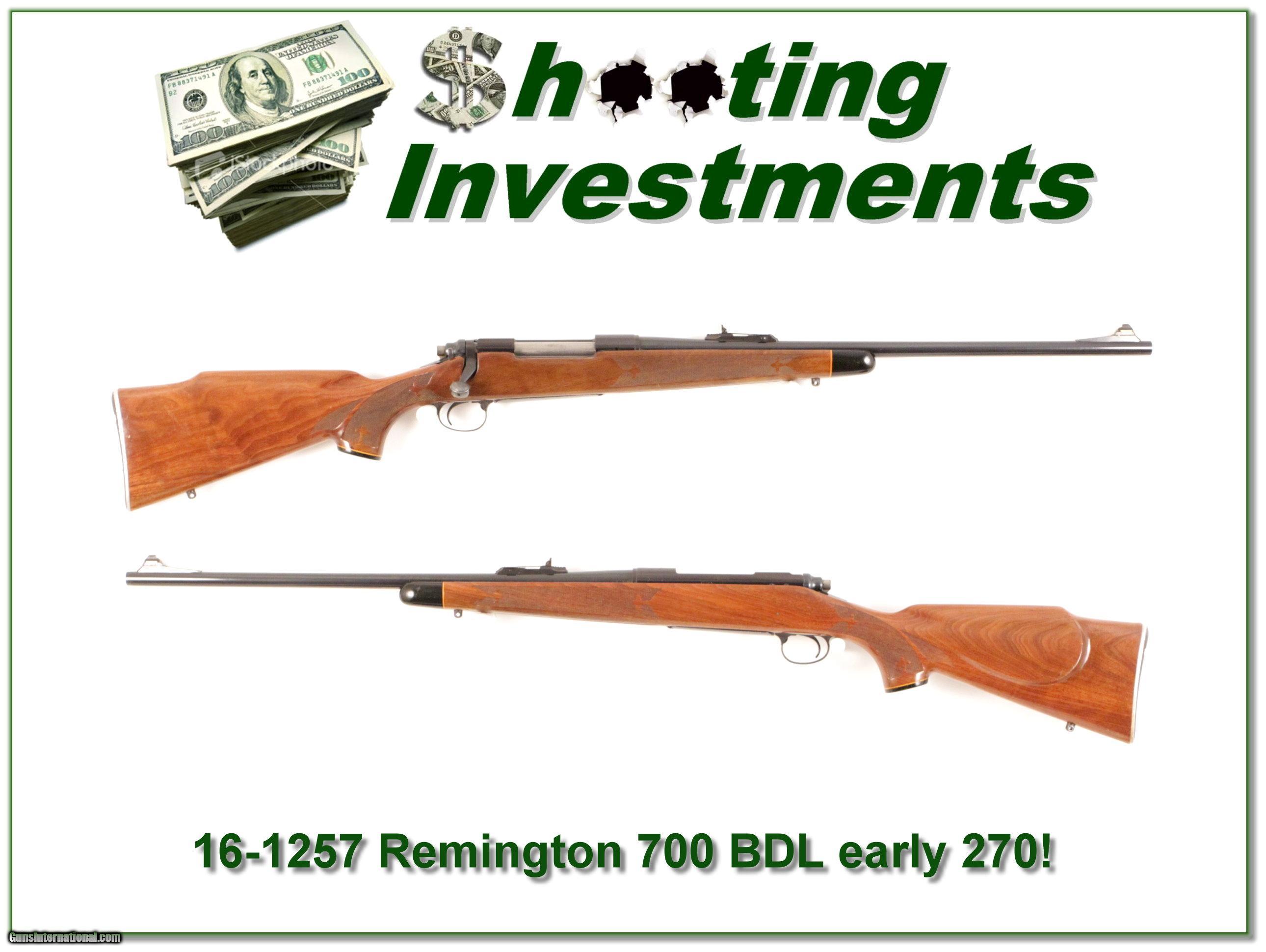 Description: This is an older Remington 700 BDL with Pressed Checkering and aluminum butt plate. It is a 270 Winchester. It has only light use with a few minor marks here and there. It will make a classic hunting gun and these older 700s are starting to go up in value. That makes them real Shooting Investments. Shipping and insurance is $35 or $15 more if you want it shipped in a new Plano hard case. Please email me with any questions or larger pictures. (I now consign quality firearms only 10%! Let me know if you have any you would like to sell!) [16-1257] Payment: Payment is by Money Order, Cashiers Check or Personal Check. I can now also accept MasterCard and Visa with a 3% convenience fee. PayPal can be used for some items but never firearms. Please let us know if you would like to pay via PayPal. Shipping: The shipping charge will be listed in each description. It is $35 for most guns. Some heavy guns or those insured for over $2000 will be higher. Shipments to Alaska and Hawaii are higher because air shipment is required. Most firearms are shipped within 5 days of receipt of payment. We prefer shipping at the beginning of the week to avoid firearms in transit over weekends. We package all shipments carefully and insure them for the full purchase price, rounded up to the next $100. In the unlikely event that damage occurs, it is important that you save all packaging material for the claims process. Optics are shipped Priority Mail and most other non-firearm shipments are shipped First Class. Returns: Our return policy is simple. If for any reason you are not pleased with your purchase, you may return your item for a refund. The only exception is ammunition, it cannot be returned. It is important to us that you are happy. Guns cannot be fired or dissembled before returning them and must be returned in the same condition as received. Notification of a return must occur with-in 3 days of receipt at your dealer. Shipping, convenience and dealer fees are not refundable and are the responsibility of the buyer. Lay-a-way: If needed, we offer a 60 day lay-a-way option on most firearms. It is 1/3 now, 1/3 in 30 days and 1/3 in 60 days. Lay-a-way firearm sales are final. Consigning your firearms with Shooting Investments: We will help you get top dollar for your firearms. While most local guns shops charge 20% or more, our fee is only 10% with a minimum of $50. At your local gun shop it might take months to sell. Selling on-line provides instant access to thousands of interested buyers. You won’t find any other on-line dealer willing to sell your firearms for only 10% or listing every gun on 4 separate s. Selling through an House typically costs the seller 15% and the buyer an addition 15% (so 30%) and you have to wait several months to sell and longer to receive funds. If properly priced, we will sell your firearms in a week or two. Send us an email or give us a call and we’ll explain how easy it is for you to get top dollar. Trading: We collect guns and usually just trade for guns we want to add to our collections. We often sell guns for others wanting to purchase one of ours. We find this the most fair to both of us. Our Commission is only 10% and we hold the gun you want until yours sells. Please contact us if you want to sell one of yours to buy one of ours. Help for California Buyers: We are happy to ship to California. It is the buyer’s responsibility to make sure any item you buy is legal in your state. We are also happy to help with your purchase of a firearm from someone other than us. If you see a gun you would like to buy but the seller can’t or won’t ship to California we can help. You buy the gun and have it shipped to us. We’ll then ship it to your California dealer. The cost for this service is only $30 + shipping. Let me know if we can help! SOLD |