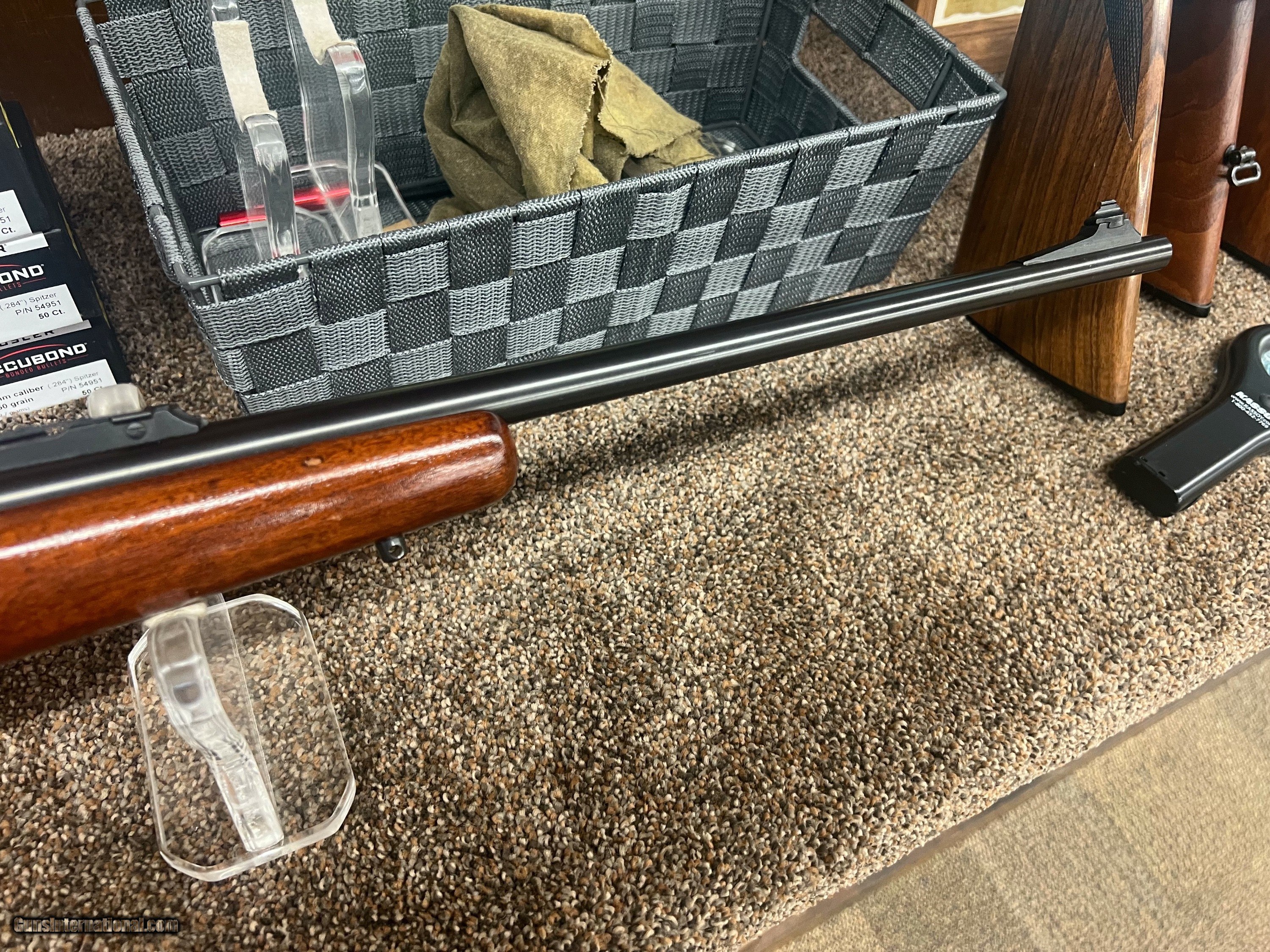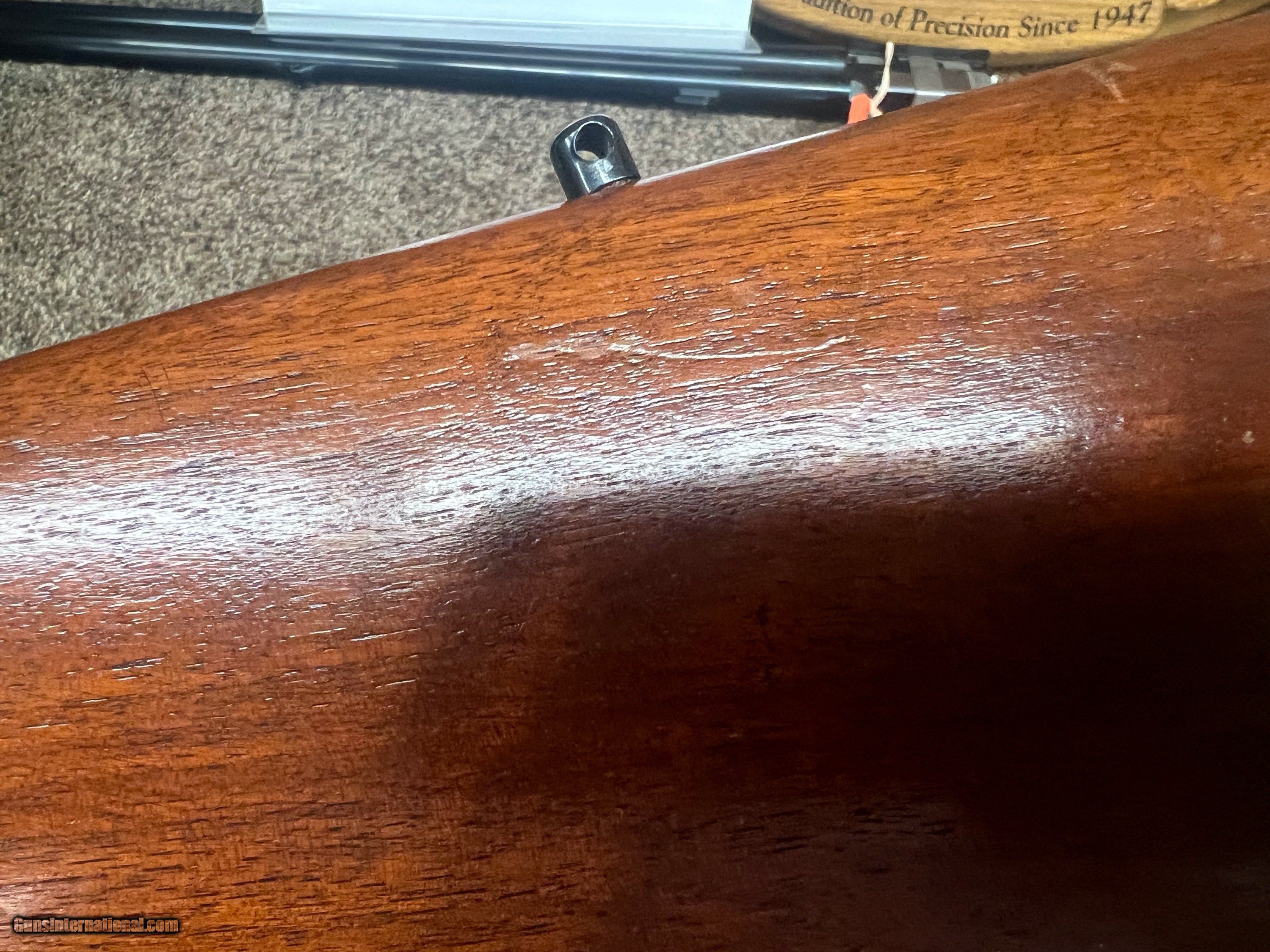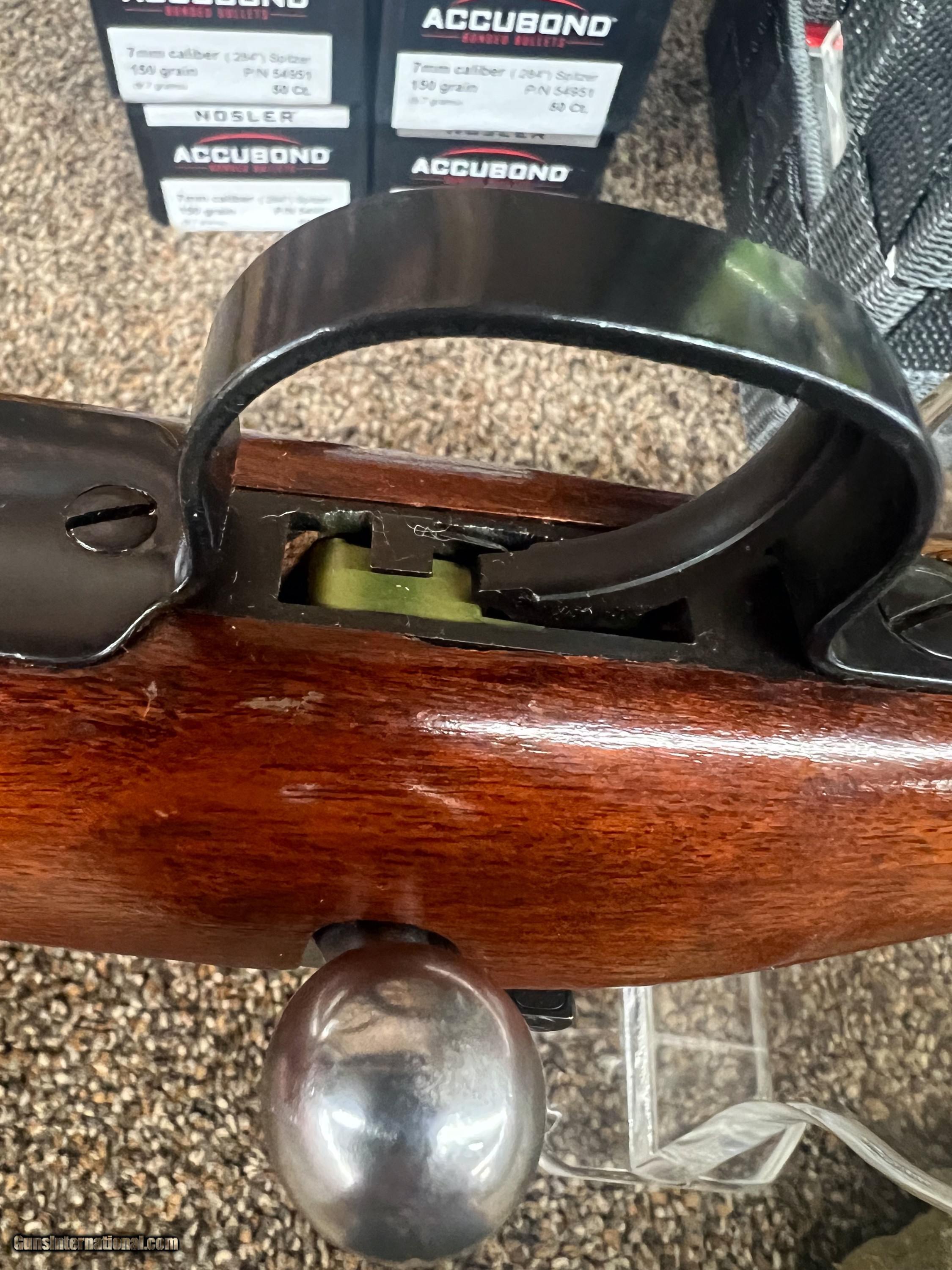Description: Here's a nice hard to find Remington 721 280 Rem, exc bore, 22" barrel, no barrel boss, open sights, straight comb, alum butt, has swivel studs, does have a replacement trigger, a few light marks rest of rifle 97%+ condition. Some freckling on the floorplate as well. 60.00 shipping, 2.99% credit card fee, PA residents add 6% sales tax. SOLD Rifle Caliber: .280 Remington |