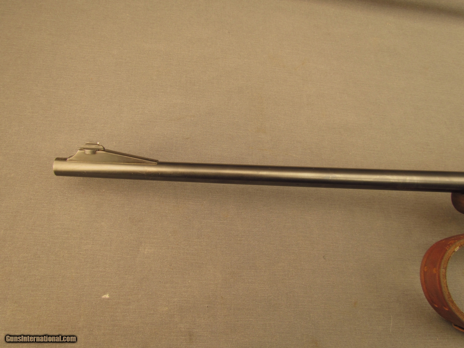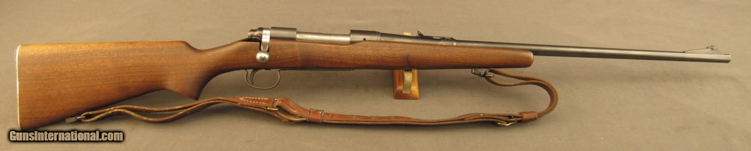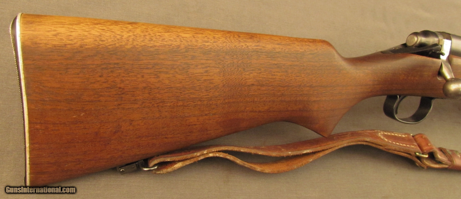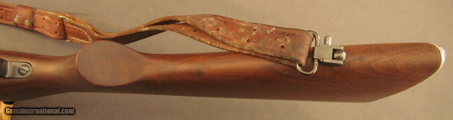 Description: S# 263615, 30-06 SPRG., 24 inch barrel, bright excellent bore. This September 1952 built rifle remains in excellent condition with 95% blue on metal surfaces showing high edge wear and very few marks. The stock has been refinished with a natural oil and looks gret with very few makrs. An old leather sling is held by quick release swivels. Barrel wears original sights and receiver top is factory drilled and tapped for scope mounts. A classic Remington bolt rifle ready for the November woods. FFL or C+R SOLD Curio/Relic: Yes Manufacturer: Remington Model: 721 Serial Number: 263615 Caliber Info: .30-06 Gauge Info: .30-06 |