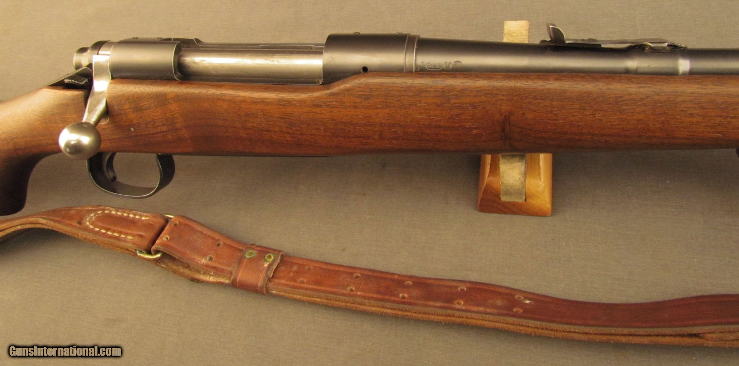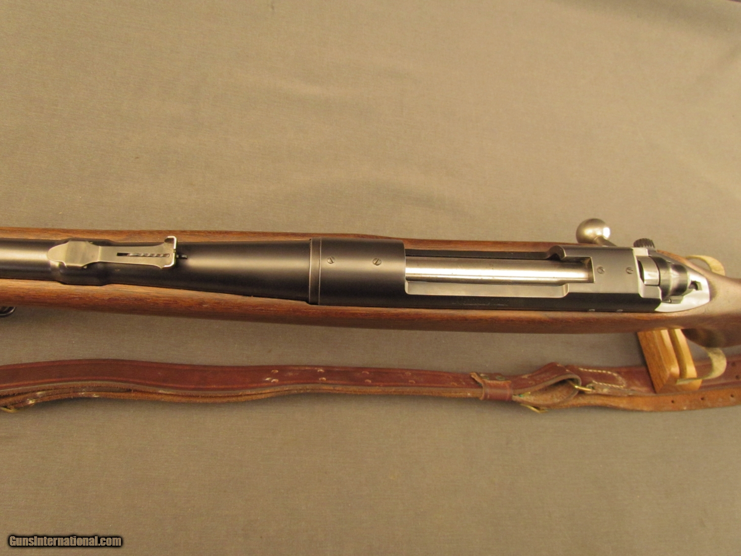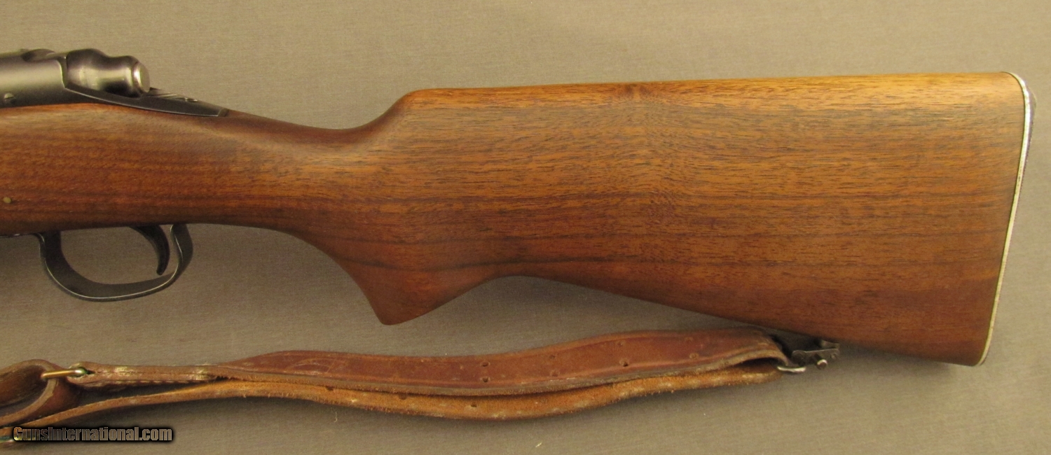 Description: S# 263615, 30-06 SPRG., 24 inch barrel, bright excellent bore. This September 1952 built rifle remains in excellent condition with 95% blue on metal surfaces showing high edge wear and very few marks. The stock has been refinished with a natural oil and looks gret with very few makrs. An old leather sling is held by quick release swivels. Barrel wears original sights and receiver top is factory drilled and tapped for scope mounts. A classic Remington bolt rifle ready for the November woods. FFL or C+R SOLD Curio/Relic: Yes Manufacturer: Remington Model: 721 Serial Number: 263615 Caliber Info: .30-06 Gauge Info: .30-06 |