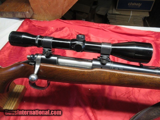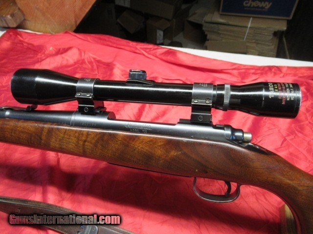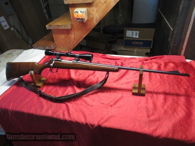 Description: Has a muzzle brake installed, 90-95% Blue and Varnish, 13 5/8" Lop to Pad, Good Bore, Comes with older tasco scope with fine cross hairs with dot in middle, and sling, buyer pays 50.00 shipping Pa residents add 6% sales tax, Price is for check or money order, Cc add 3% SOLD |
