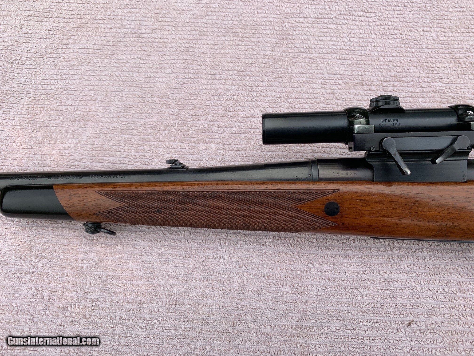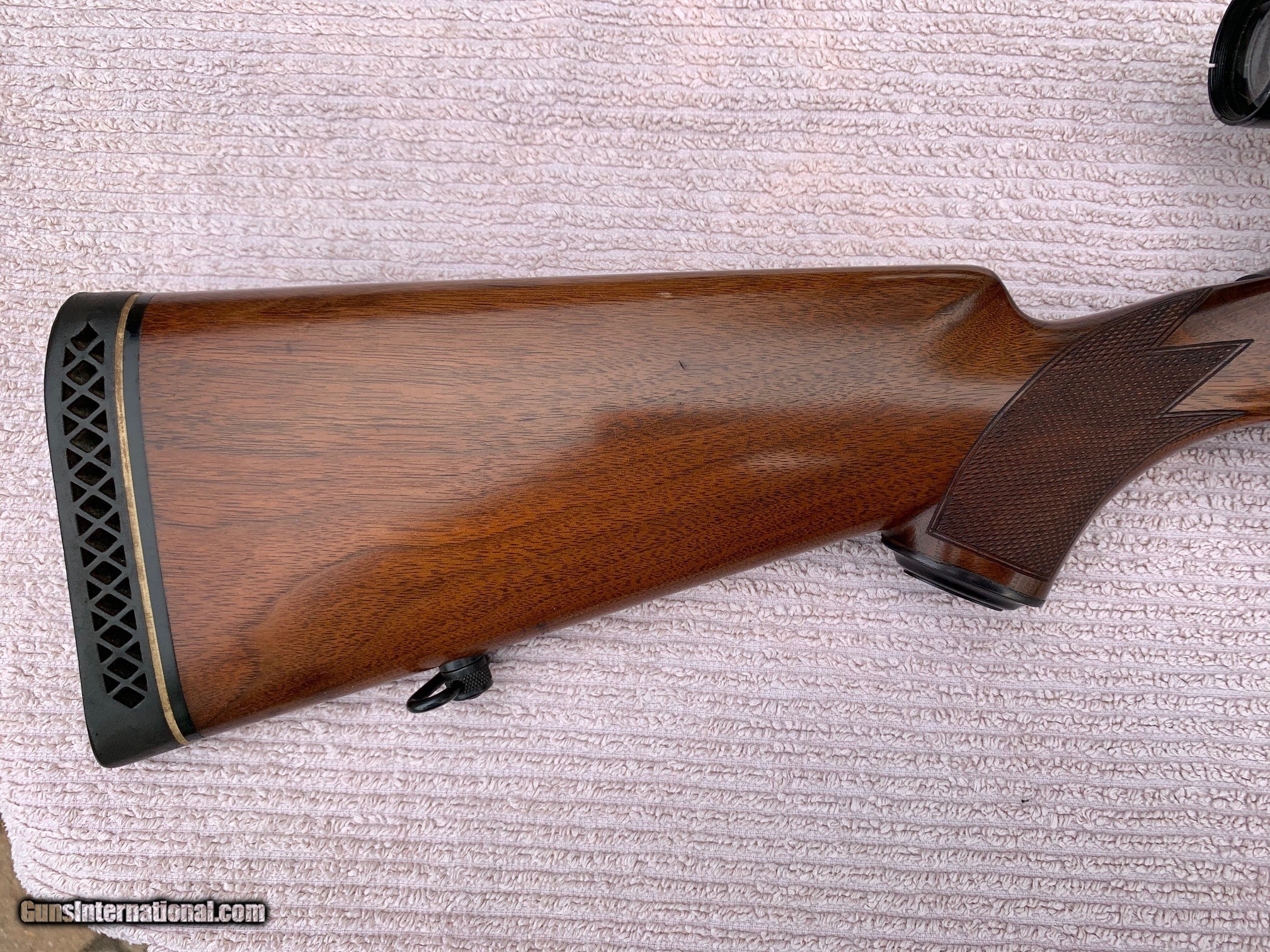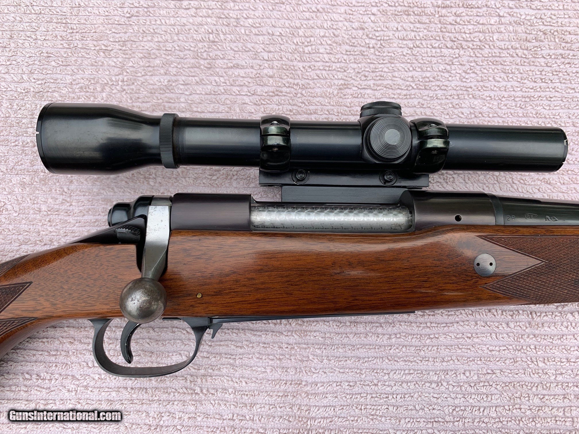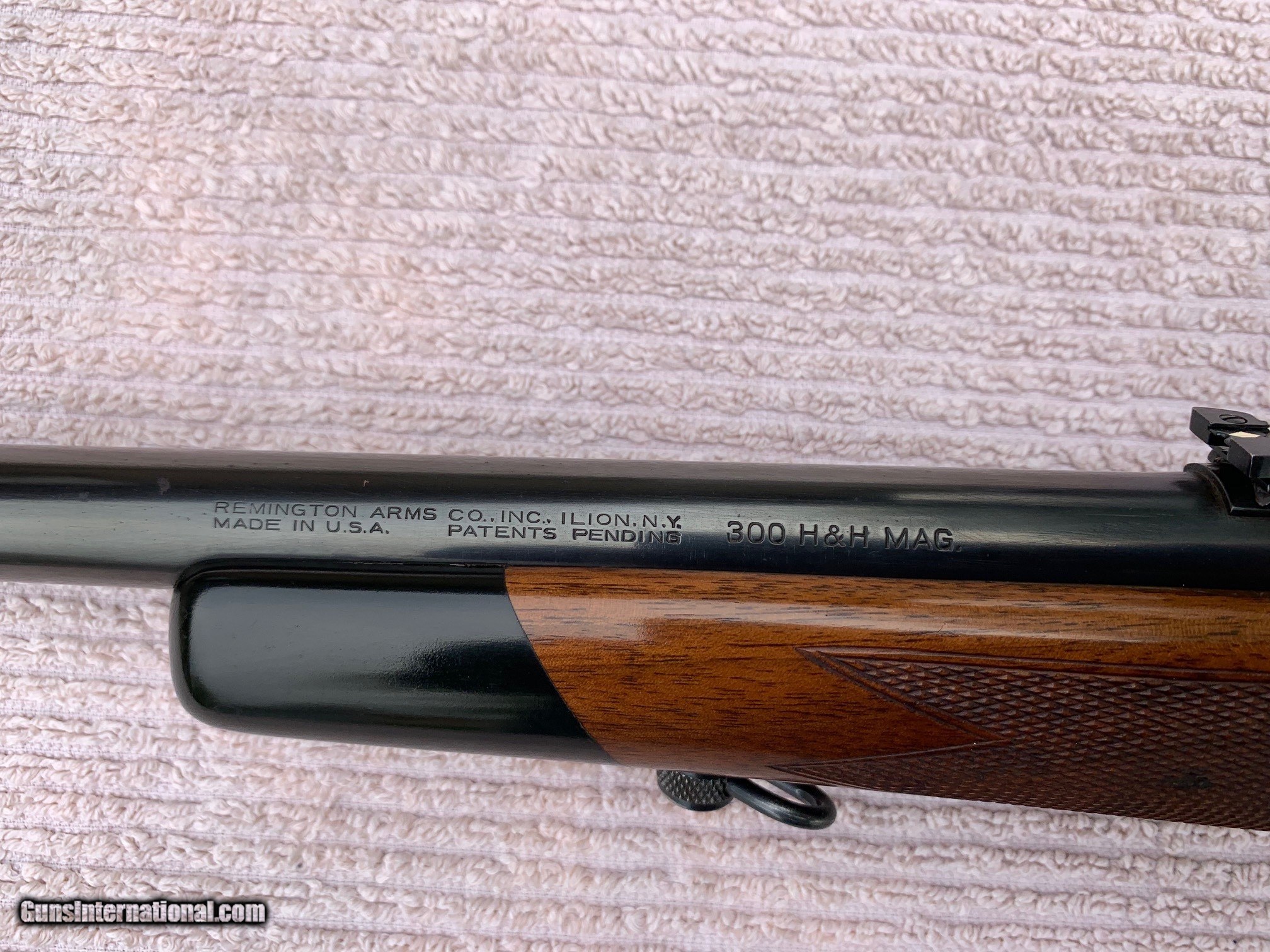 Description: Here is a semi-custom Remington Model 721 300H&H. Unmarked as to who did the work, however very nicely executed. Nicely checkerd stock with ebony fortearm tip, pistol grip cap, push button release sling swivels. Lyman 3X scope in a Griffin and Howe scope mount. Also converted to a detachable floor plate. Price includes shipping. SOLD |