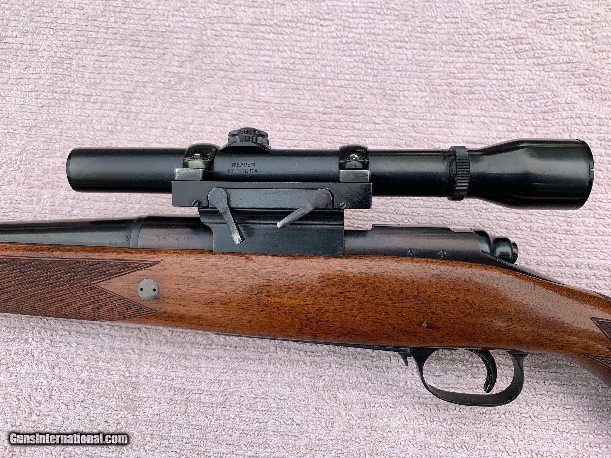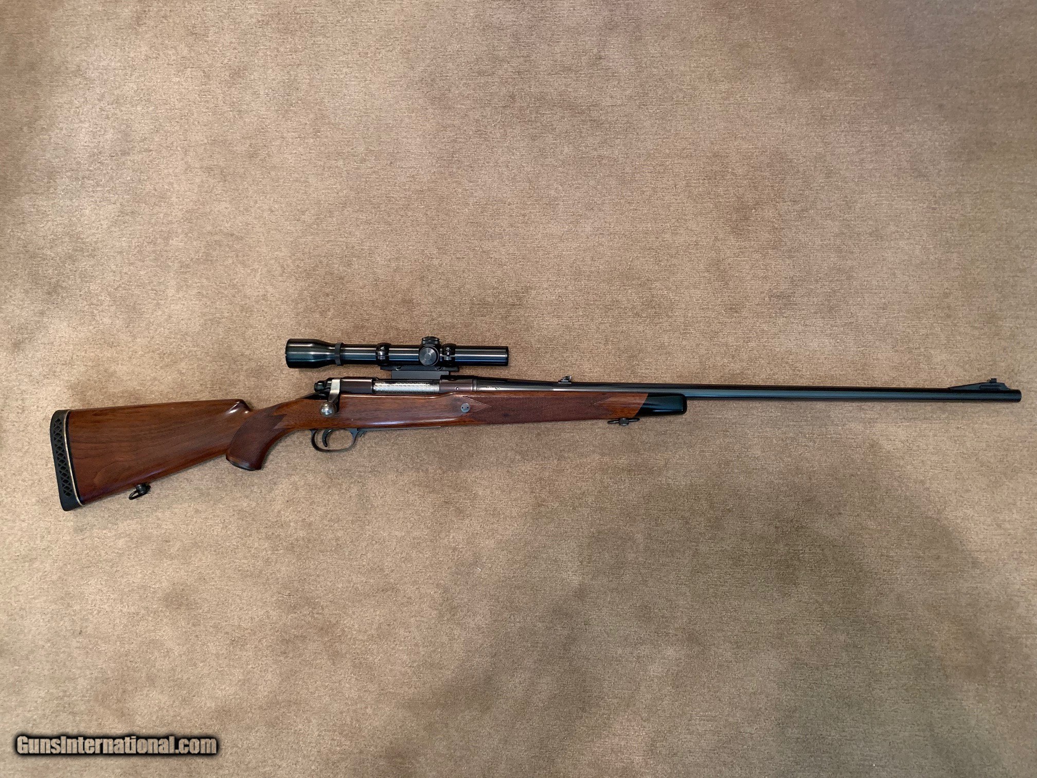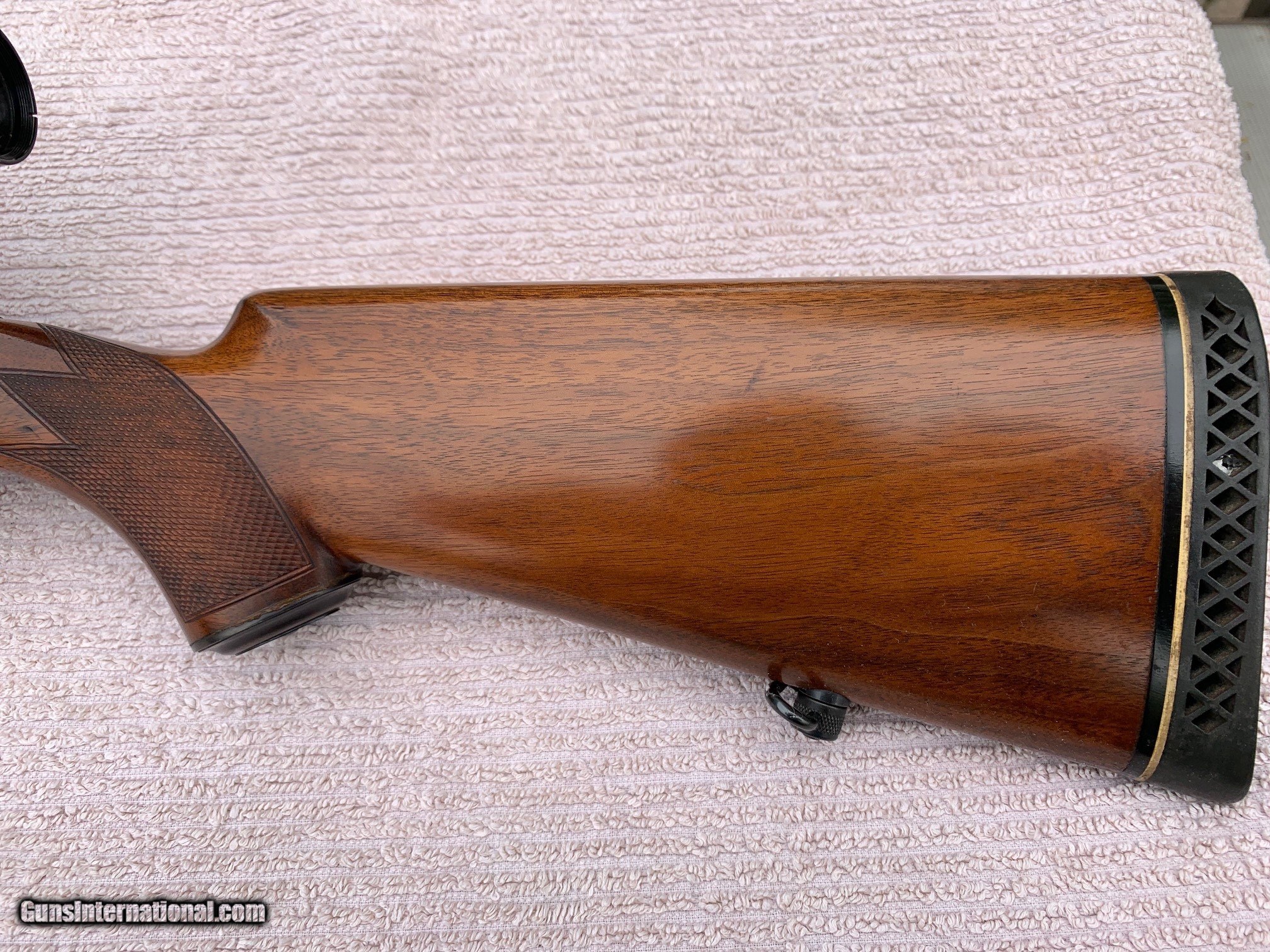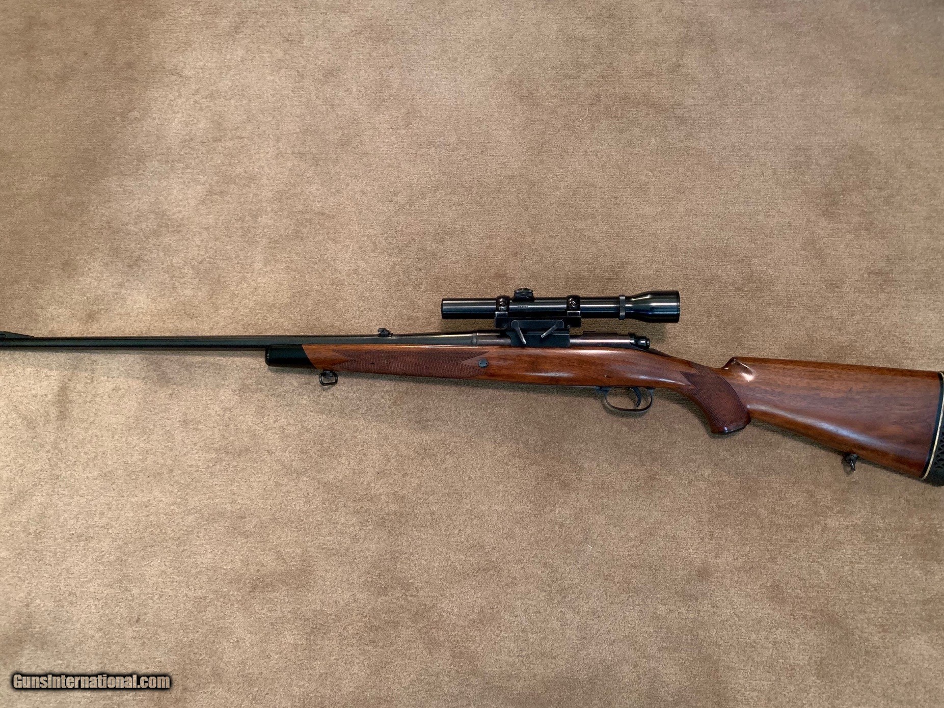 Description: Here is a semi-custom Remington Model 721 300H&H. Unmarked as to who did the work, however very nicely executed. Nicely checkerd stock with ebony fortearm tip, pistol grip cap, push button release sling swivels. Lyman 3X scope in a Griffin and Howe scope mount. Also converted to a detachable floor plate. Price includes shipping. SOLD |