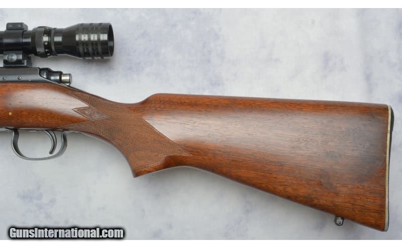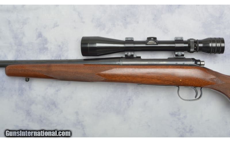 Description: Remington model 722 chambered in .222 Rem Mag. Redfield Bear Cub 3-9X40 Scope, rear sight is not present. This piece dates to 1958. .222 Remington Magnum SOLD Chambers: .222 Rem Mag Metal Condition: Good Wood Condition: Good Bore Condition: Very Good Barrels: 24" Blued Sights: Redfield Bear Cub 3-9X40 Item Location: Green Bay |