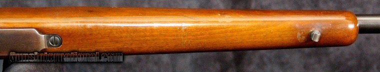 Description: .244 Rem, #376328, 22 inch barrel (believe it to have been shortened), blue finish, walnut stock, no sights, scope mounts, sling eyes, late 1950's. Condition: excellent bore, 95% blue overall, excellent wood with use dings, excellent mechanically, excellent marks. SOLD Curio/Relic: Yes |