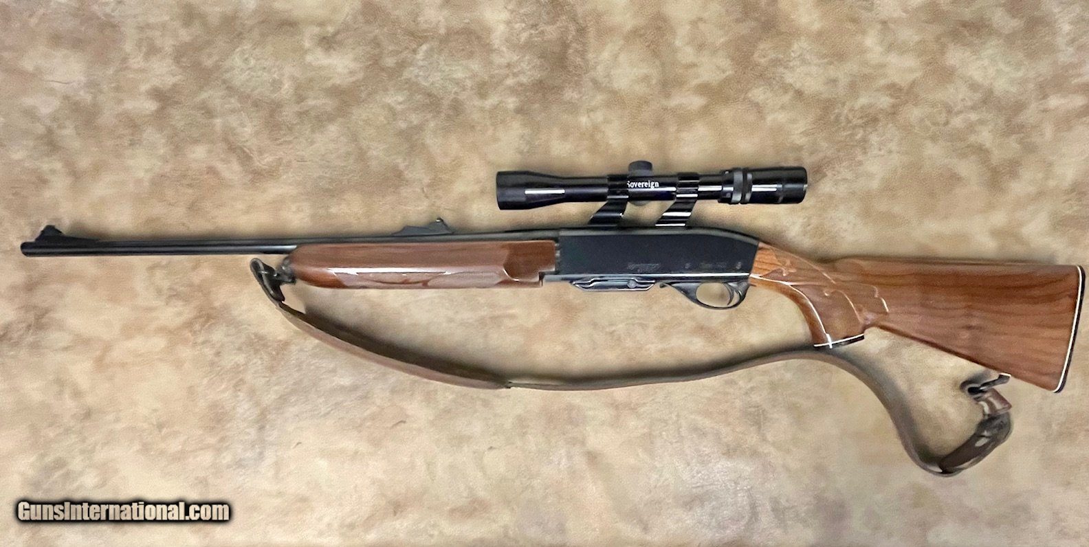 Description: Guns Listing ID: 1267717 REMINGTON MODEL 7400 .270 Win.(mfg. 1981-83), gas operated semi-automatic rifle, 22 in. barrel, 4 shot detachable mag., pressed checkered Monte Carlo walnut stock, leather sling, iron sights and Sovereign 3-9x scope with see-through rings for iron sights, no box. The handguard is cracked and loose. SOLD Manufacturer: REMINGTON Model: 7400 Caliber Info: .270 WIN Condition: Used - Non-Certified Barrels: 22 BARREL Finish: BLUED |