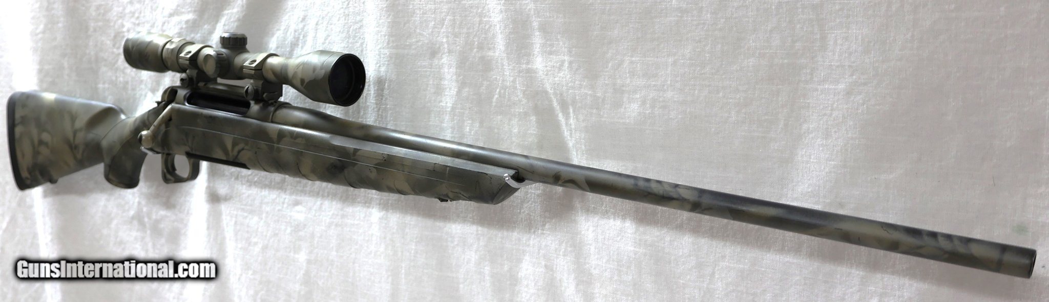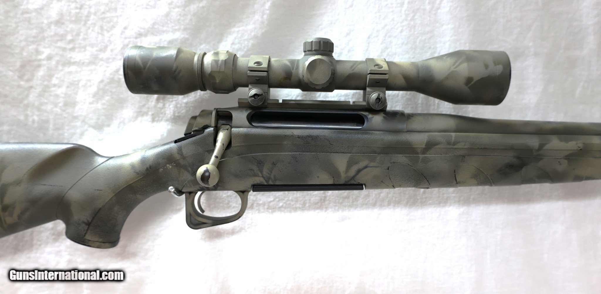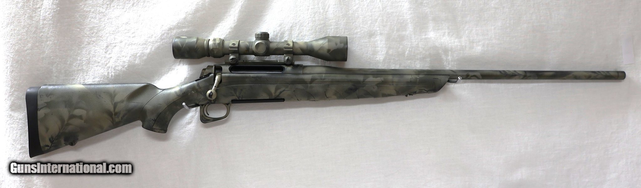 Description: Guns Listing ID: 1370936 This was a black synthetic stock Remington model 770. Currently it is a camo stock, it has been painted and not professionally. It looks like someone was doing a DIY project. Overall, the paint job is pretty good but worn off in spots and obviously not professional. This rifle is chambered in 300 win. mag and does have a Bushnell 3-9x40 scope on it. .300 Win. Mag., matte black metal finish, Picatinny rail, 3 or 4 shot detachable mag., black synthetic stock with raised cheekpiece, includes factory mounted and bore sighted 3-9x40mm Bushnell scope, 24 in. barrel, Model 700 based action with 60 degree bolt lift, \"R\" on pistol grip cap, 8 1/2 lbs. Mfg. in Mayfield, KY 2007-2014. If you‚‚re looking for a very reasonably price 300 win mag - this might be the one for you SOLD Manufacturer: REMINGTON Model: 770 Caliber Info: .300 WIN MAG Condition: Used - Non-Certified Barrels: 24 BARREL Finish: CAMO |