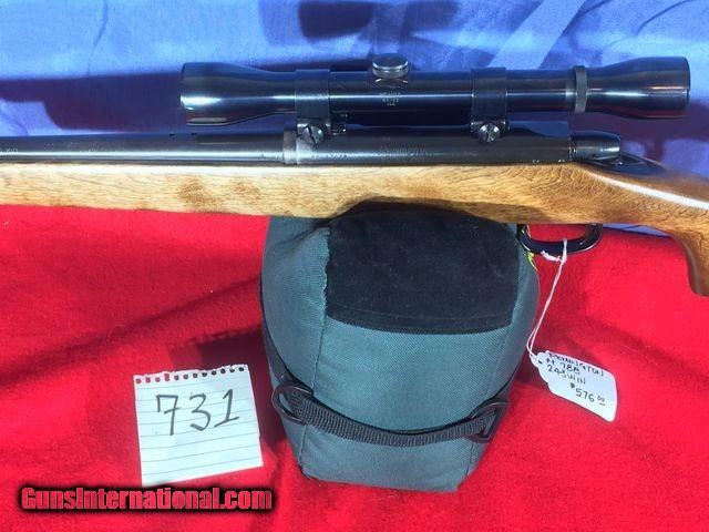 Description: FOR SALE IS A REMINGTON 788 BOLT ACTION RIFLE IN 243 WINCHESTER CALIBER. THE RIFLE FEATURES A 22 IN BARREL AND 4 SHOT DETACHABLE MAGAZINE. THE RIFLE IS IN FUNCTIONAL MECHANICAL CONDITION WITH A BRIGHT CLEAN BORE, AND A CRISP TRIGGER. SERIAL NUMBER-A6117429, WAS MANUFACTURED IN 1978. A VINTAGE WEAVER 4 X SCOPE IN WEAVERMOUNTS/RINGS IS IN PLACE. THIS I VERY NICE CLASSIC REMINGTON RIFLE. PRICE $600.00. SHIPPING/INSURANCE-$50.00. MONEY ORDER OR PERSONAL CHECK ACCEPTED. 3 DAY EXAM PERIOD. QUESTIONS- 504-908-8245.FFL REQUIRED FOR TRANSFER. SOLD Rifle Caliber: .243 Winchester Manufacturer: REMINGTON Model: 788 Serial Number: A6117429 Barrel Length: 22 Condition: VERY GOOD Metal Condition: VERY GOOD Wood Condition: VERY GOOD Bore Condition: EXCELLENT |