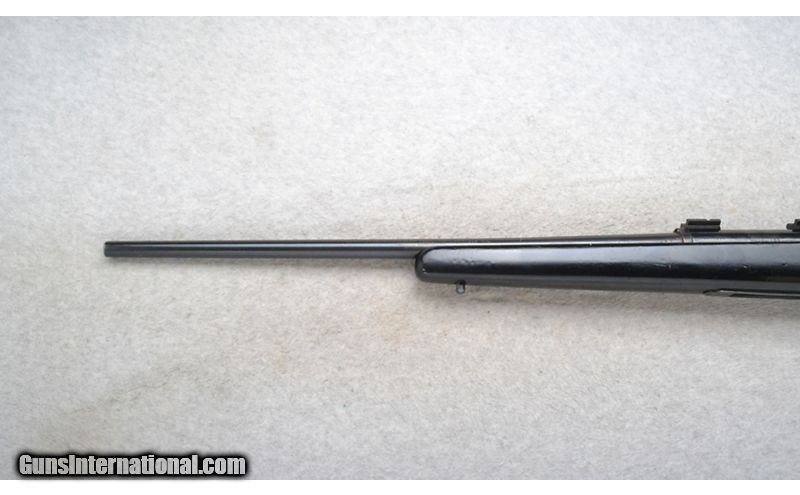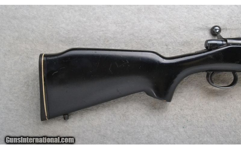 Description: This Remington Model 788 is a left hand bolt action rifle in .308 Win. Cal. It has a 22 inch barrel. Drilled and tapped for iron sights with none present. Scope mount bases are attached. The butt stock is a smooth grip hardwood pistol grip over painted with black. The forearm is a smooth grip hardwood over painted with black. .308 Winchester SOLD Chambers: Detachable magazine. Metal Condition: Good. A little very minor freckling. Wood Condition: Good. Has some handling/use marks. Bore Condition: Excellent. Barrels: 22 inch. Stock Dimensions: LOP 12 1/4 inches. Fore End: Smooth grip hardwood over painted with black. Butt Pad: Pachmayr White Line pad. Weight: 6 lb. 8 oz. Sights: Scope mount bases attached. No sights present. Item Location: Richfield, WI |