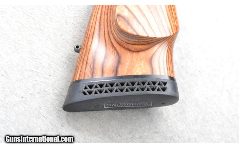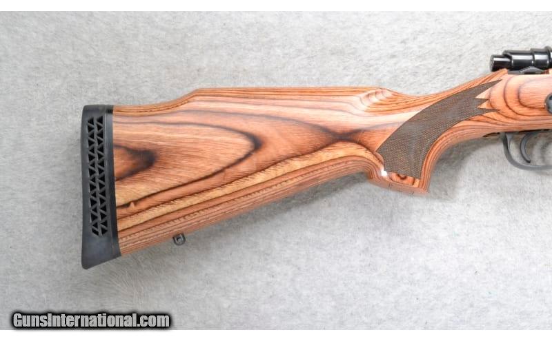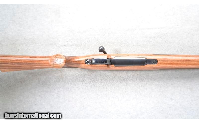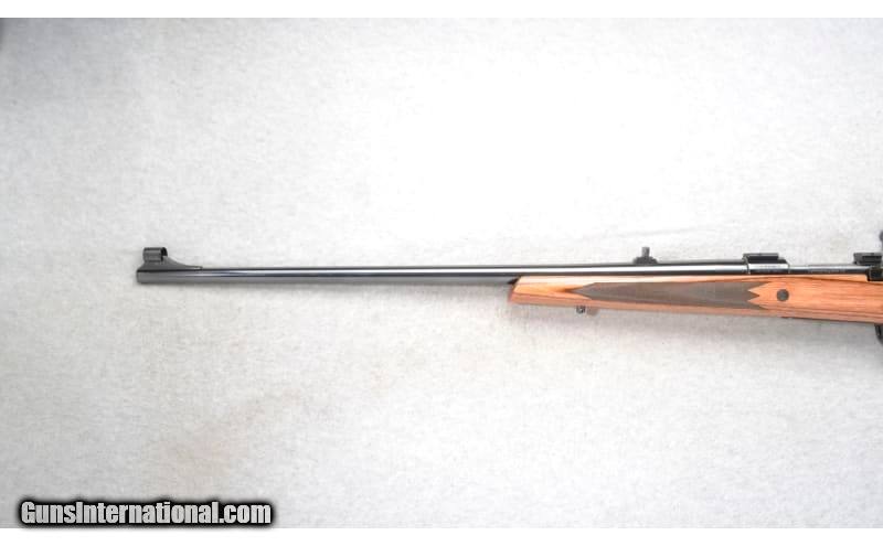 Description: This Remington Model 798 is a right hand bolt action rifle in .375 H&H Magnum Cal. It has a 26 inch barrel. A hooded front blade sight and a folding adjustable notch middle sight. Scope mount bases are attached. The butt stock is a checkered grip hardwood laminate pistol grip with a raised cheekpiece. The forearm is a checkered grip hardwood laminate. .375 H&H Magnum SOLD Chambers: Internal magazine with a hinged floorplate. Metal Condition: Excellent. Wood Condition: Excellent. A few minor handling marks. Bore Condition: Excellent. Barrels: 26 inch. Stock Dimensions: LOP 13 1/2 inches. Fore End: Checkered grip hardwood laminate. Butt Pad: Remington black rubber recoil pad. Weight: 9 lb. 2 oz. Sights: Hooded front blade. Folding adjustable notch middle. Scope mount bases attached. Item Location: Richfield, WI |
