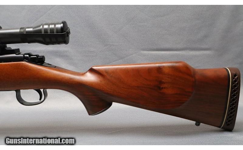 Description: A Remington Arms Co. model 721 in good overall shape. The finish is in good shape overall, with some wear on the operating surfaces, some blemishes on the outside of the barrel and a touch of light spot rust about halfway down the top of the barrel. The stock is in good condition overall, with a fair number of handling marks, such as small scratches and dents. There is also two small cracks on the top of the stock, just behind the rear end of the receiver. The bore is in very nice shape overall, a bit dull from use and age, but no major wear or signs of corrosion. .300 H&H Magnum Chambers: 300 H&H Magnum Metal Condition: Good Wood Condition: Good Bore Condition: Very good Barrels: 26 Triggers: Single stage with an approx. three pound pull weight Stock Dimensions: 14" Length of pull Fore End: Smooth wood Butt Pad: Pachmayr branded rubber pad Weight: 9 LBS Sights: A Kollmorgen Optical Corp. "Bear Cub" fixed six power scope Item Location: Saginaw, MI Price: $689.99 Contact Seller |